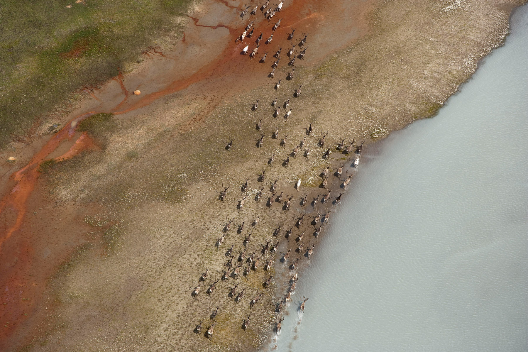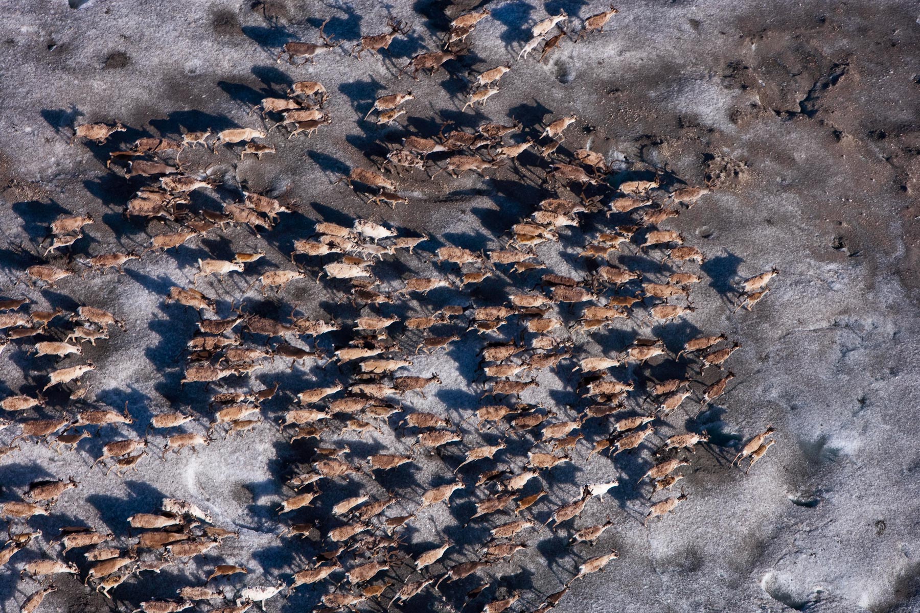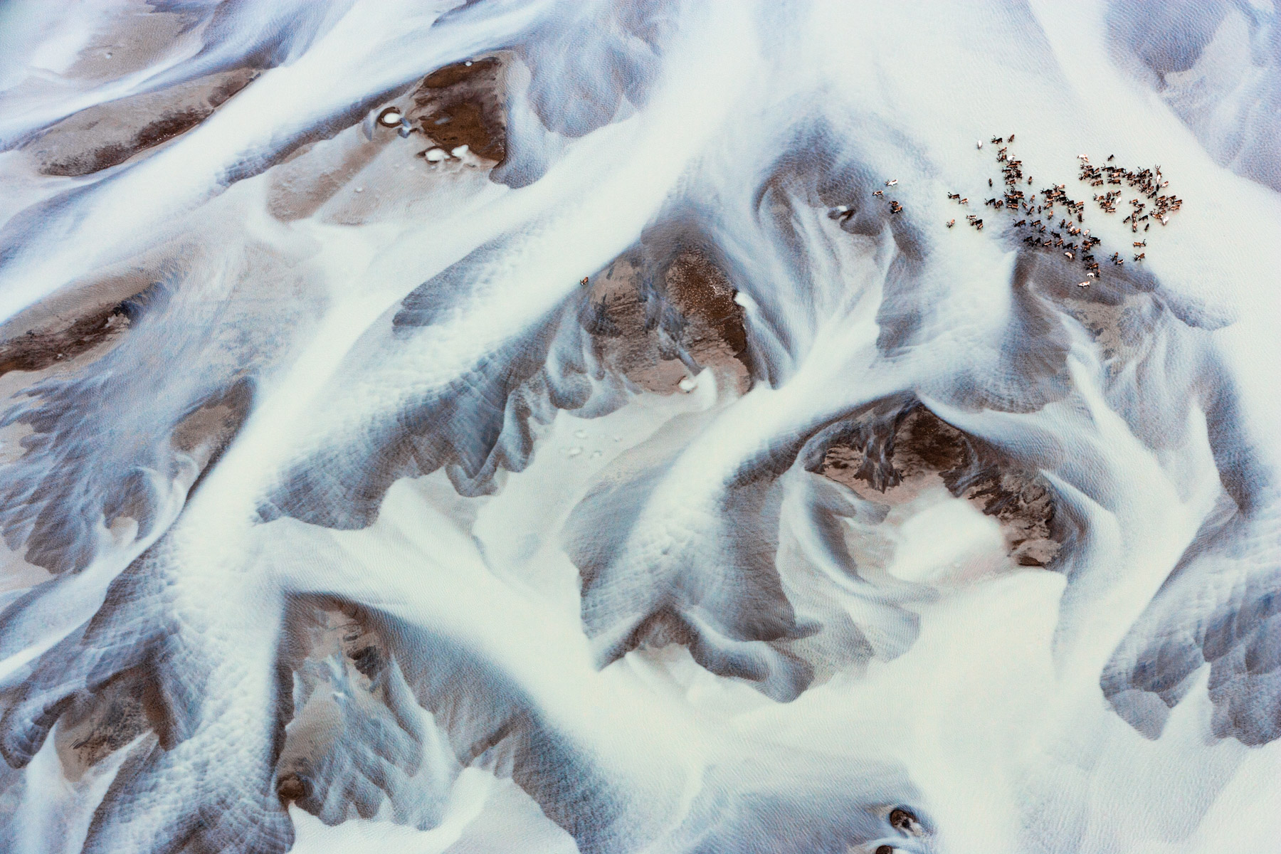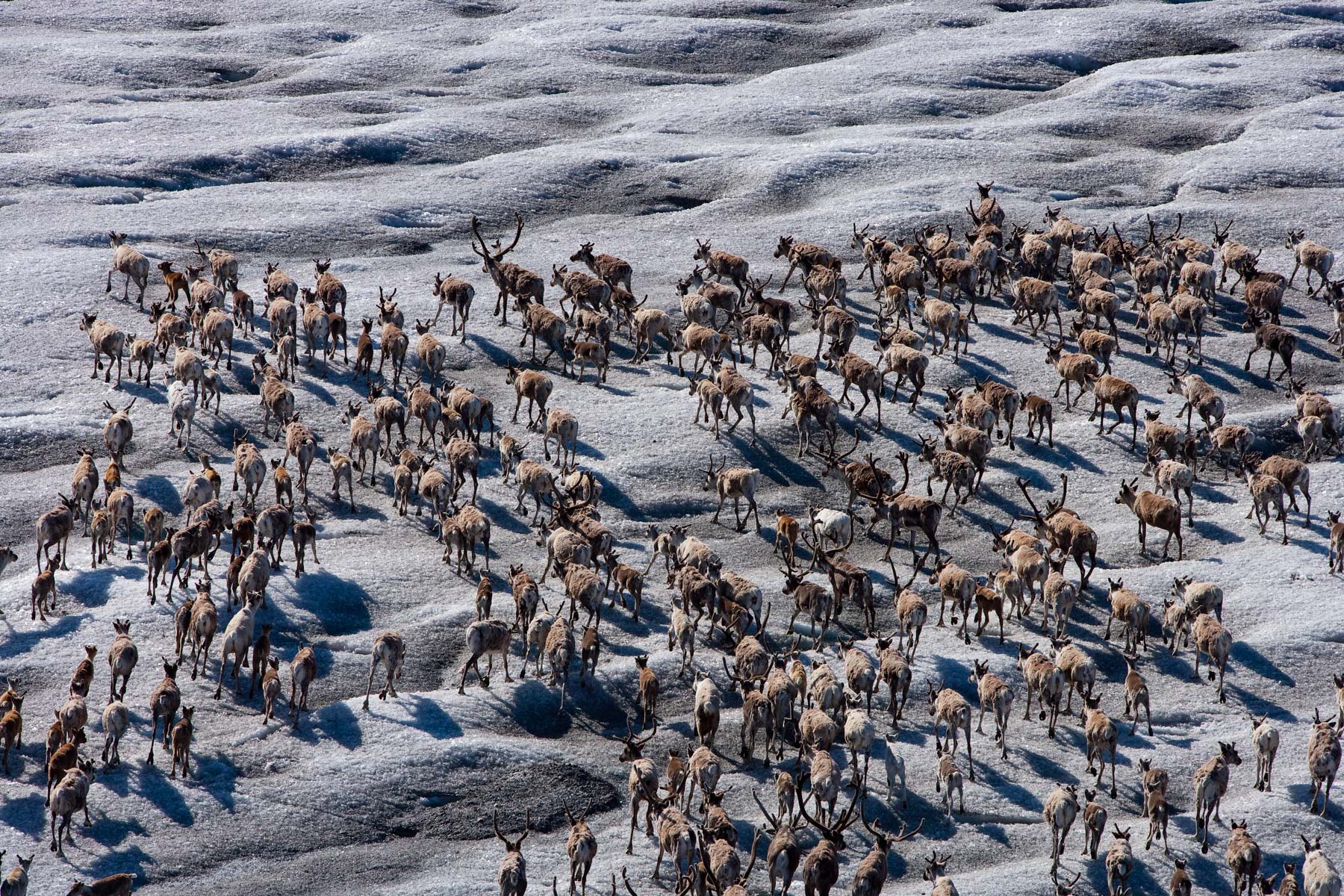 Troupeau de rennes aux marges de l’inlandsis au sud-est d’Ivittuut, Kitaa, Groenland, Danemark (61°05' N - 46°10' O).