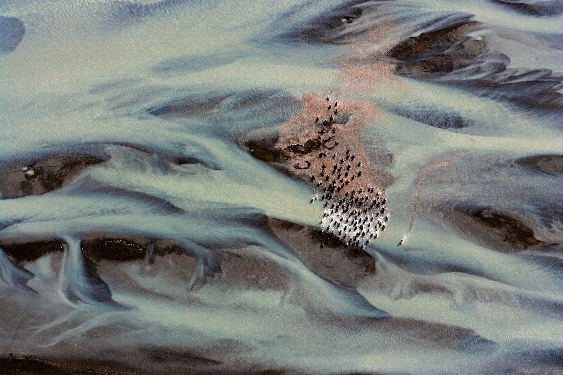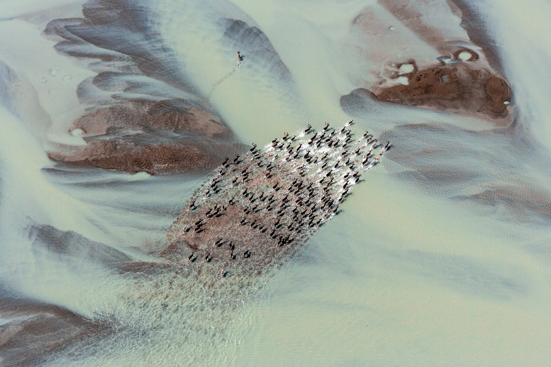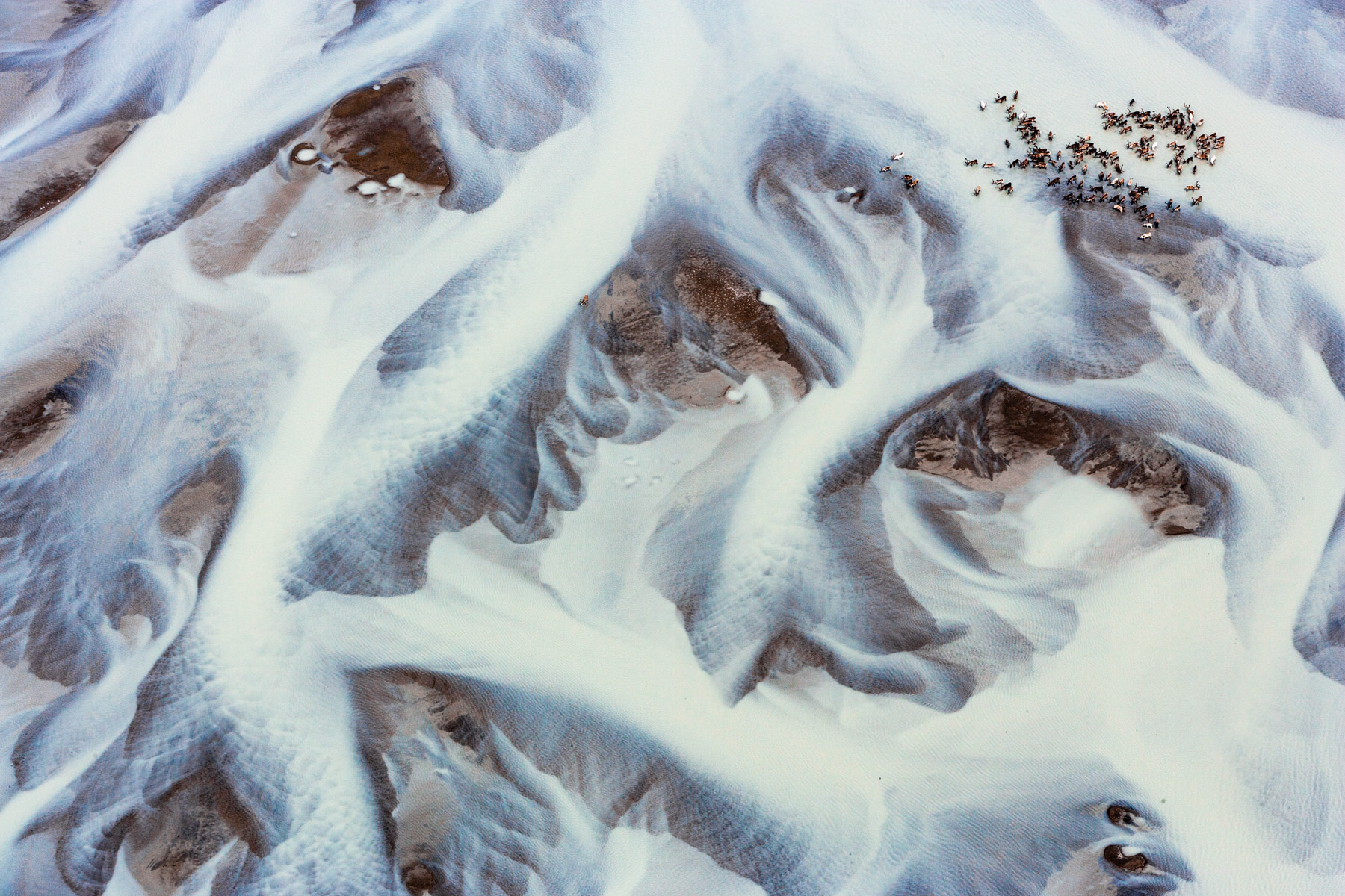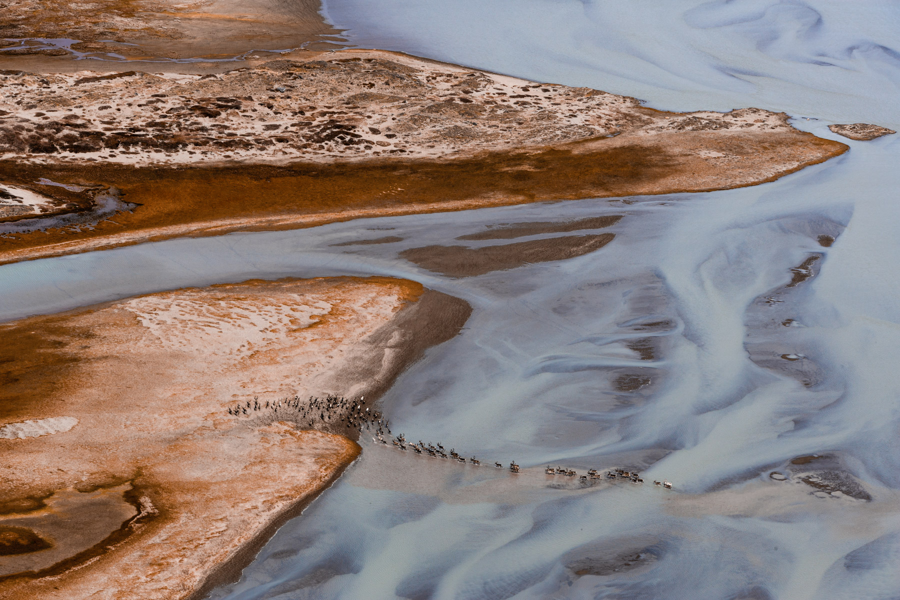 Troupeau de rennes aux marges de l’inlandsis au sud-est d’Ivittuut, Kitaa, Groenland, Danemark (61°05' N - 46°10' O).