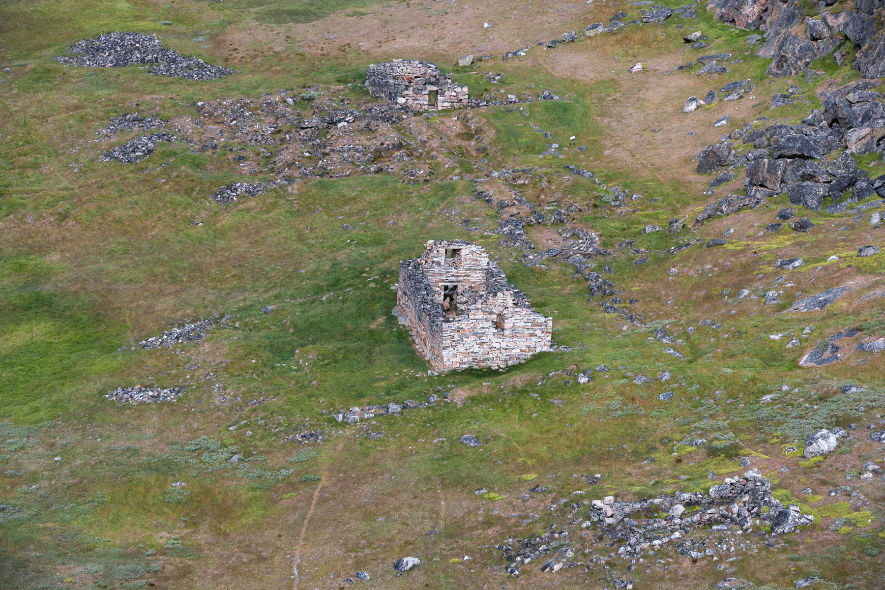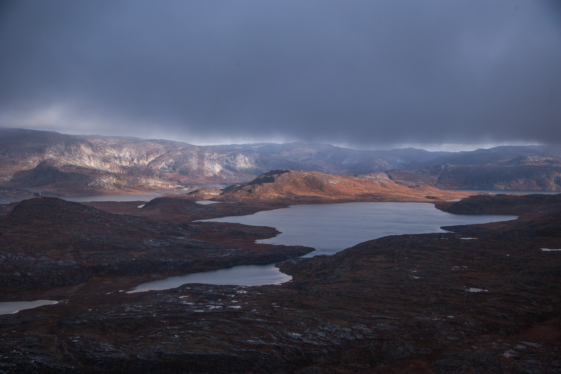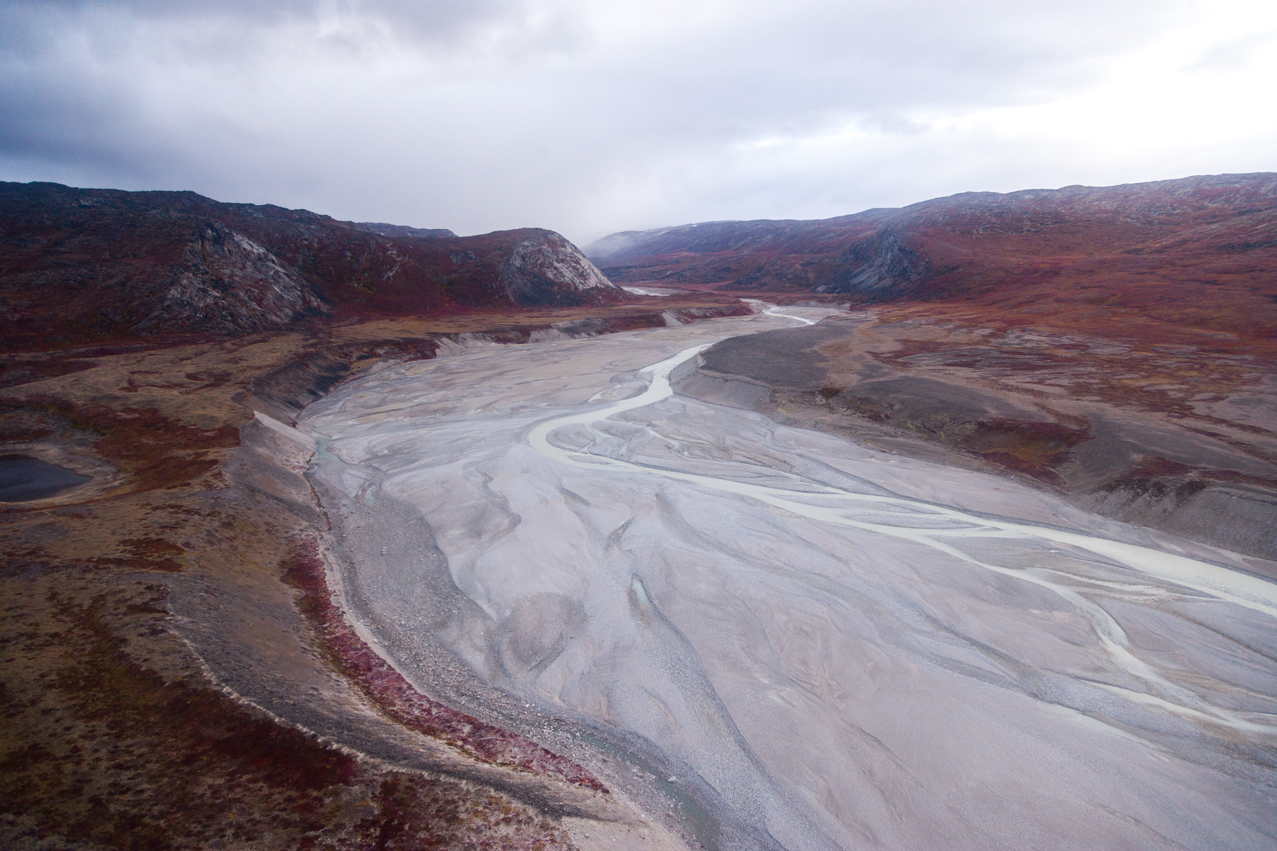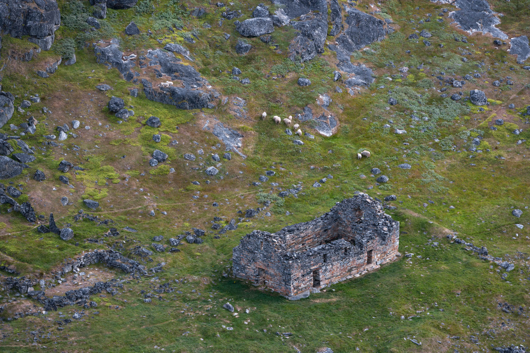 Troupeau de rennes aux marges de l’inlandsis au sud-est d’Ivittuut, Kitaa, Groenland, Danemark (61°05' N - 46°10' O).