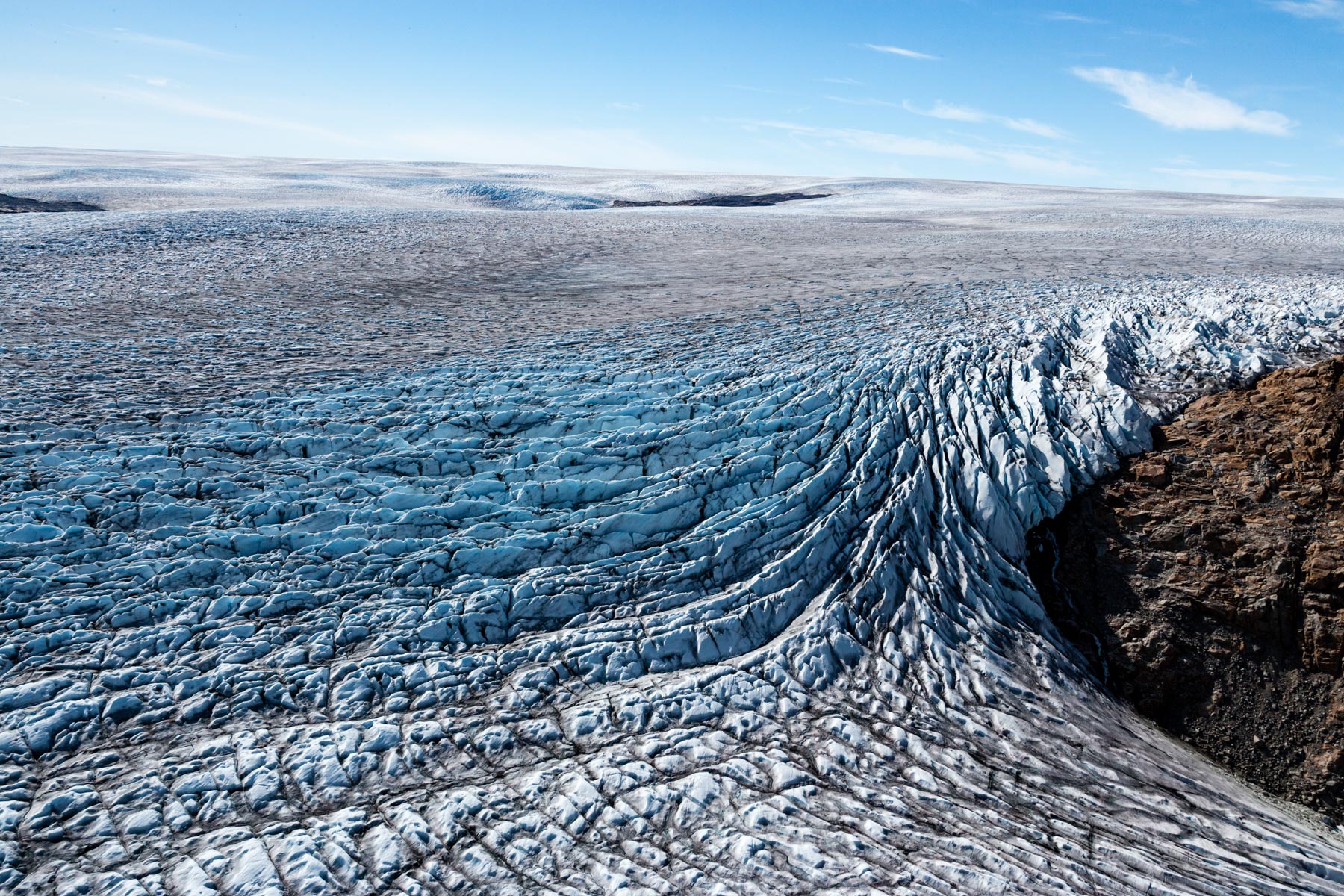Bédière sur l’inlandsis groenlandais, près de Nordlit Sermiat, Groenland (61°05’ N – 46°27’ O).