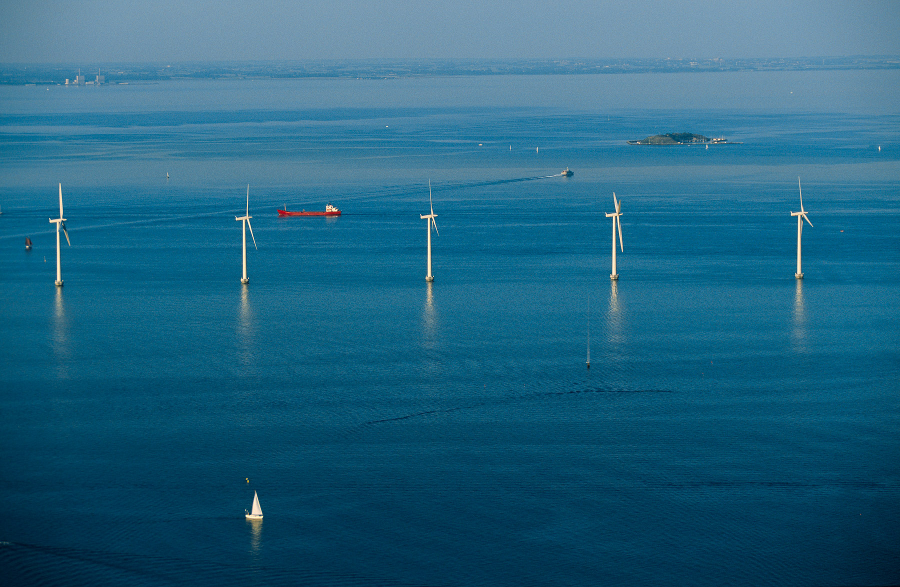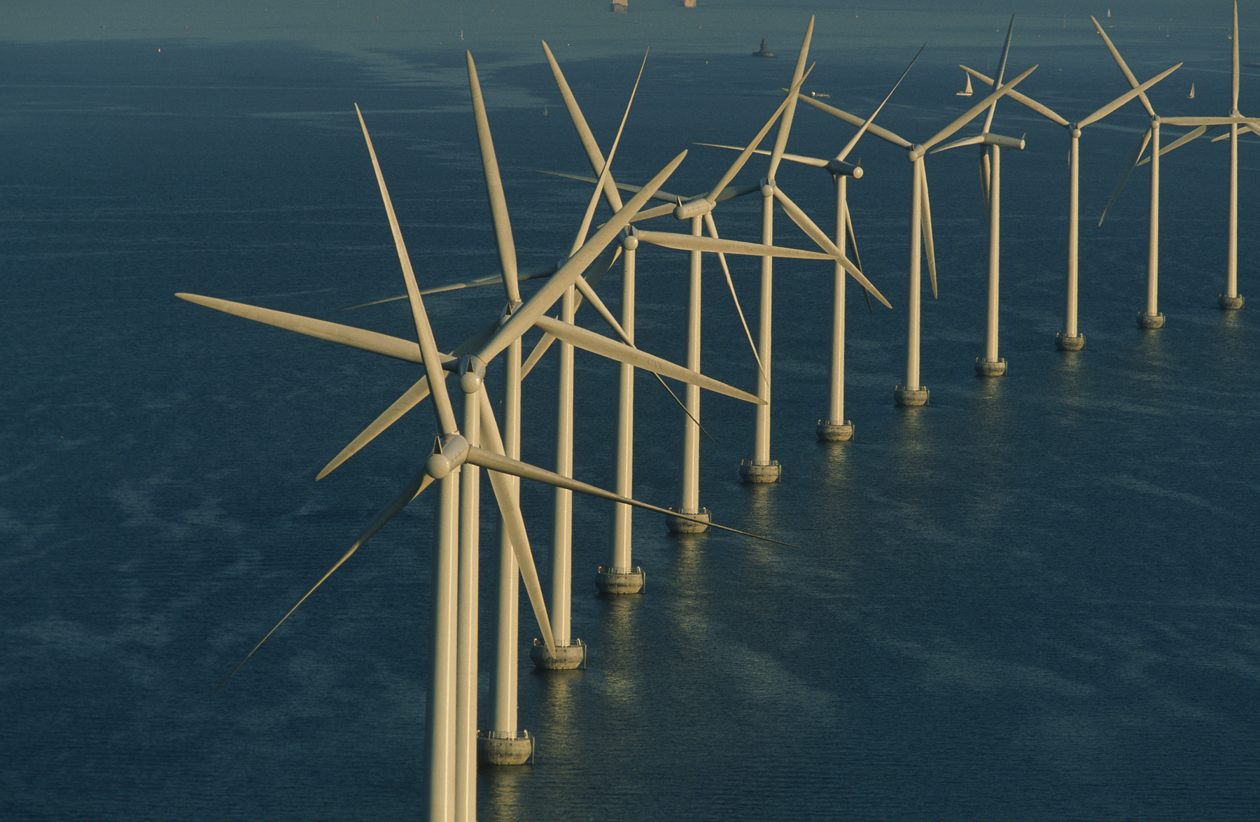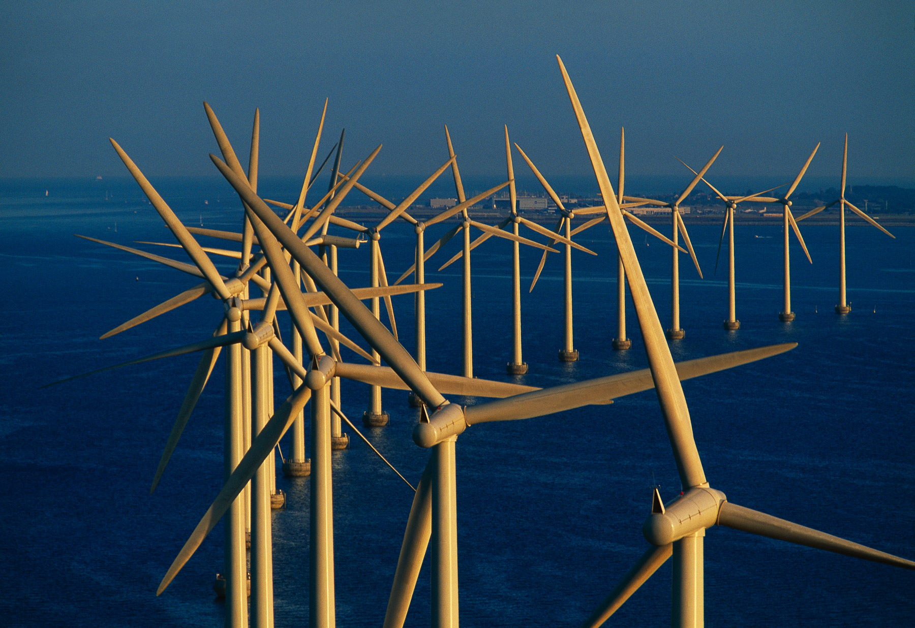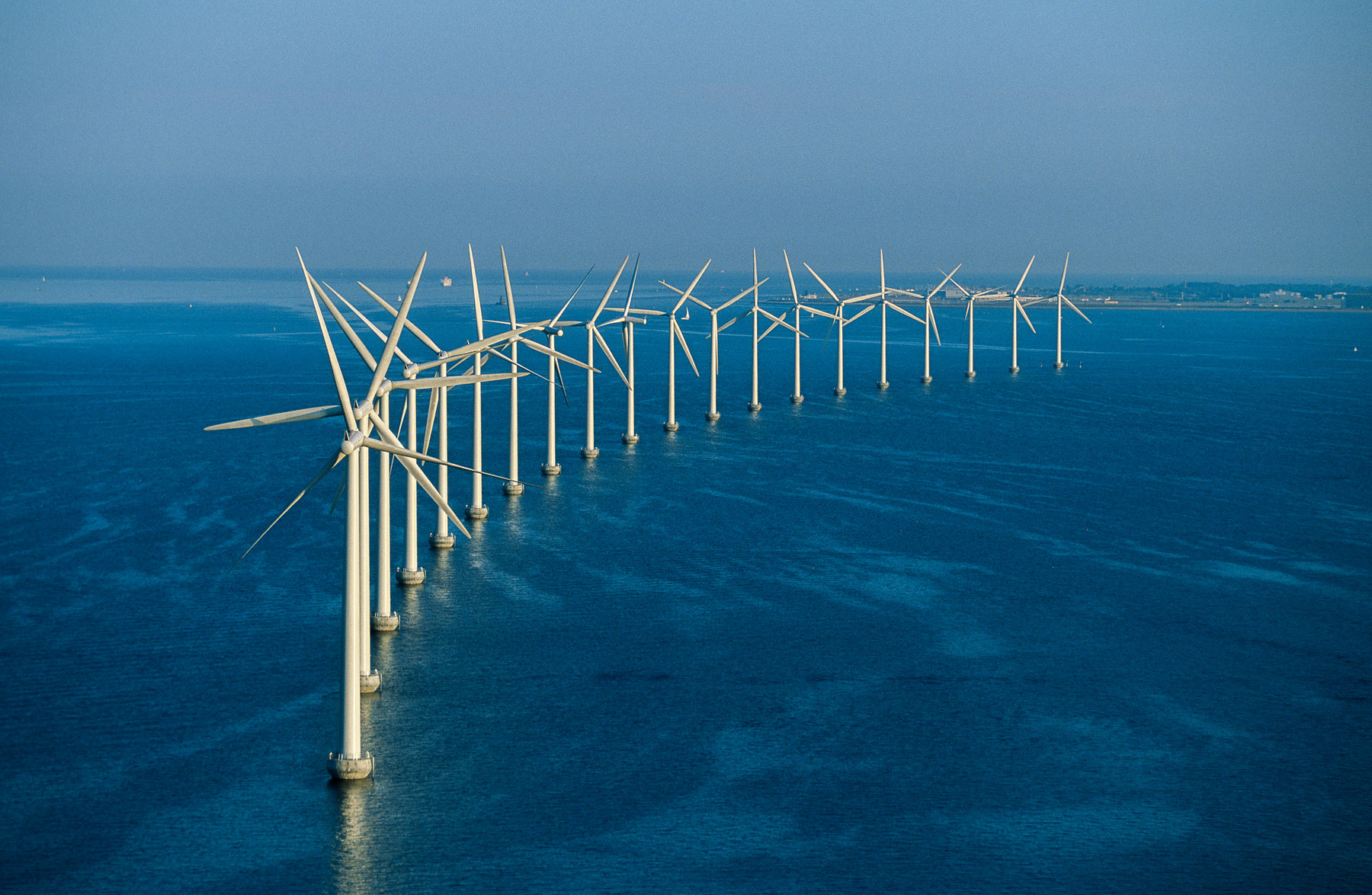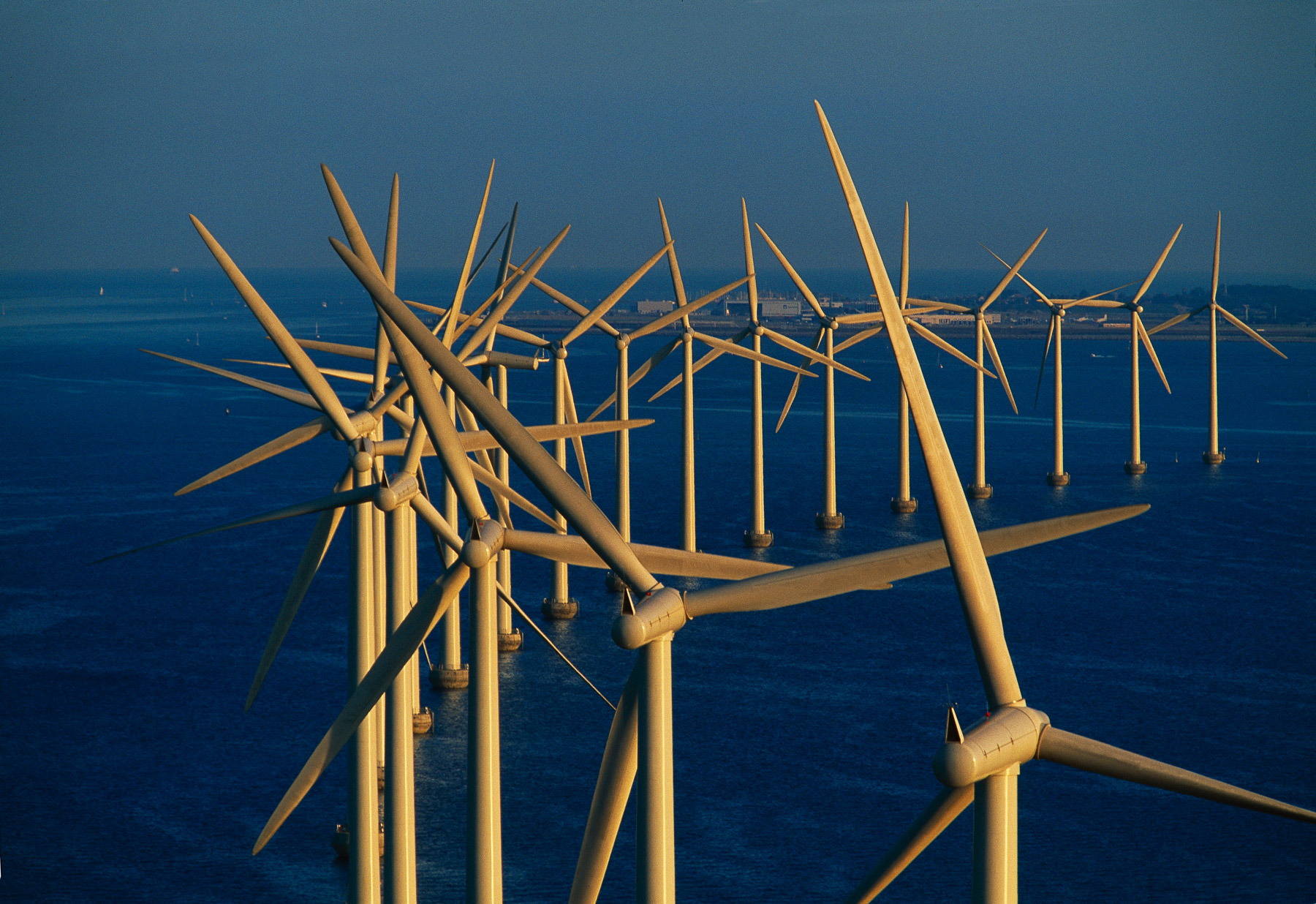 Middelgrunden offshore wind farm, off the coast of Copenhagen, Denmark (55°41' N - 12°40' E).