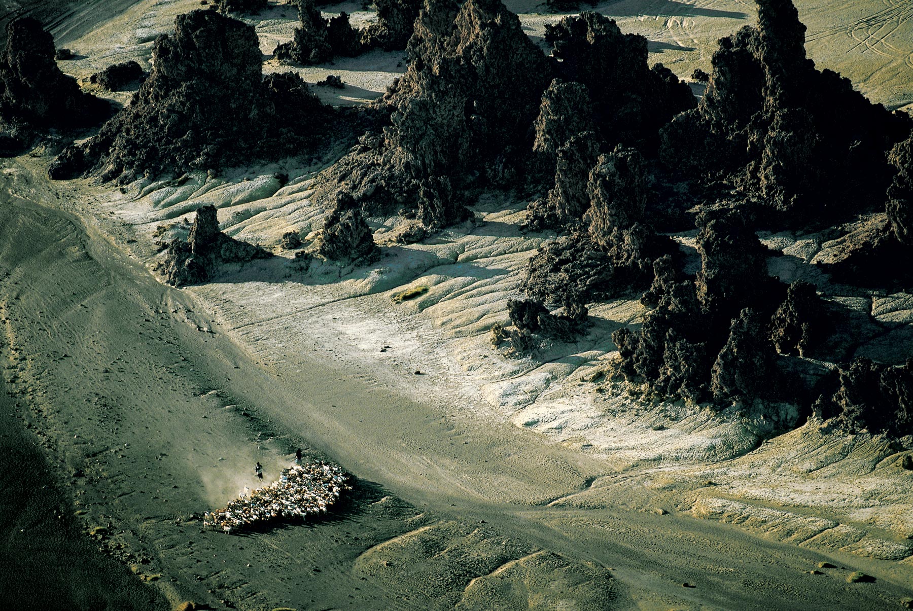 Herd of goats among the chimneys of Lake Abbé, Djibouti (11°06' N, 41°50' E).