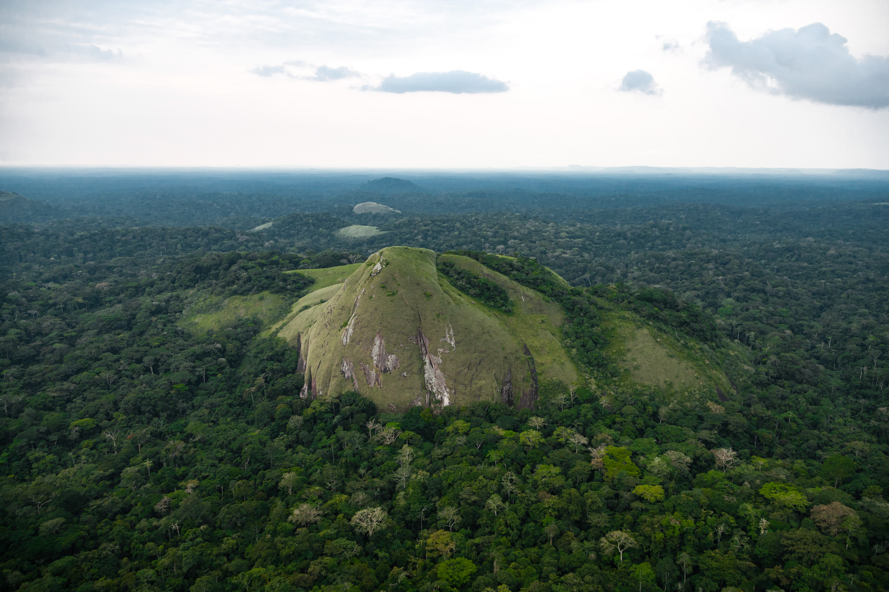 Inselberg (petite montagne isolée) dans le parc national de Minkébé, province de Woleu-Ntem, Gabon
