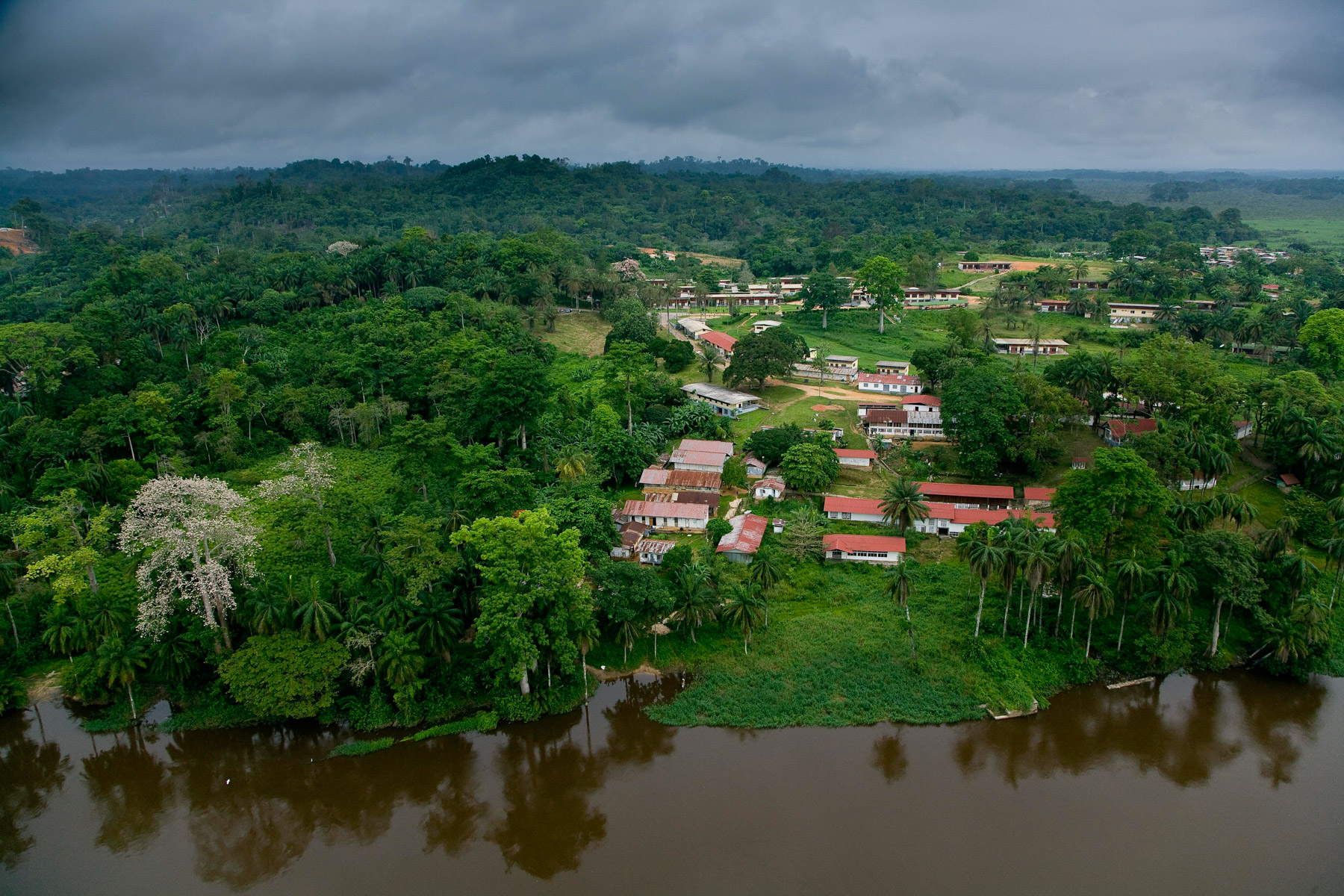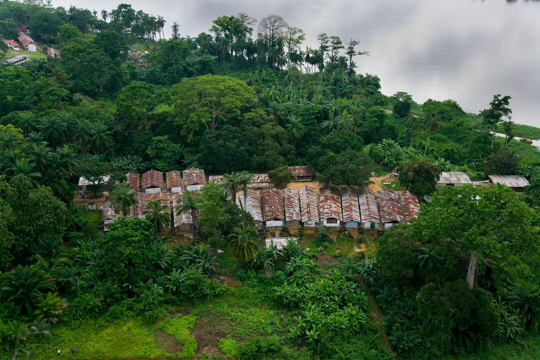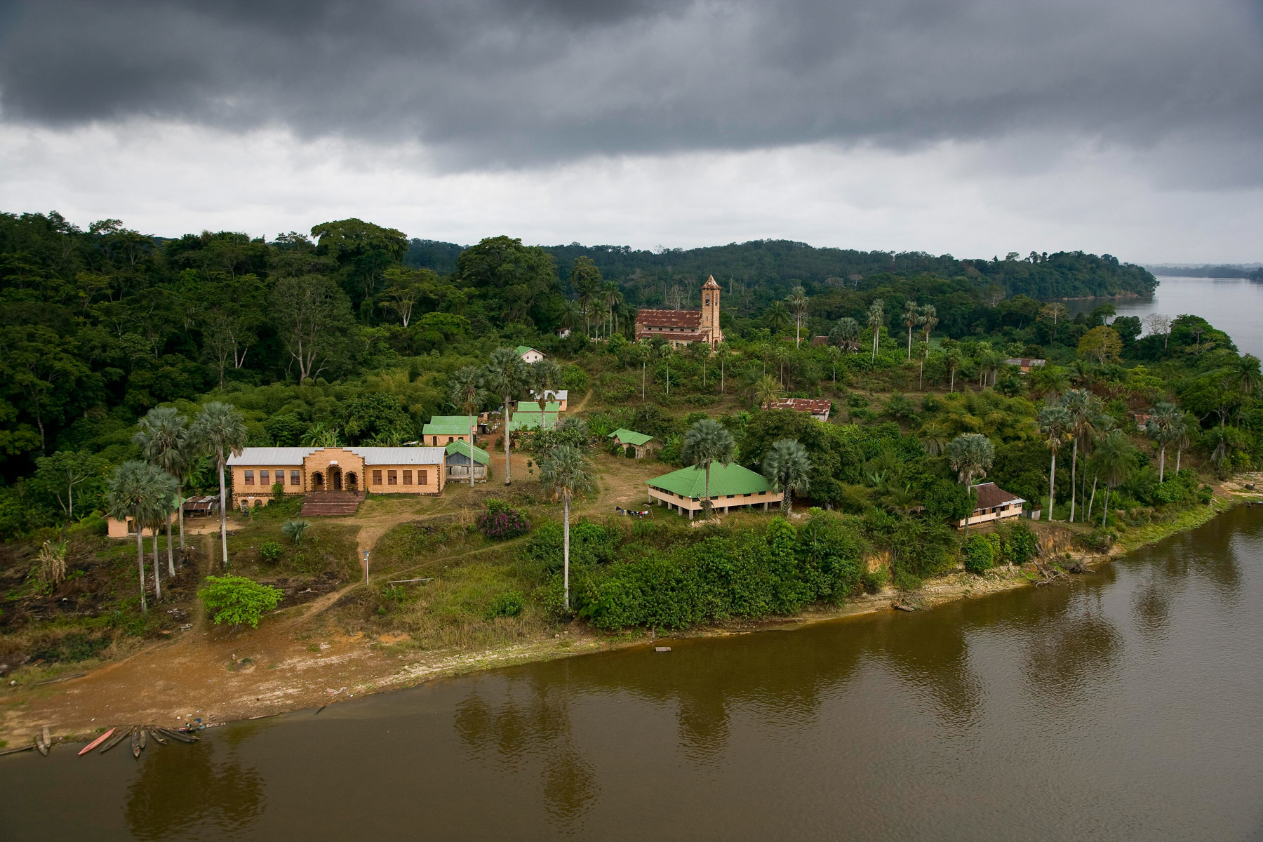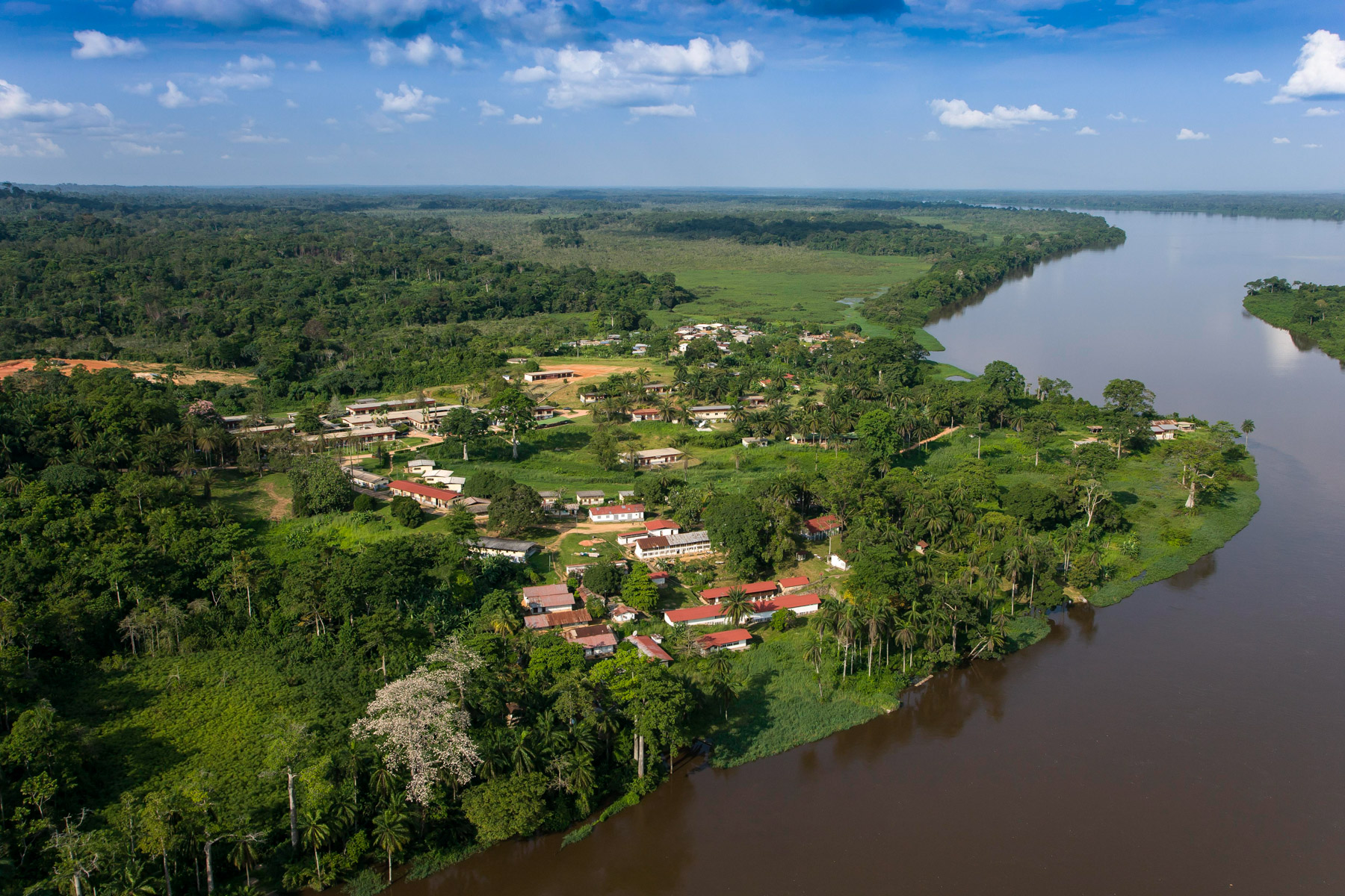 Village sur les rives du fleuve Ogooué entre Lambaréné et Port-Gentil, province de l' Ogooué-Maritime, Gabon