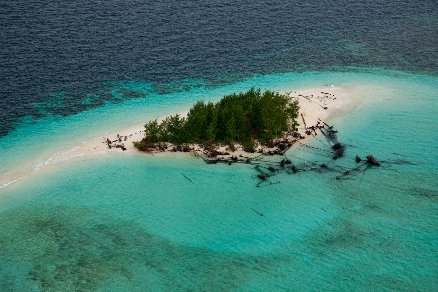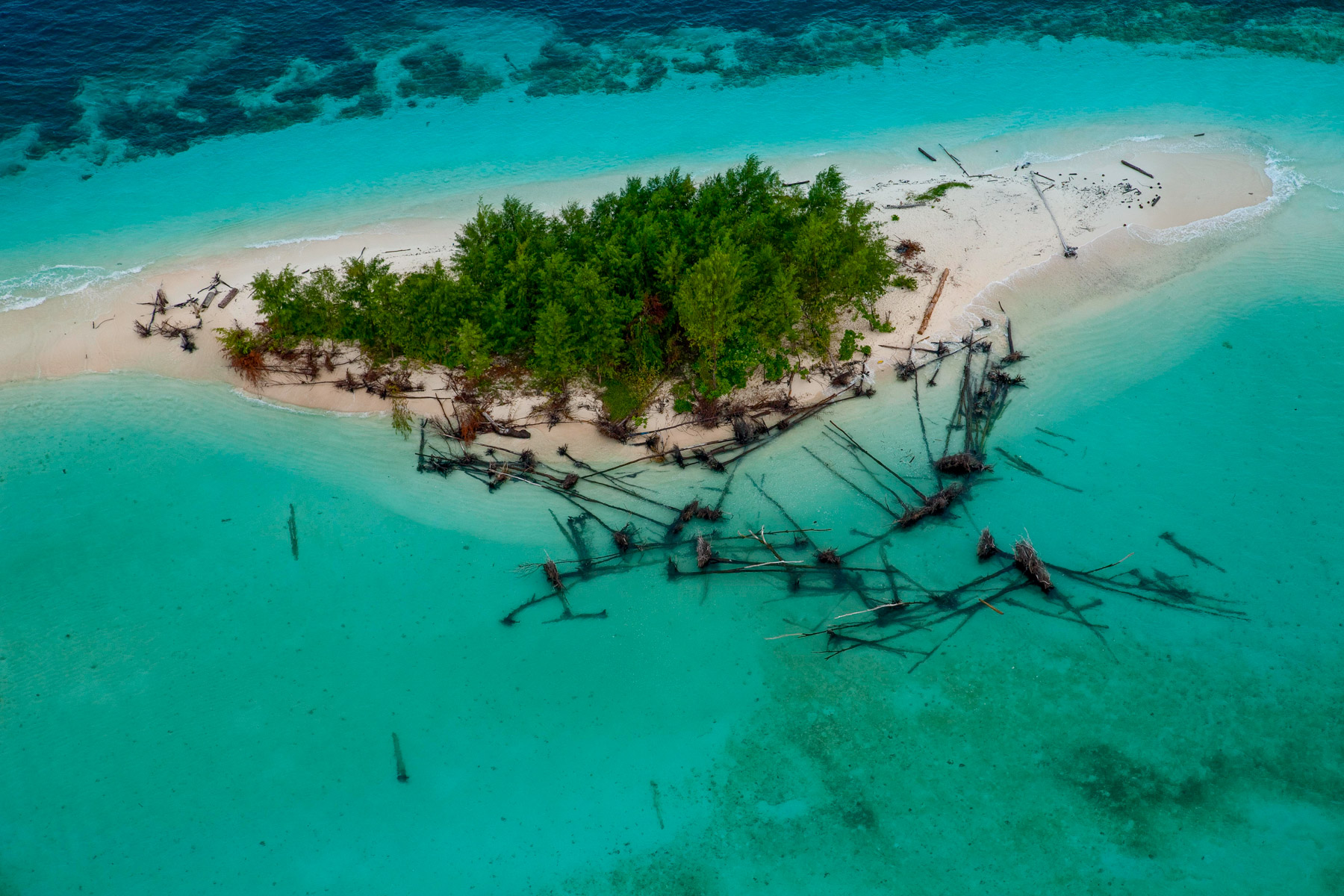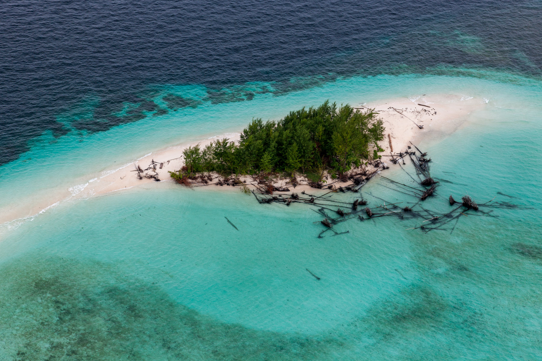 Arbres déracinés près de l'île Pulau Tapok (nord de l'île Pulau Batanta), Archipel des Raja-Ampat, Papouasie Occidentale, Indonésie