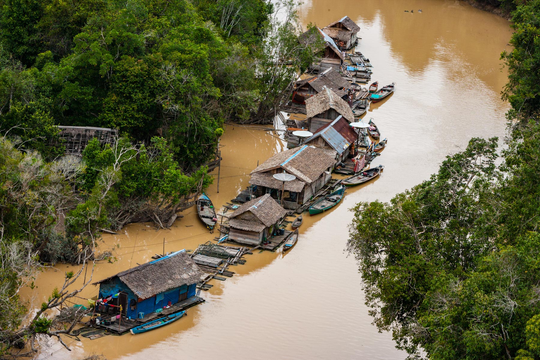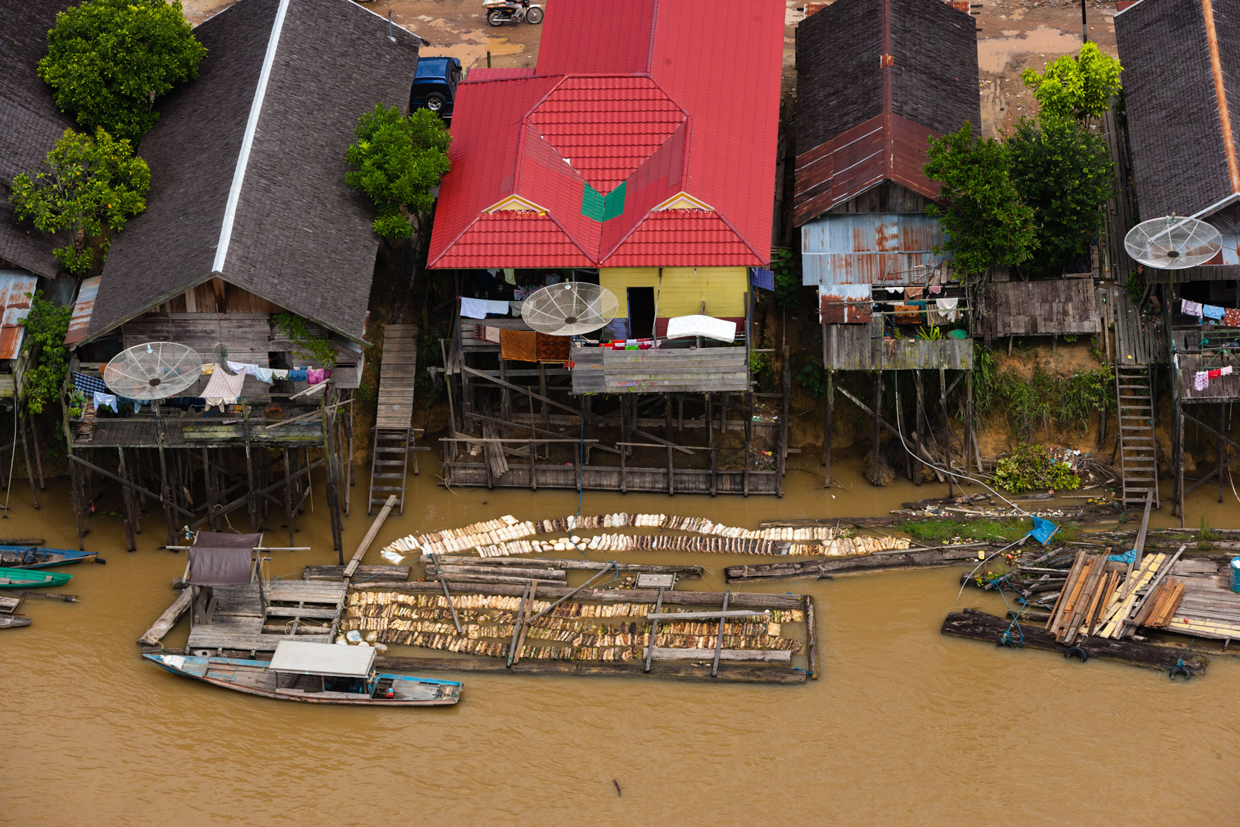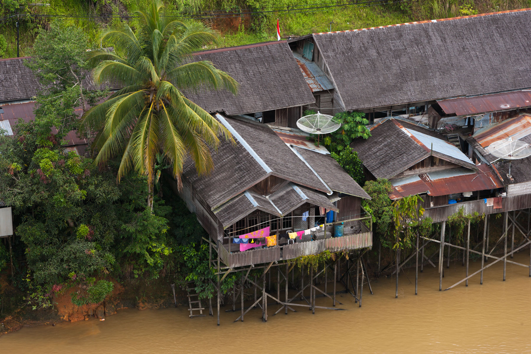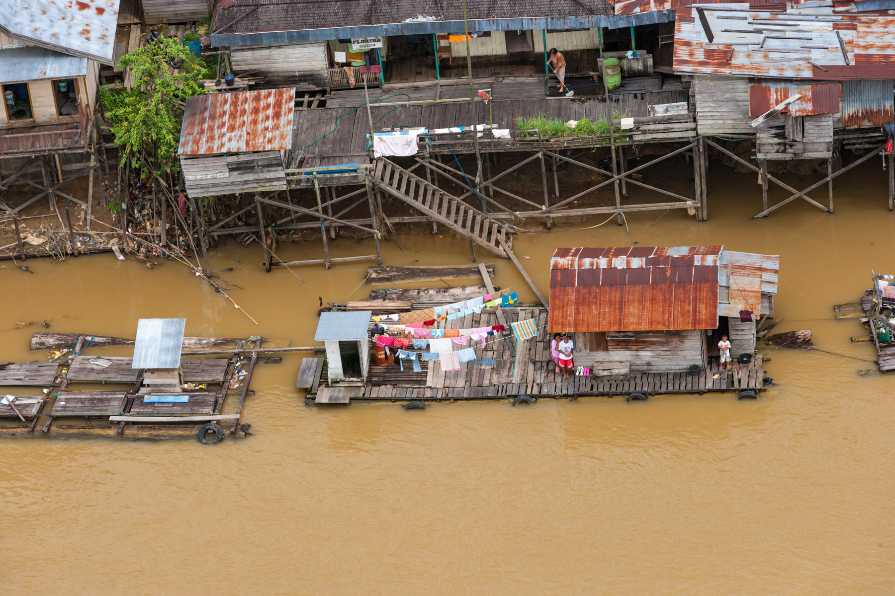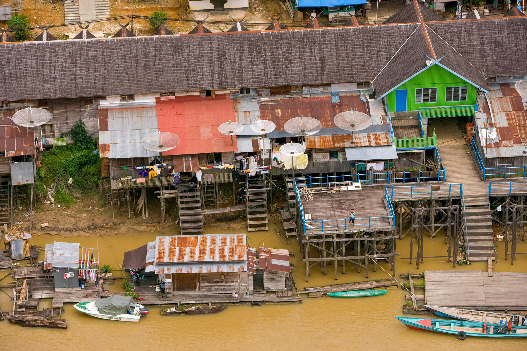 Maisons flottantes aux environs de Pundu, ouest de Palangkaraya, Kalimantan Centre, Bornéo