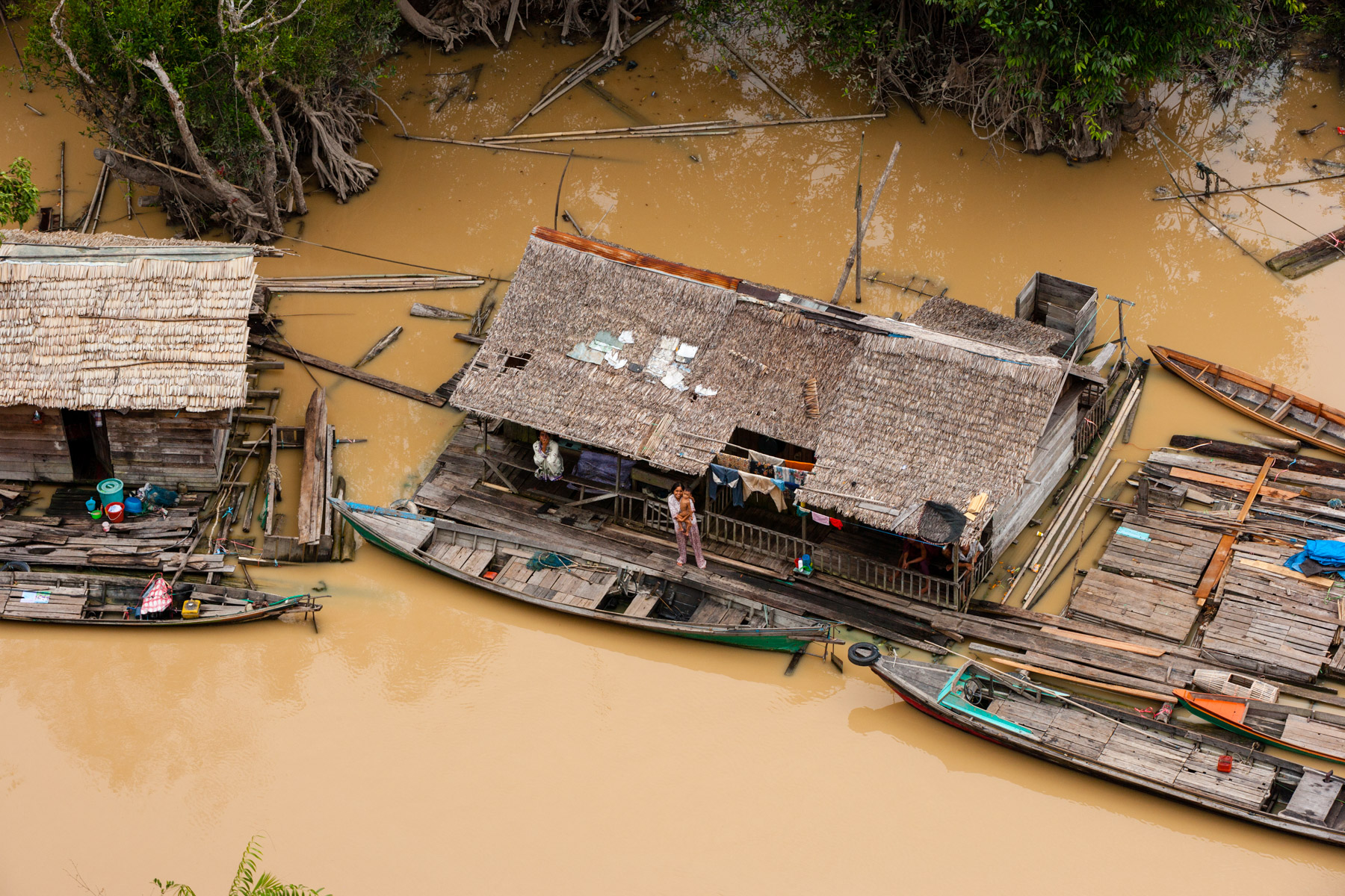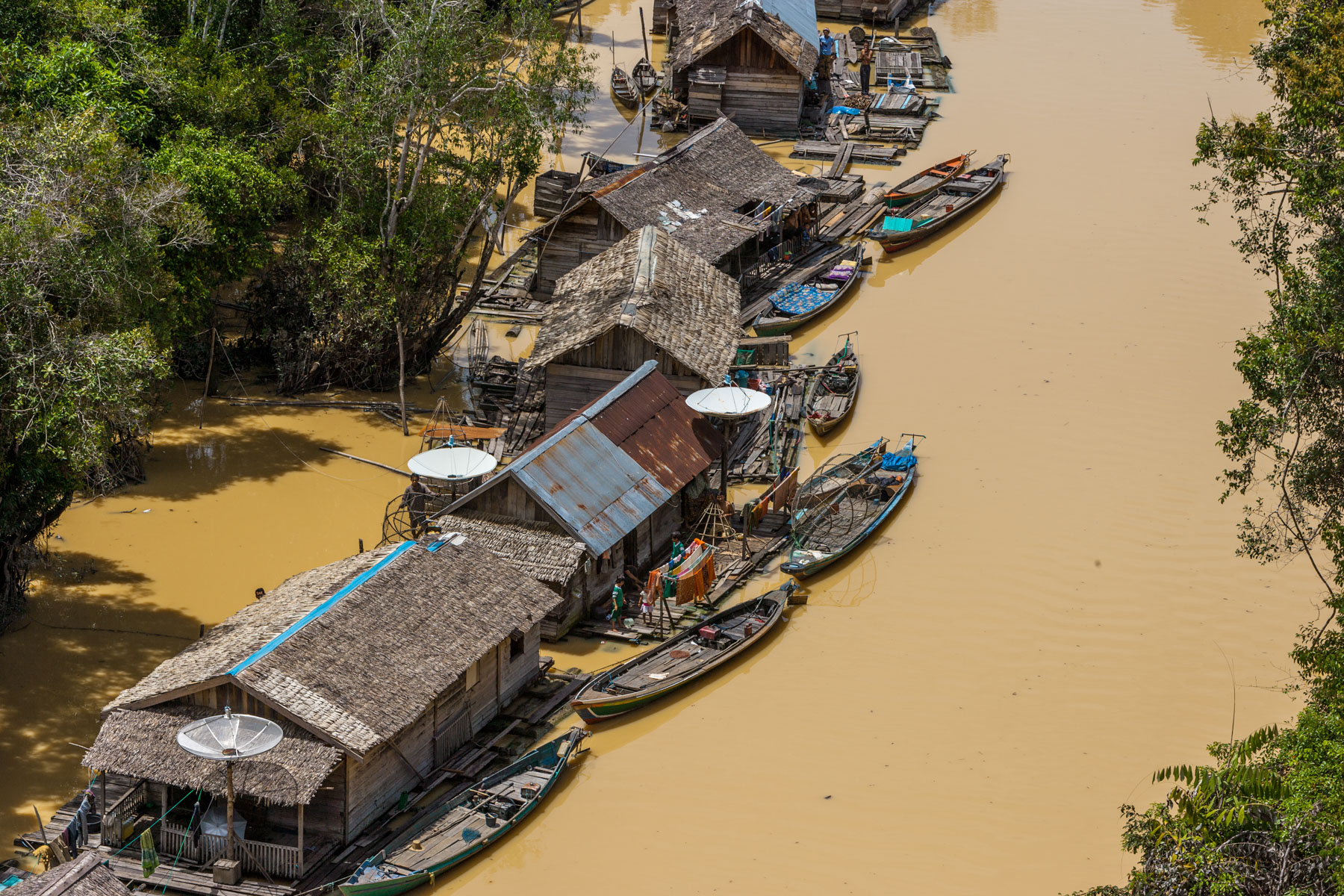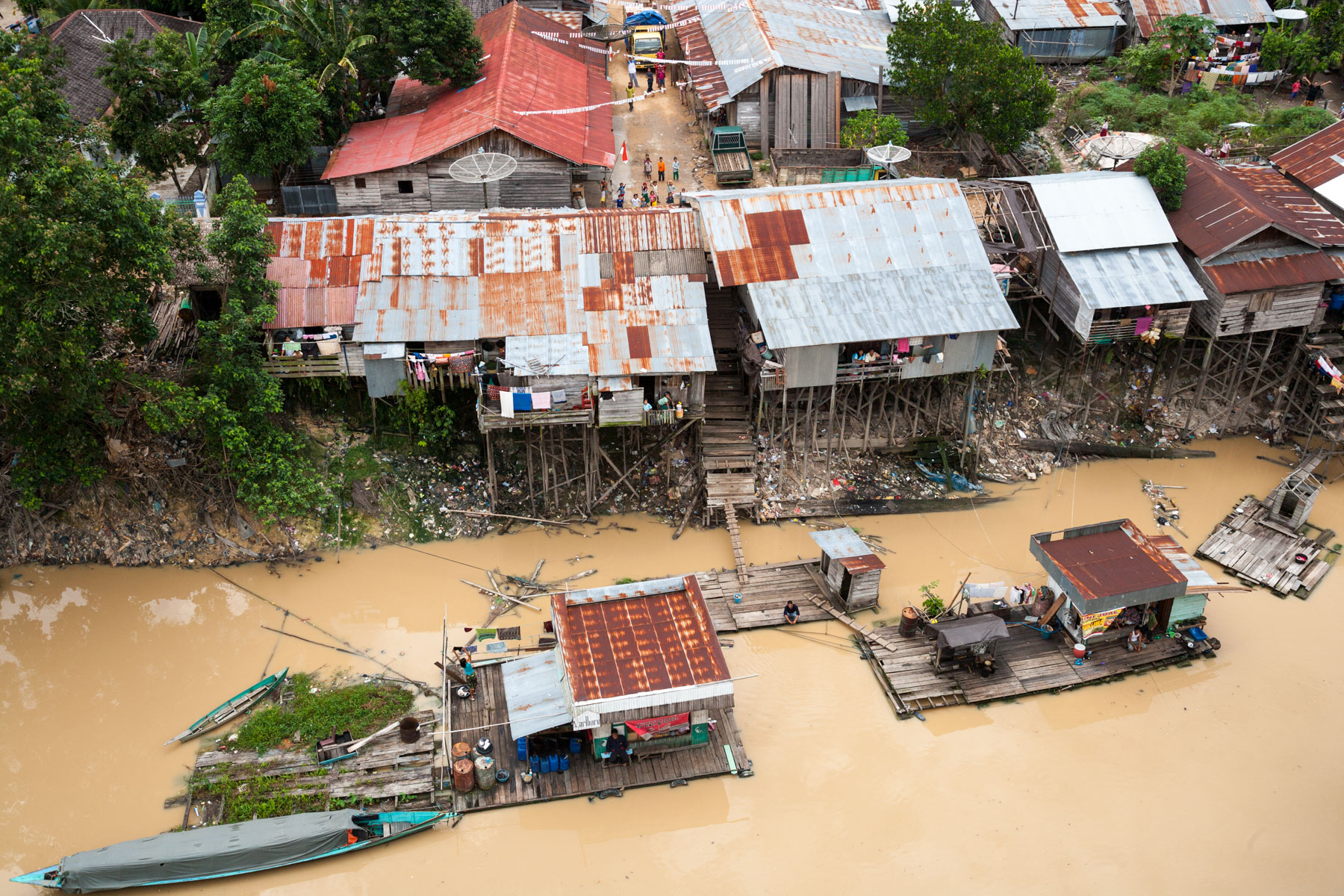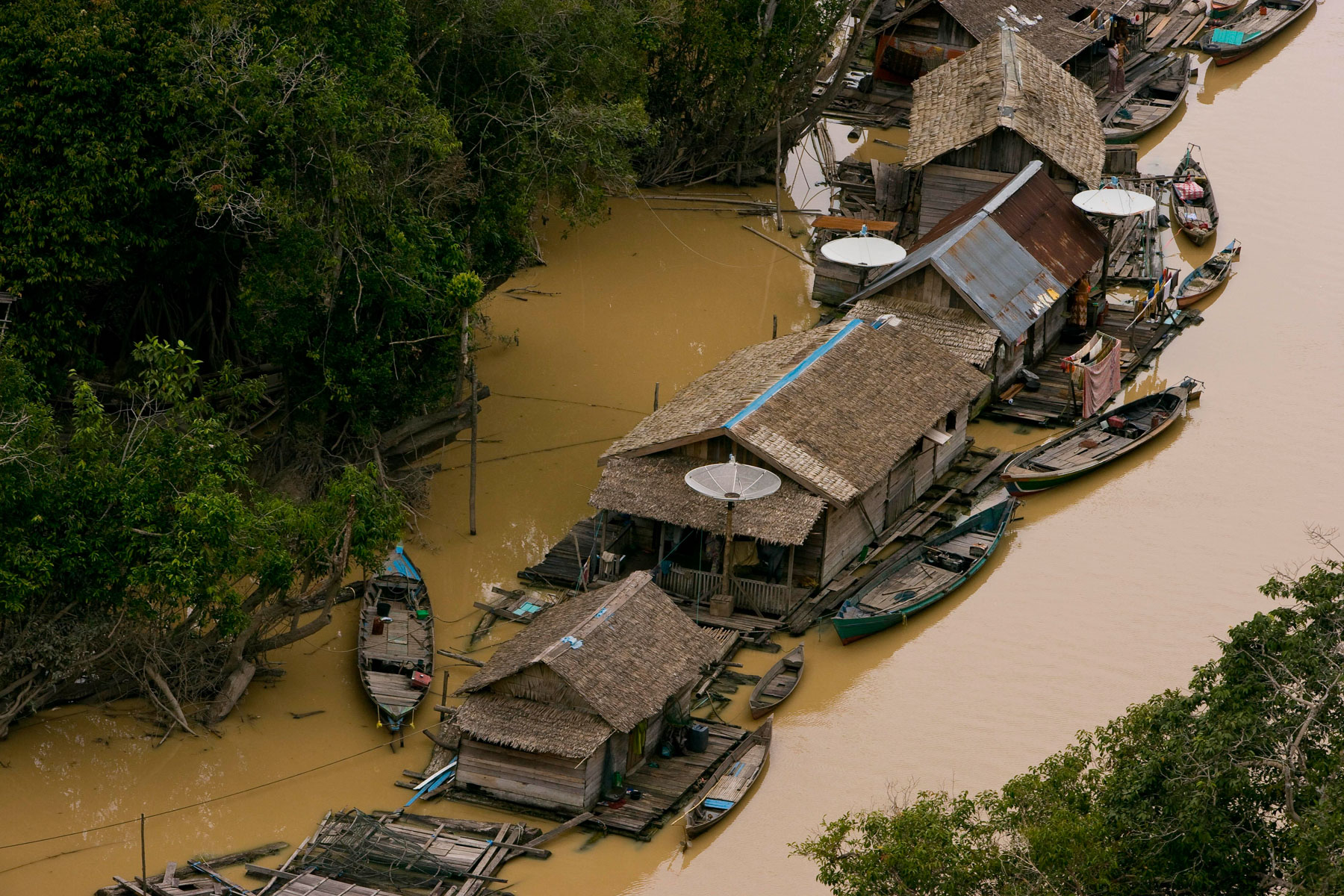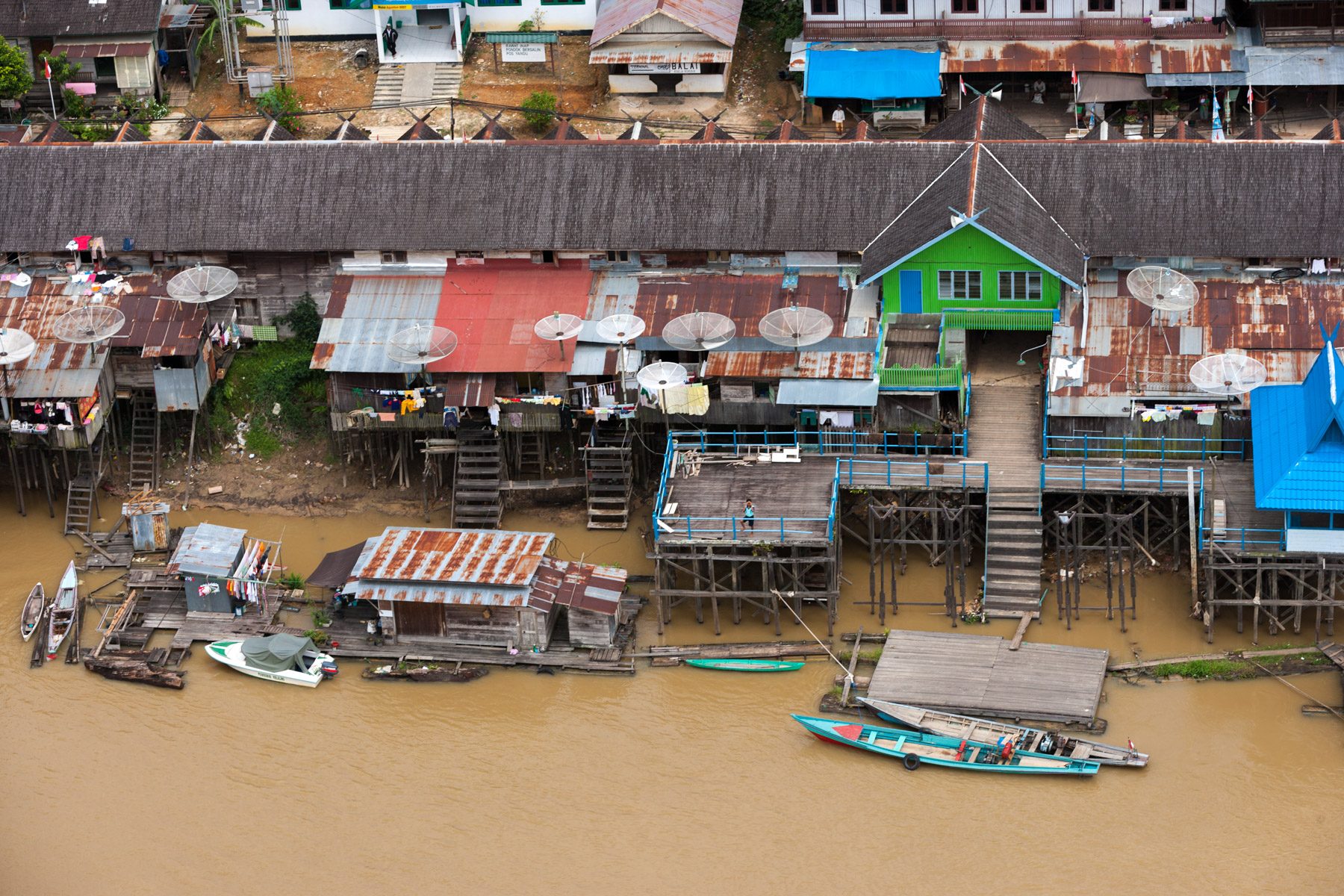 Maisons flottantes aux environs de Pundu, ouest de Palangkaraya, Kalimantan Centre, Bornéo