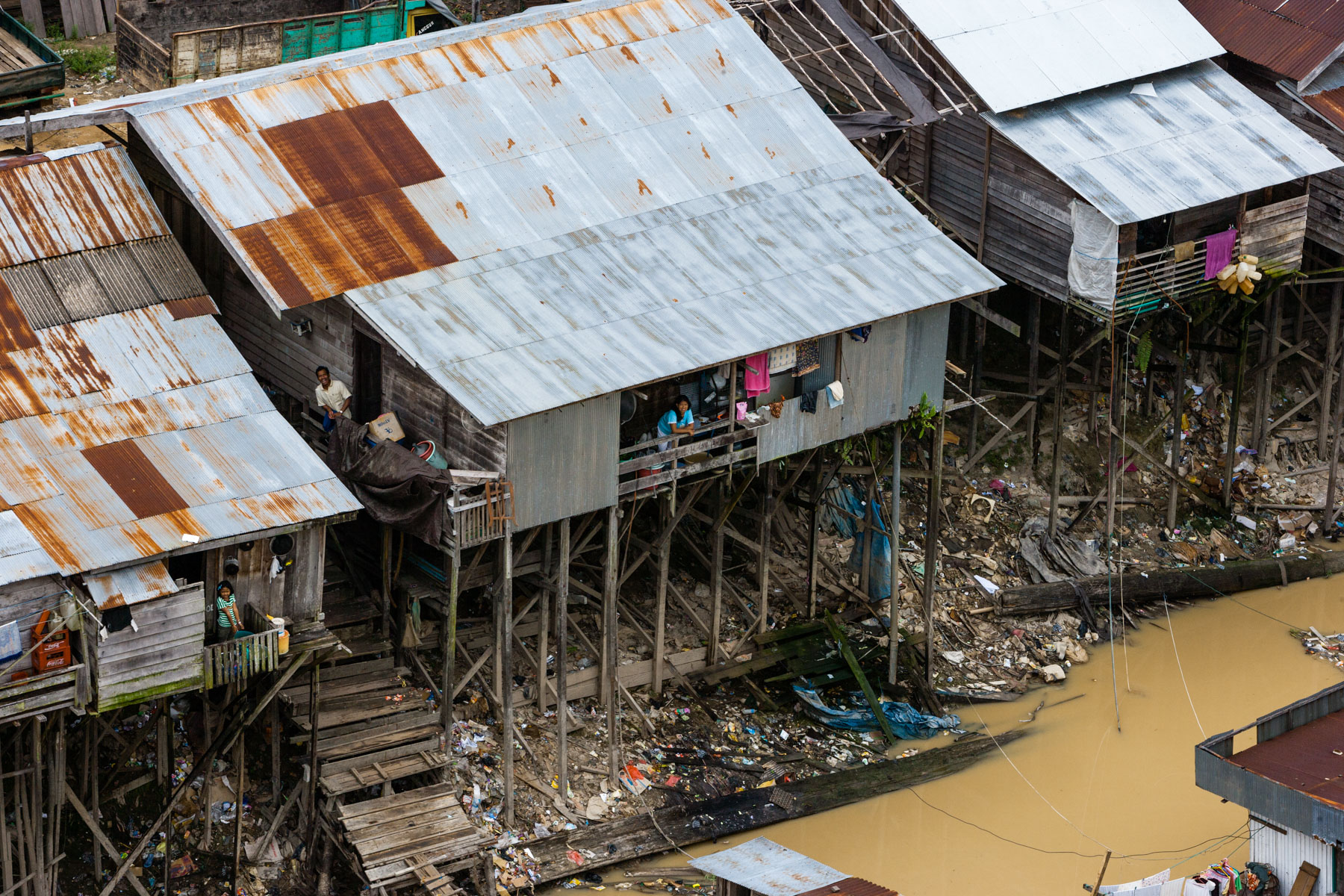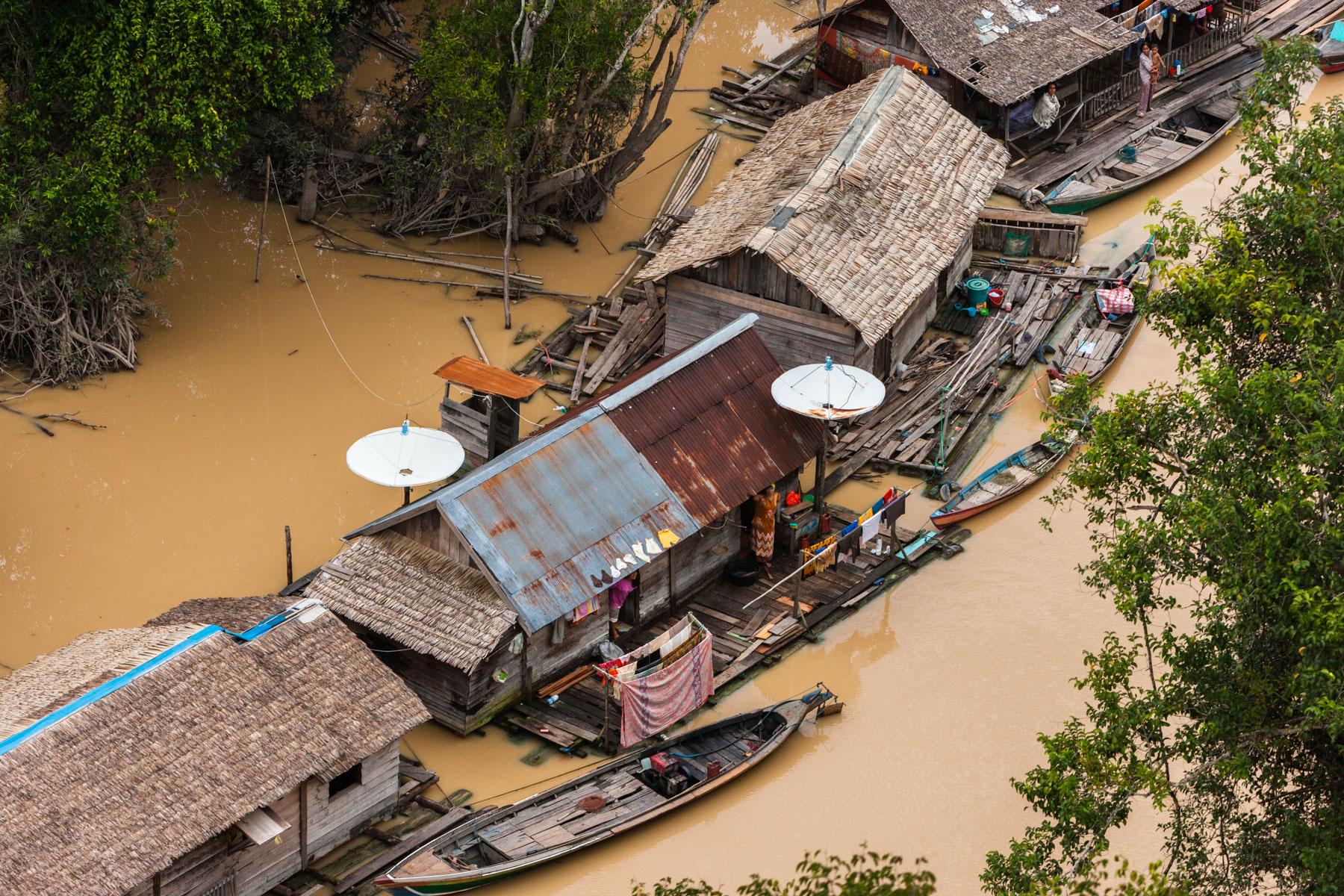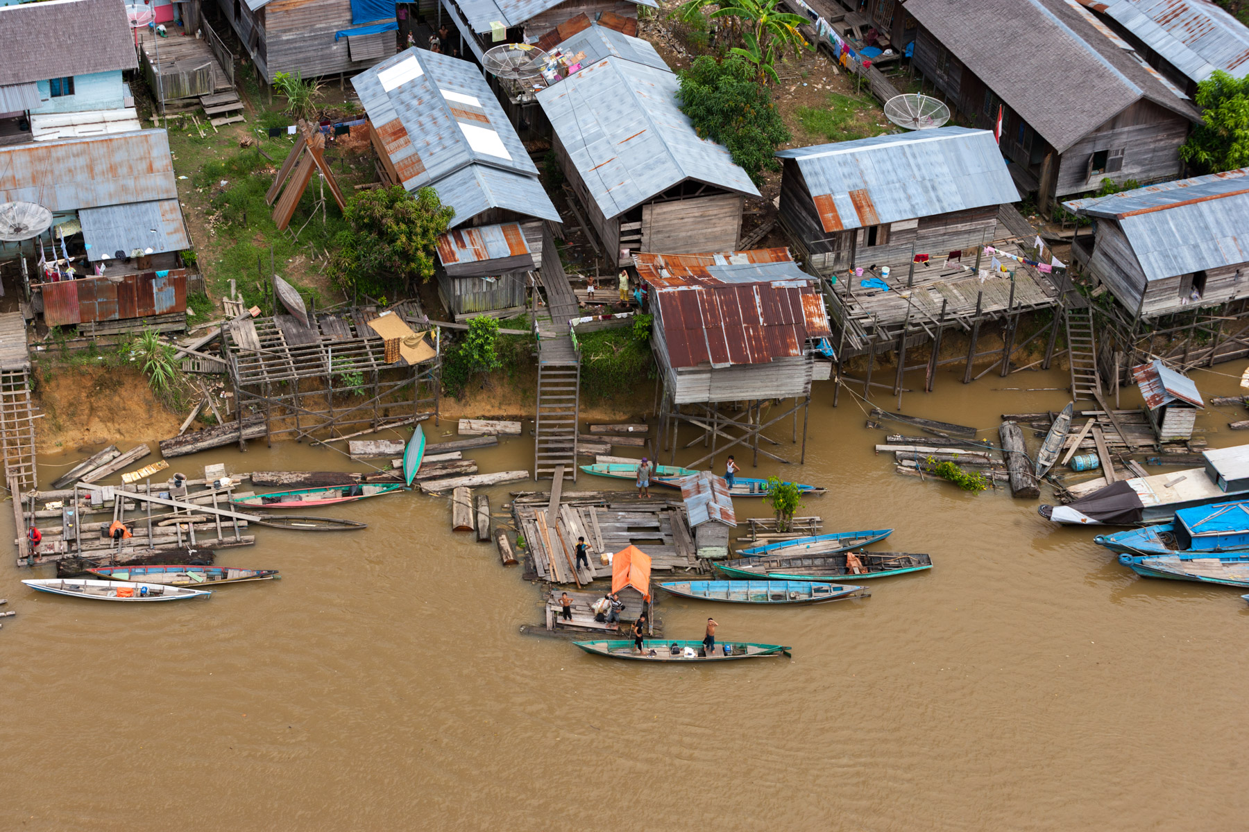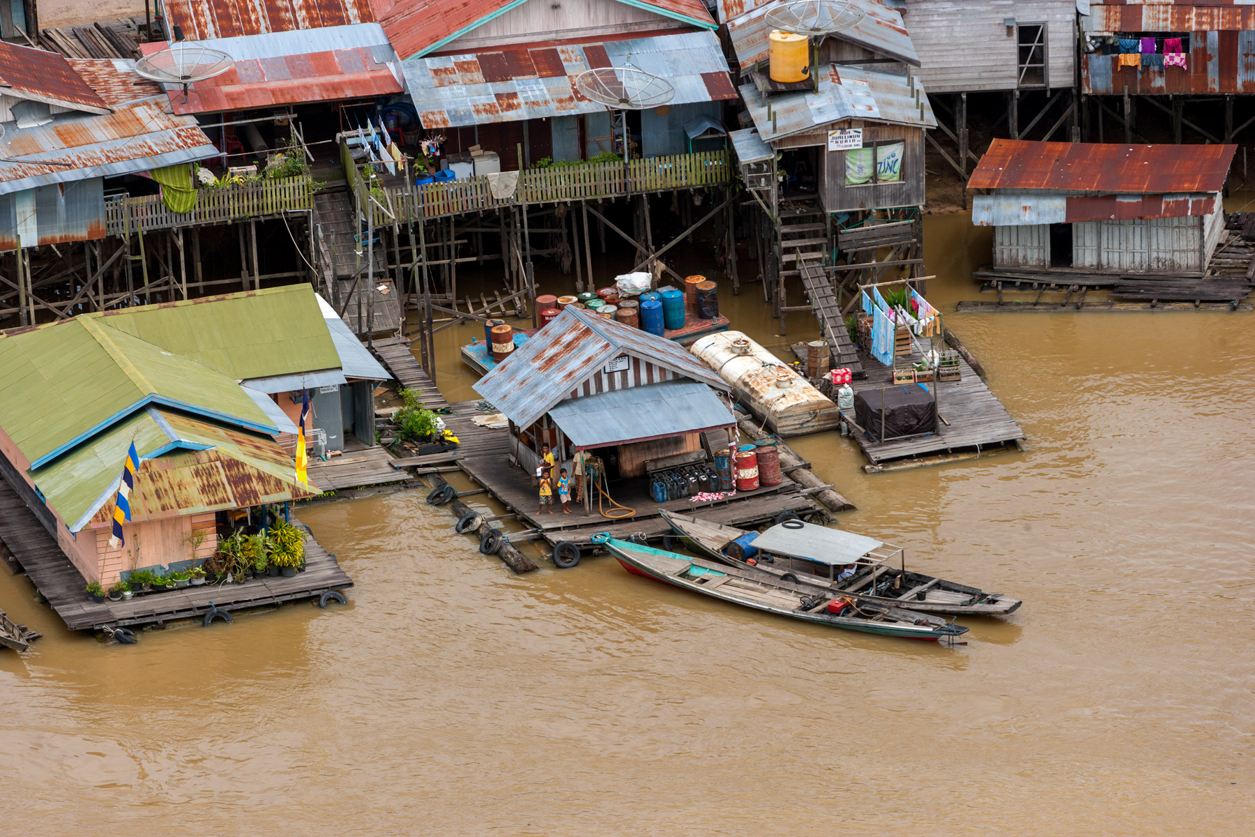 Maisons flottantes aux environs de Pundu, ouest de Palangkaraya, Kalimantan Centre, Bornéo