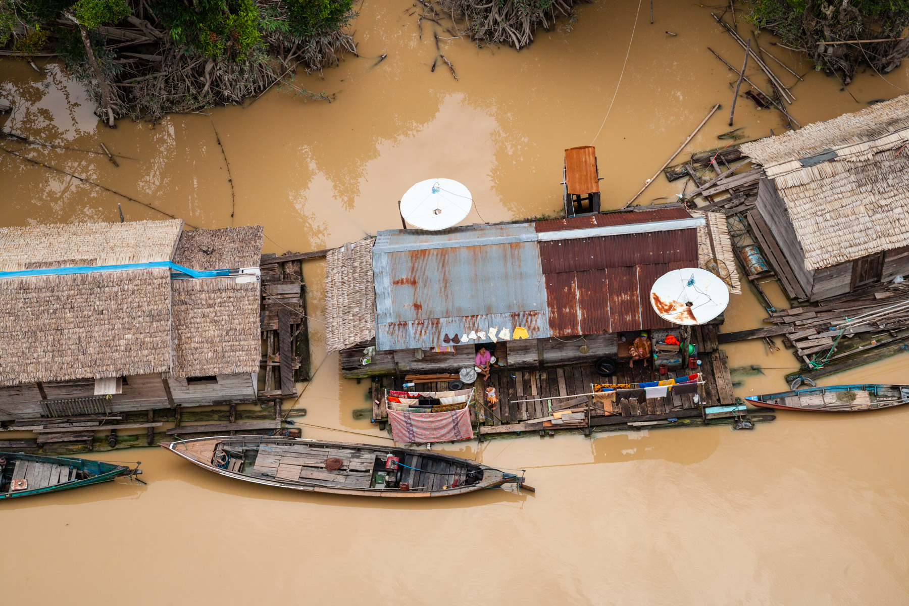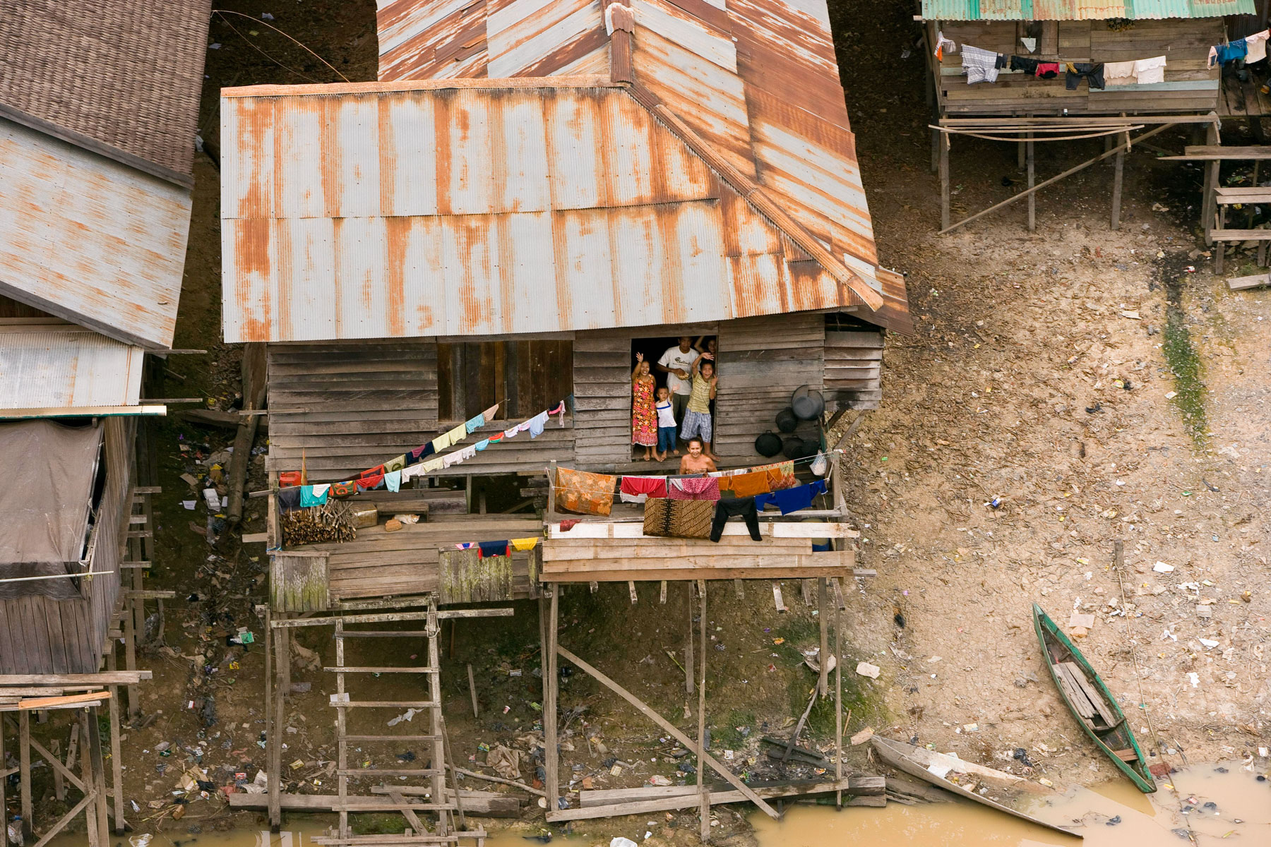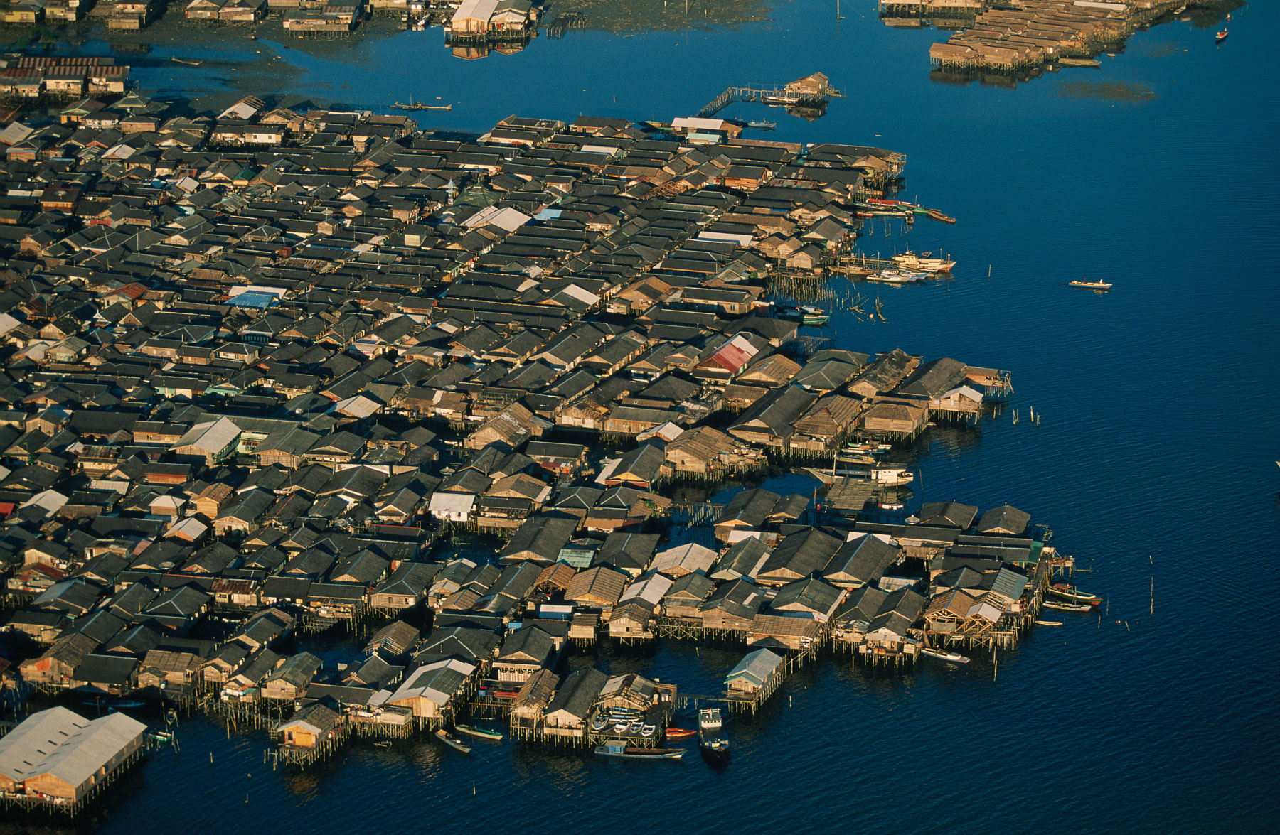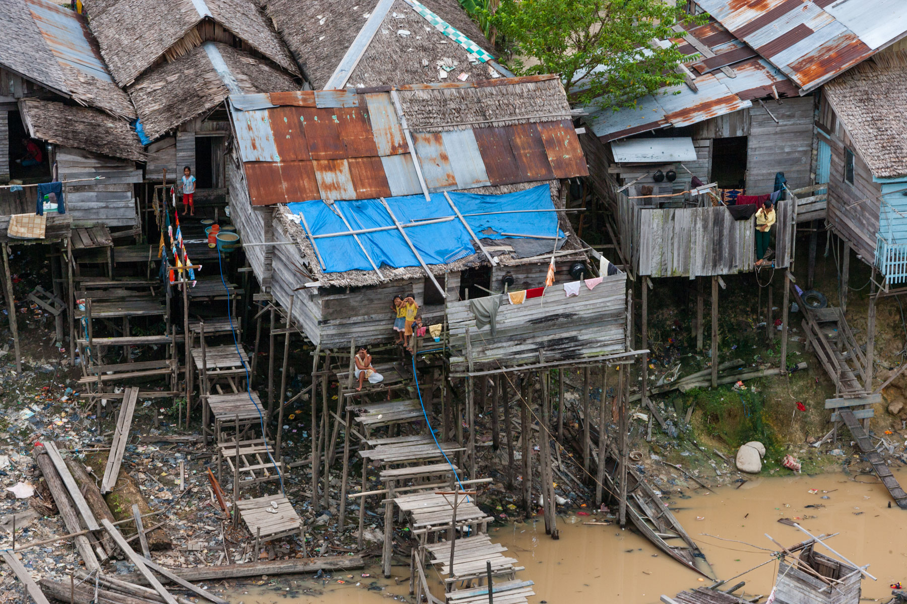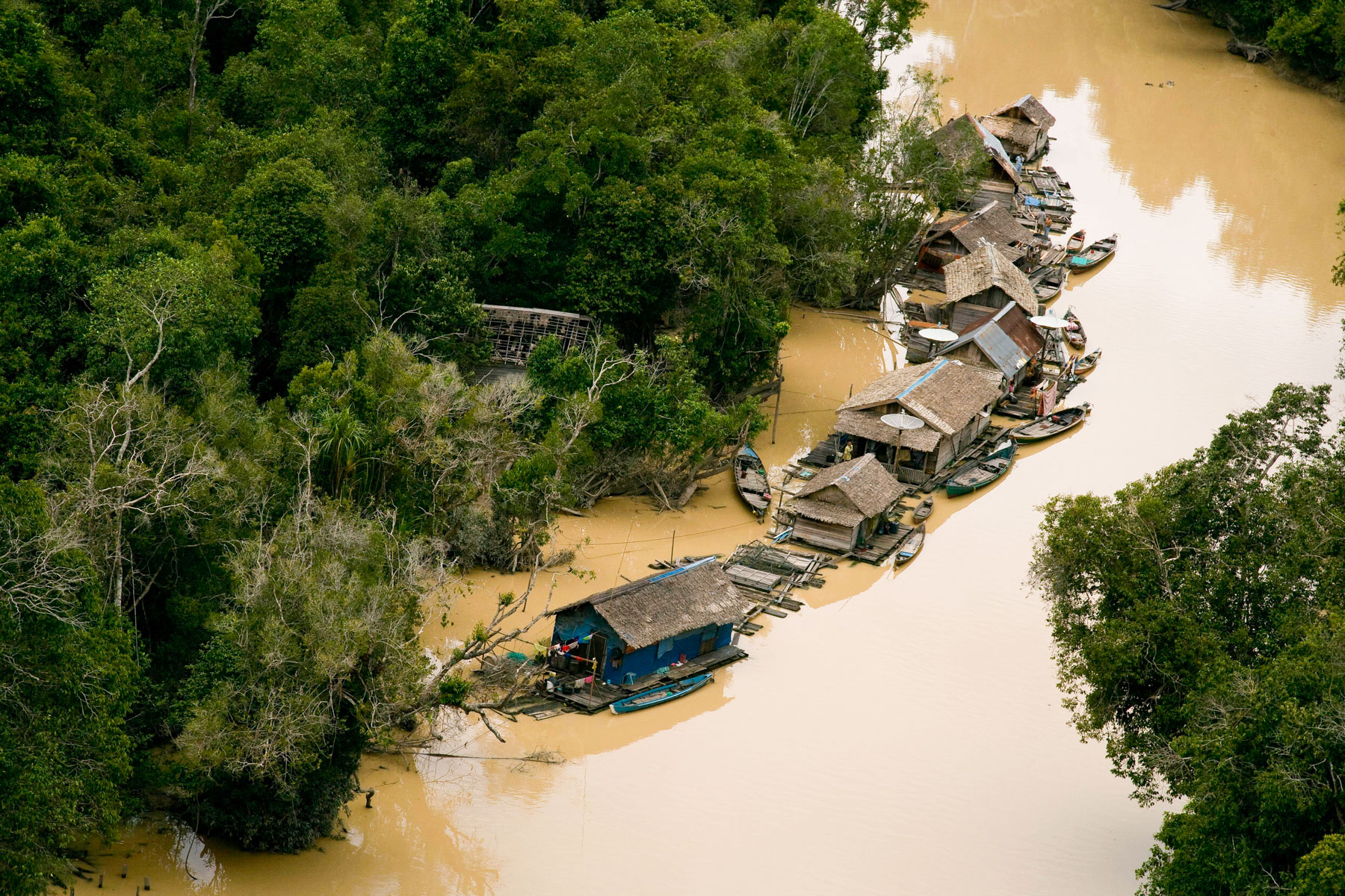 Maisons flottantes aux environs de Pundu, ouest de Palangkaraya, Kalimantan Centre, Bornéo