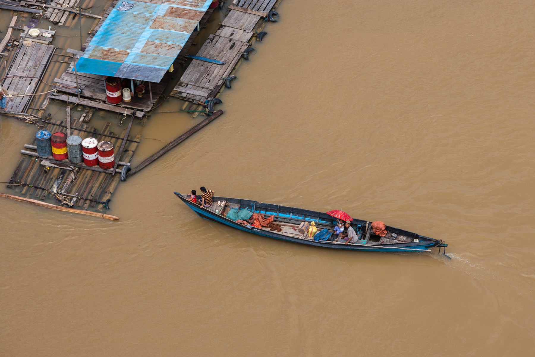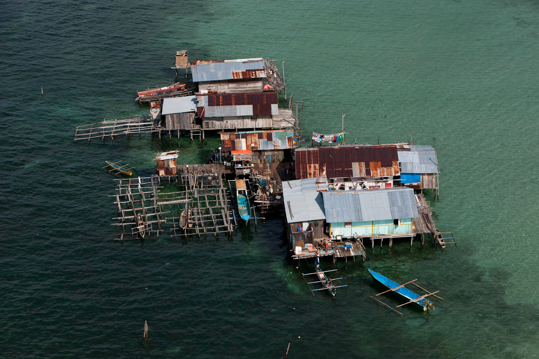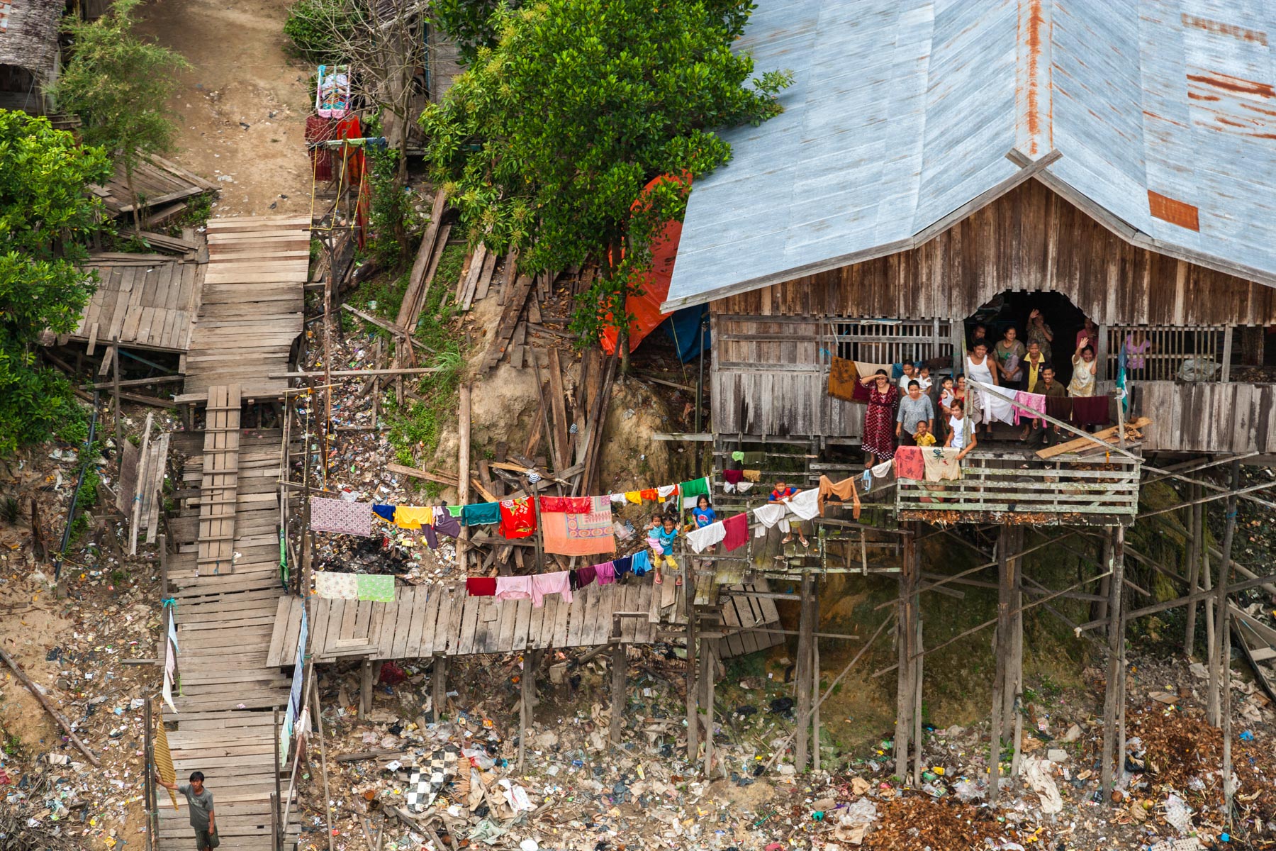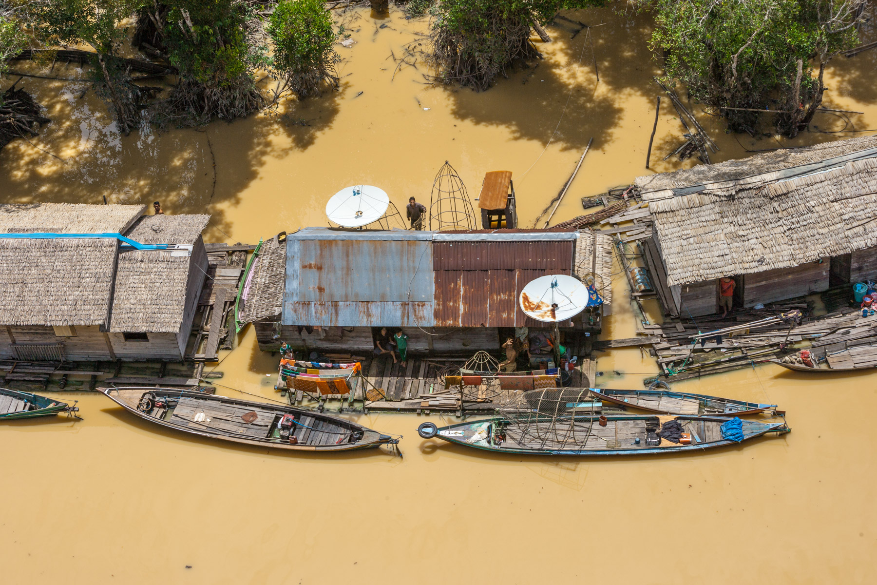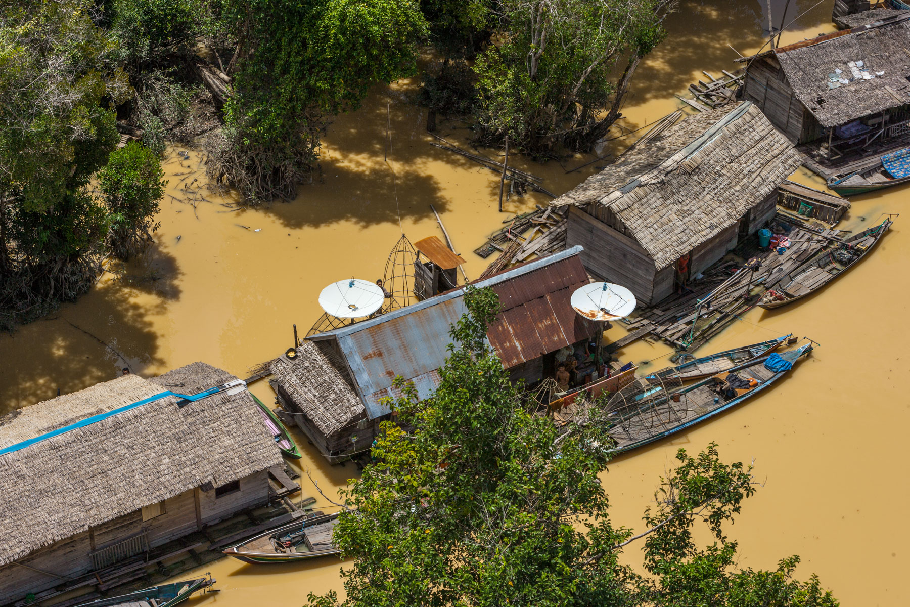 Maisons flottantes aux environs de Pundu, ouest de Palangkaraya, Kalimantan Centre, Bornéo