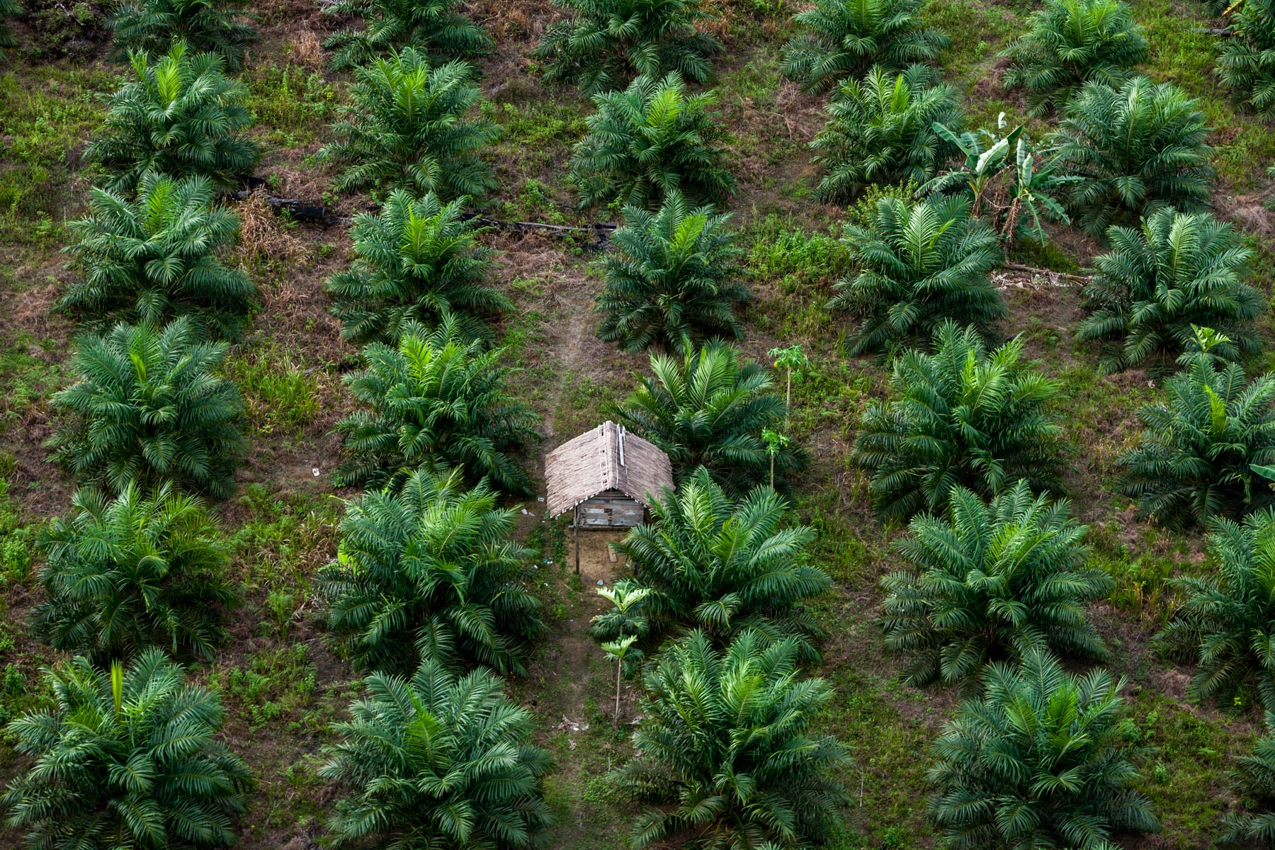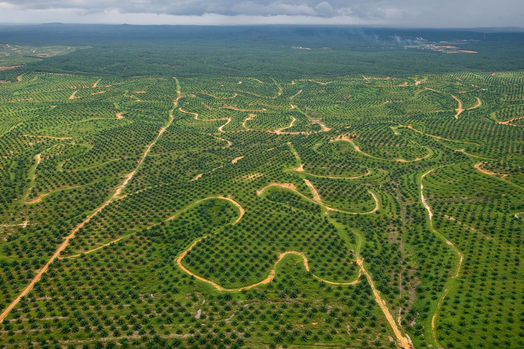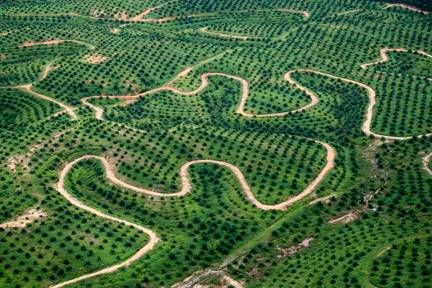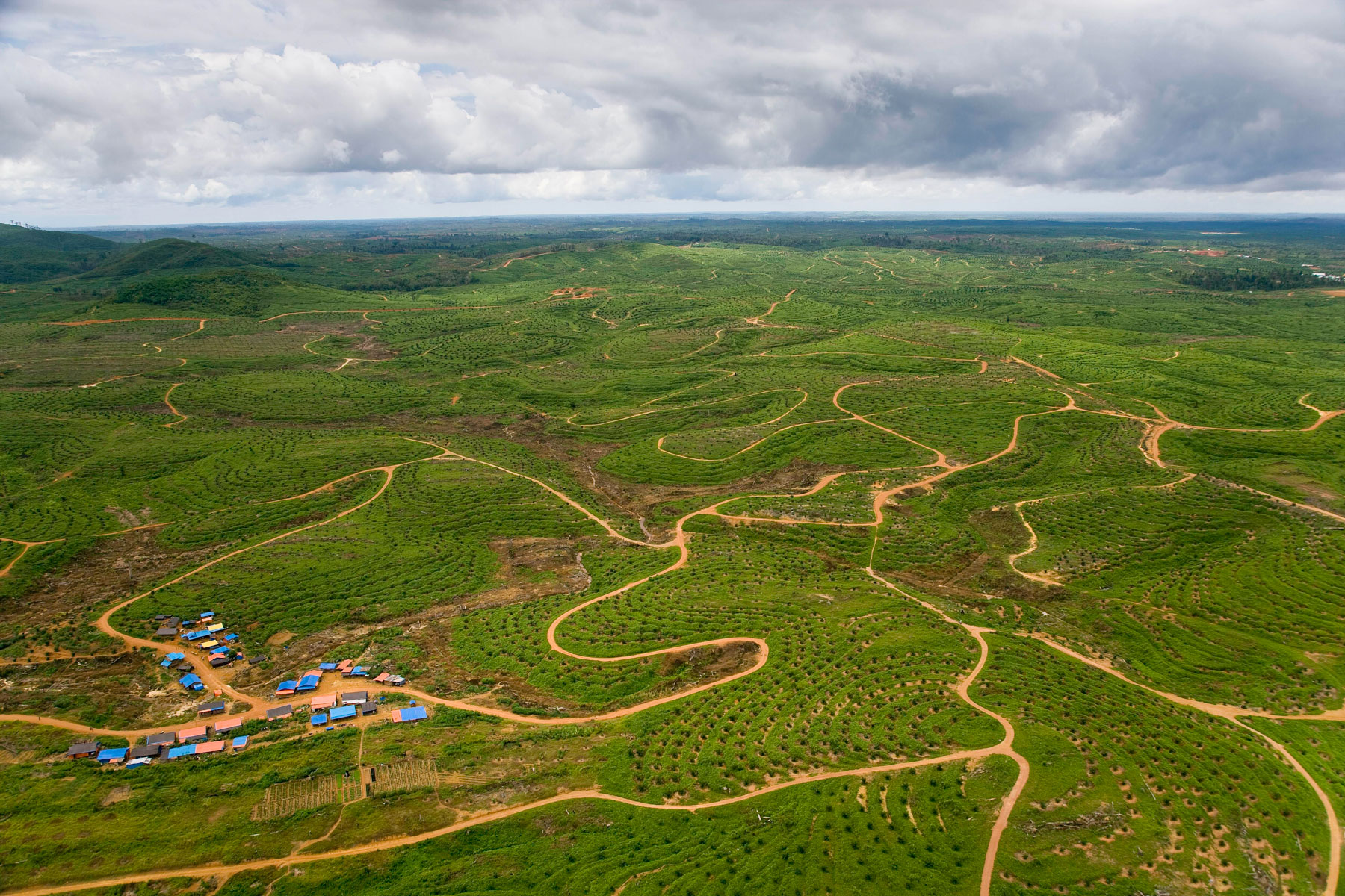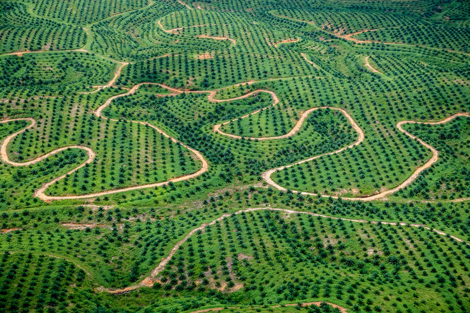 Nouvelle plantation de palmiers à huile près de Pundu, Bornéo, Indonésie (1°59’ S – 113°06’ E). Sur l’île de Bornéo, les palmiers à huile remplacent les forêts tropicales vierges à un rythme croissant, et ces plantations entraînent la perte de 80 % de la flore d’origine et de 80 à 90 % des espèces animales, comme l’orang-outan. La demande mondiale pour l’huile de palme est la principale cause de déforestation dans certaines parties de l’Asie. Au début de l’année 2010, il y avait 7,9 millions d’hectares plantés contre 600 000 en 1985, ainsi que 1,9 million d’hectares en attente de plantation. L’archipel indonésien est devenu le premier producteur mondial d’huile de palme en 2008, devant la Malaisie. La demande mondiale pour cette matière première augmente, passant de 14,5 millions de tonnes en 1990 à 56 millions de tonnes en 2013 car elle entre dans la composition de beaucoup de produits alimentaires, mais aussi dans celle des détergents et des cosmétiques. De plus en plus utilisée pour la fabrication d’agrocarburants, cette huile alimentaire pourrait devenir trop chère pour les consommateurs pauvres des pays en voie de développement. Dans l’Union européenne, l’utilisation de la moitié de la production d’huile de colza pour produire des agrocarburants contraint les pays membres à importer davantage d’huile de palme et de soja pour la consommation humaine.