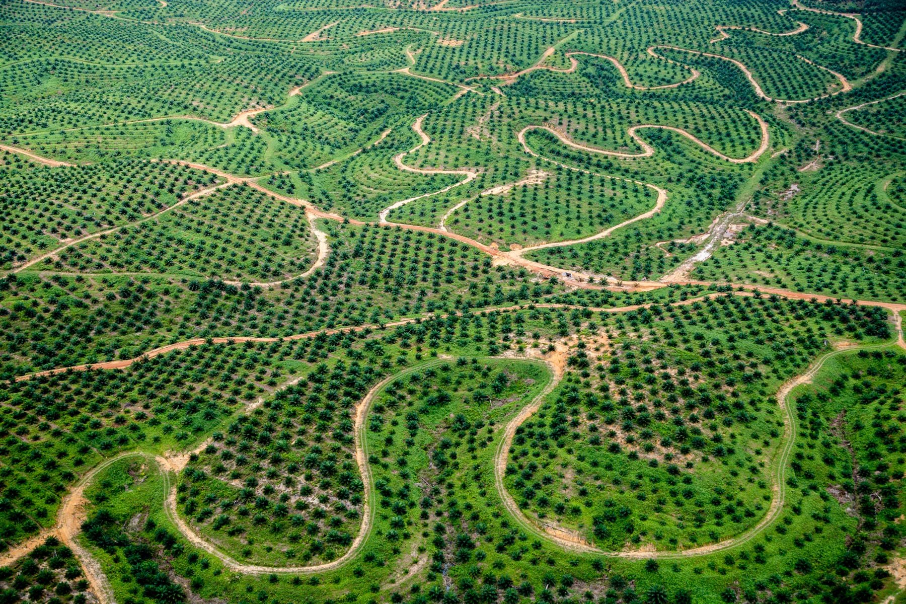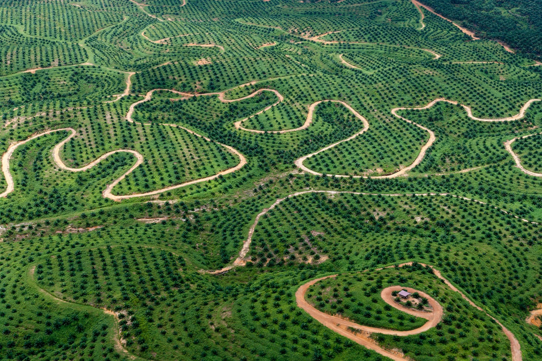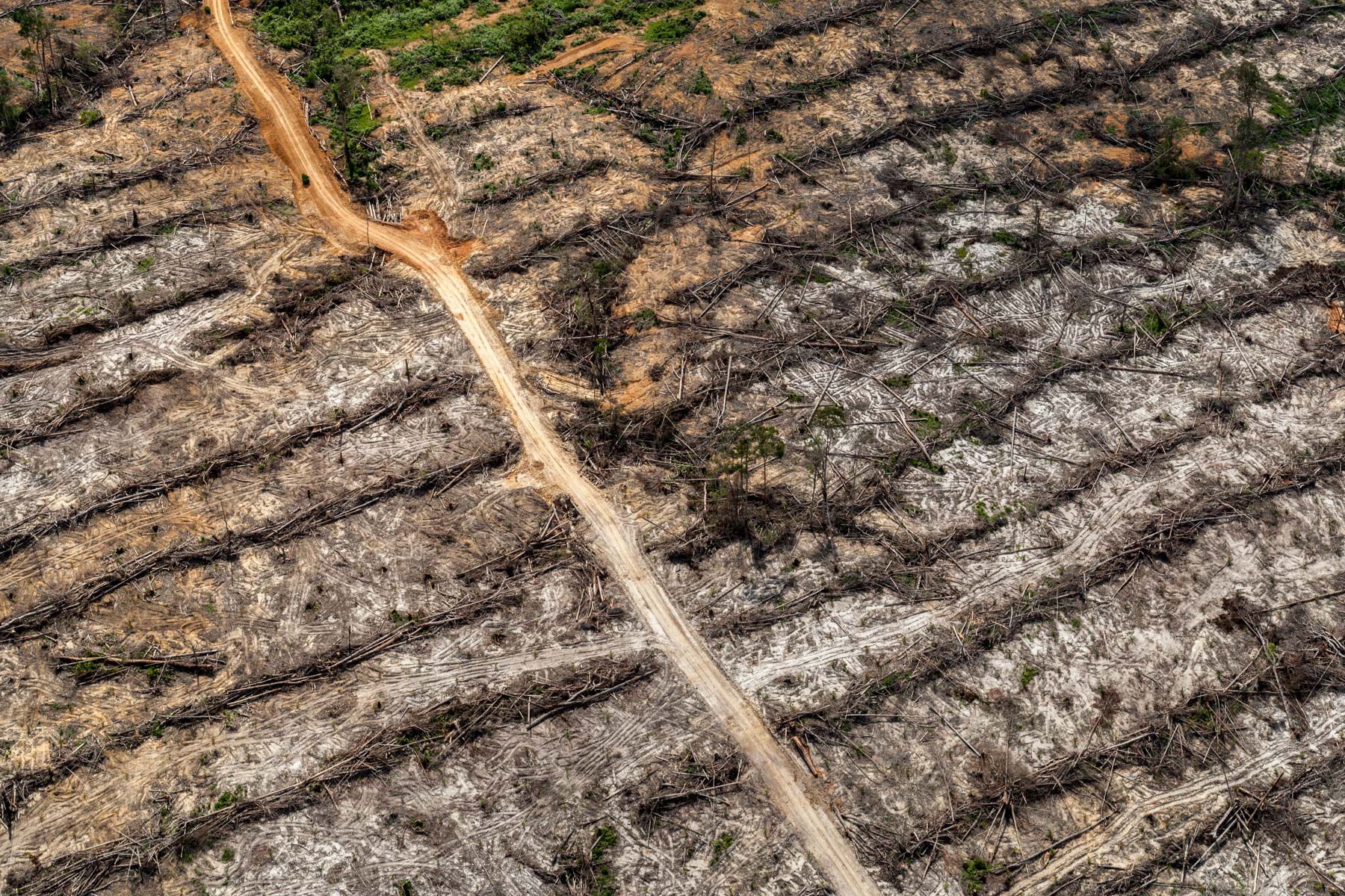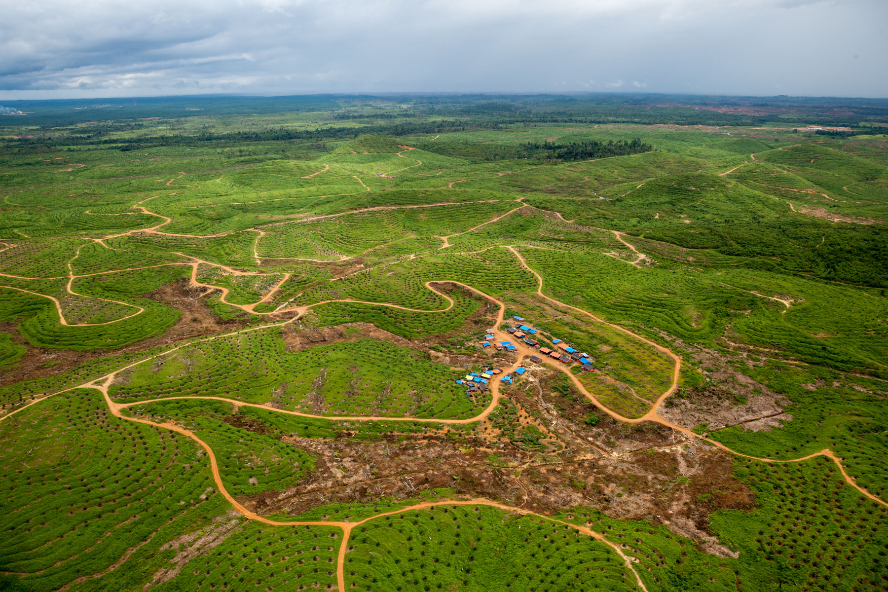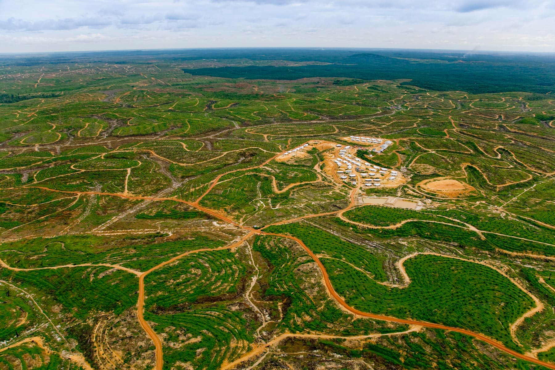 Nouvelle plantation de palmiers à huile près de Pundu, Bornéo, Indonésie (1°59’ S – 113°06’ E). Sur l’île de Bornéo, les palmiers à huile remplacent les forêts tropicales vierges à un rythme croissant, et ces plantations entraînent la perte de 80 % de la flore d’origine et de 80 à 90 % des espèces animales, comme l’orang-outan. La demande mondiale pour l’huile de palme est la principale cause de déforestation dans certaines parties de l’Asie. Au début de l’année 2010, il y avait 7,9 millions d’hectares plantés contre 600 000 en 1985, ainsi que 1,9 million d’hectares en attente de plantation. L’archipel indonésien est devenu le premier producteur mondial d’huile de palme en 2008, devant la Malaisie. La demande mondiale pour cette matière première augmente, passant de 14,5 millions de tonnes en 1990 à 56 millions de tonnes en 2013 car elle entre dans la composition de beaucoup de produits alimentaires, mais aussi dans celle des détergents et des cosmétiques. De plus en plus utilisée pour la fabrication d’agrocarburants, cette huile alimentaire pourrait devenir trop chère pour les consommateurs pauvres des pays en voie de développement. Dans l’Union européenne, l’utilisation de la moitié de la production d’huile de colza pour produire des agrocarburants contraint les pays membres à importer davantage d’huile de palme et de soja pour la consommation humaine.