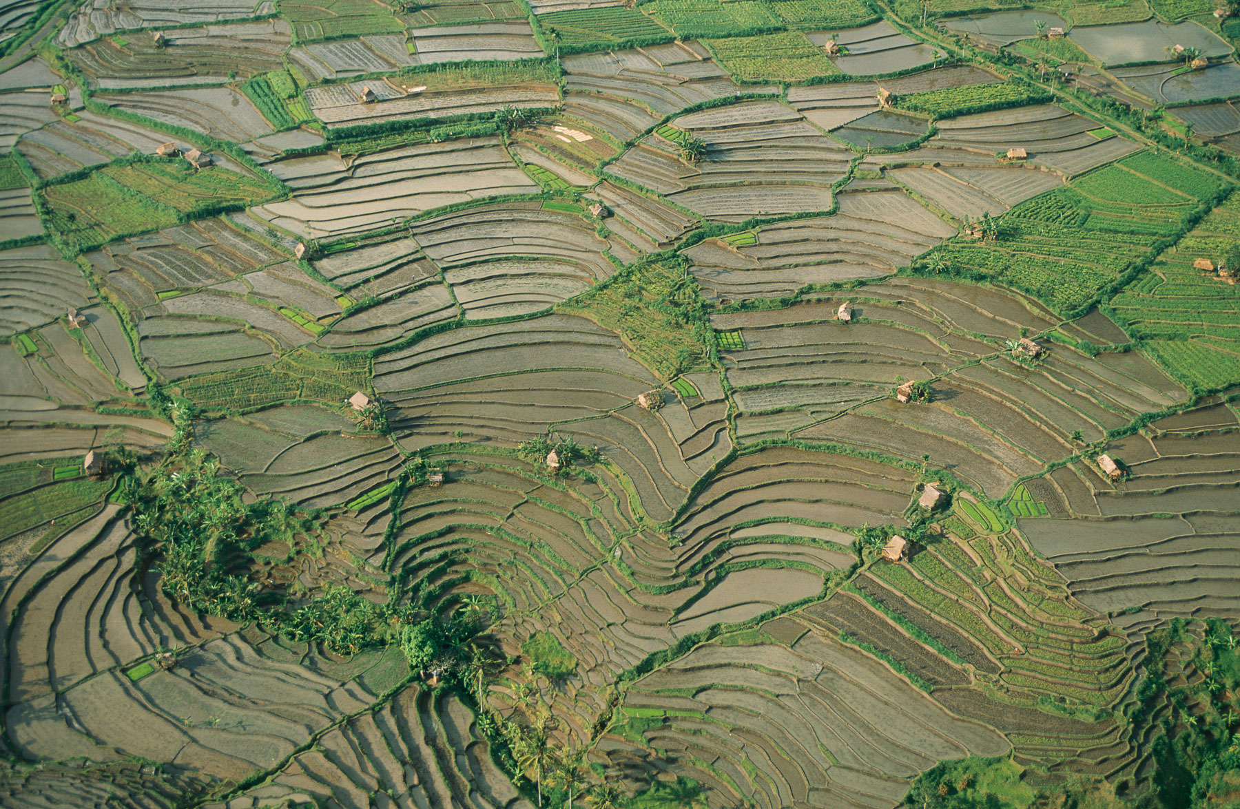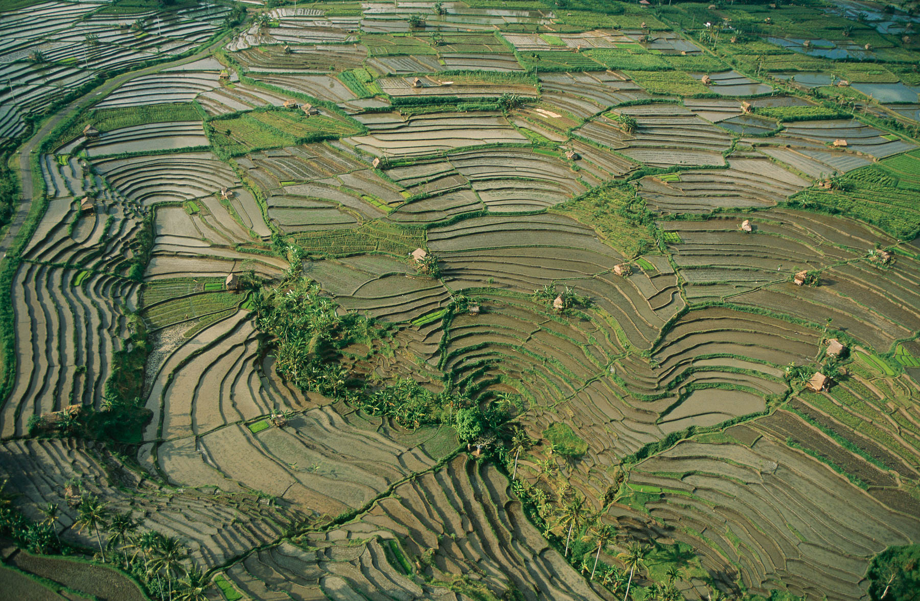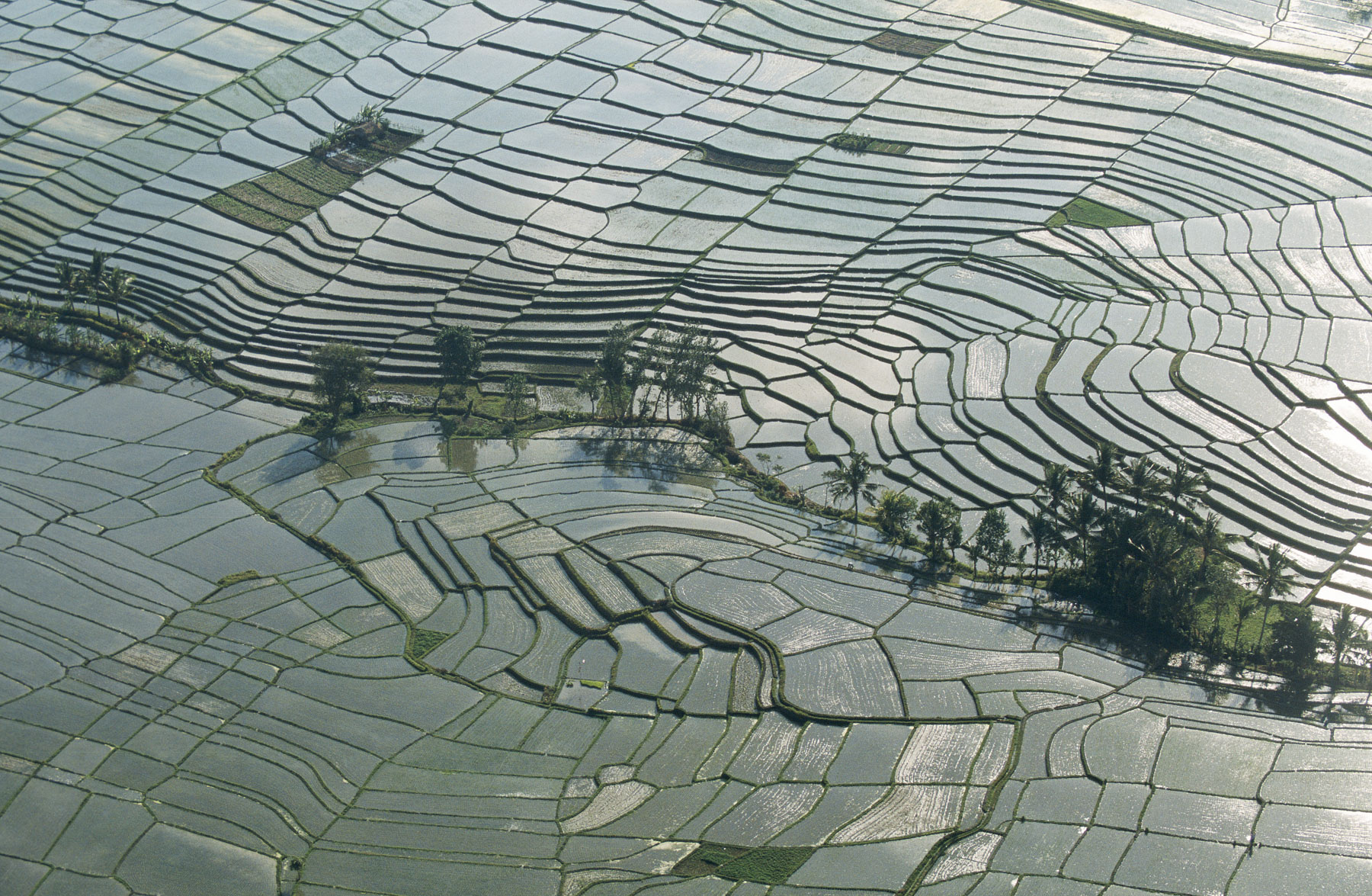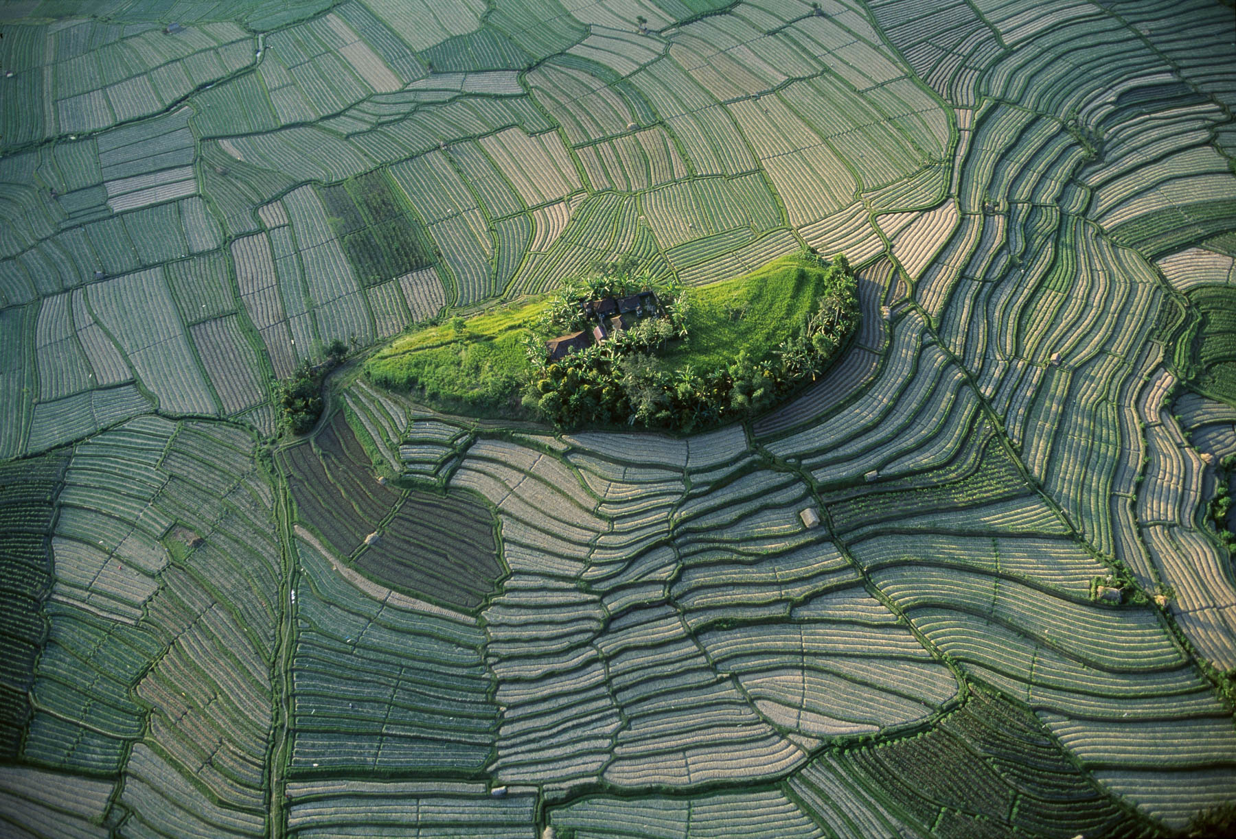 Islet in the terraced rice fields of Bali, Indonesia (8°22' S – 115°08' E).