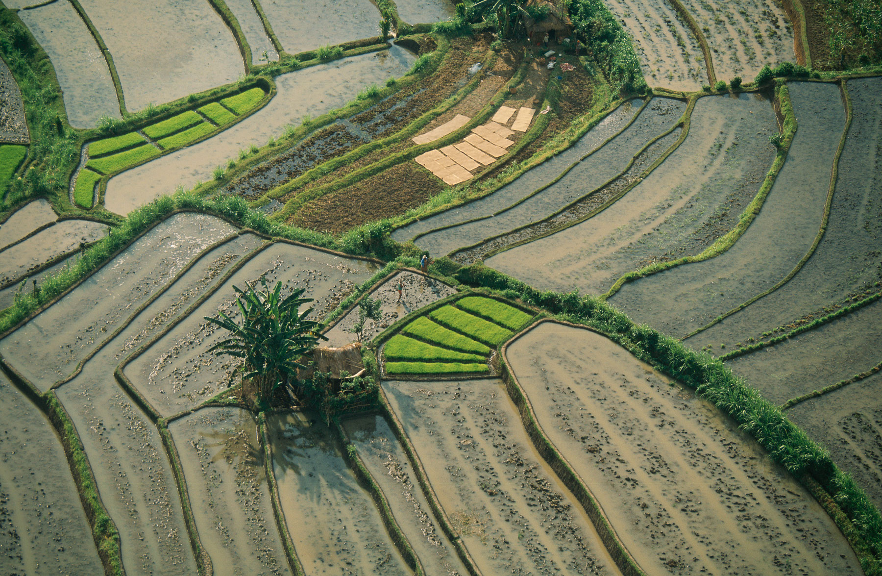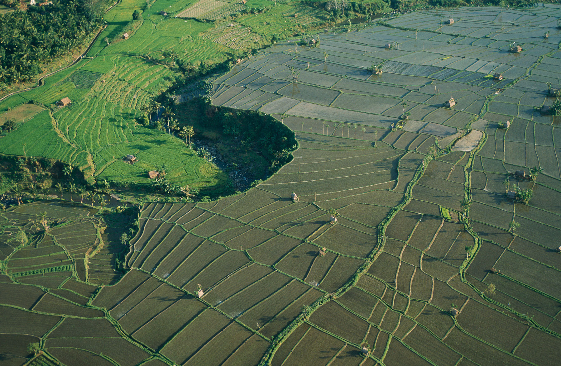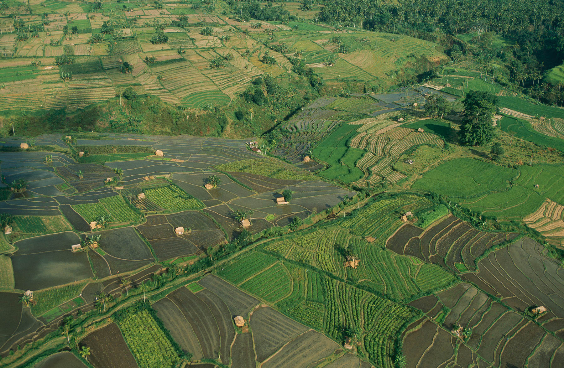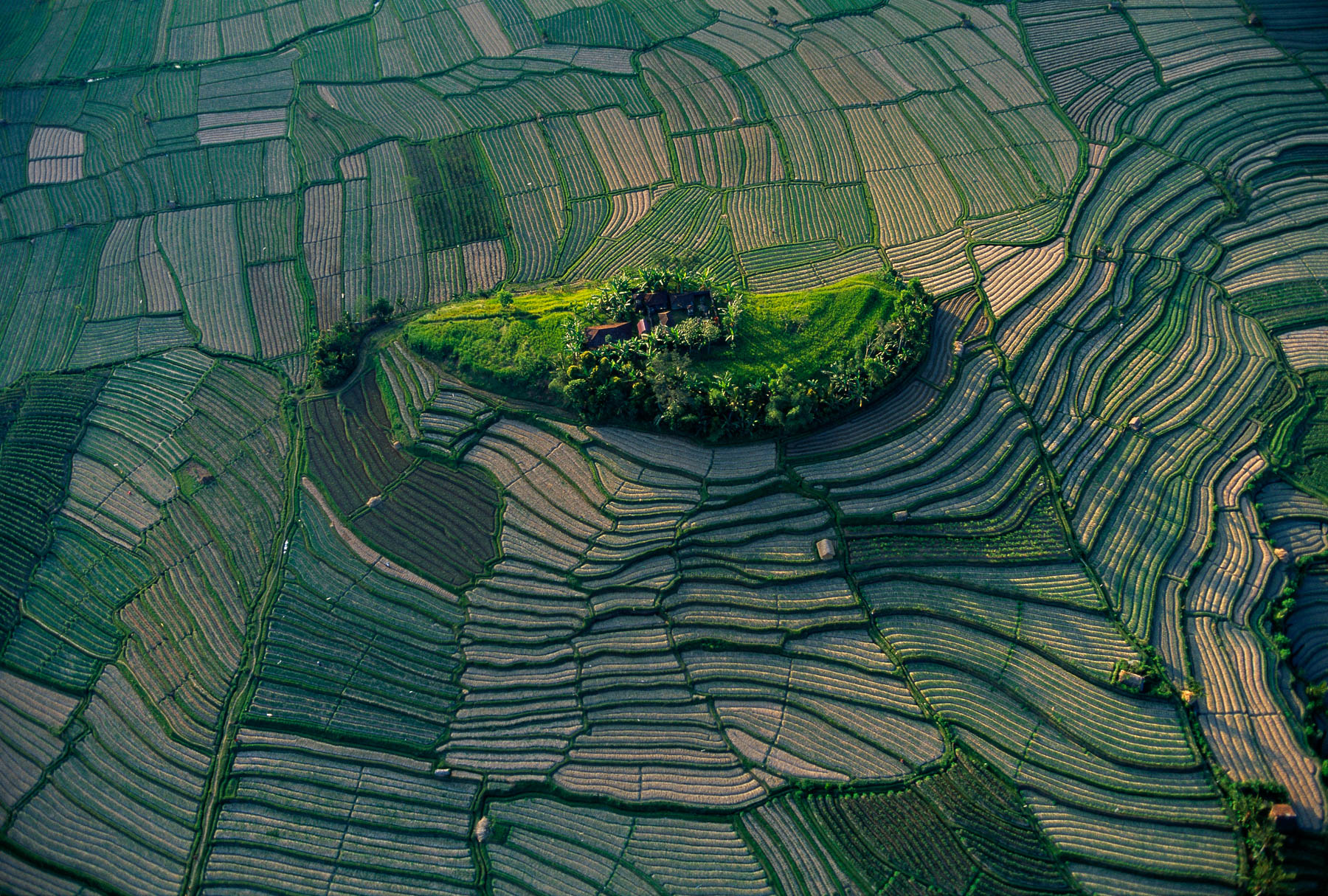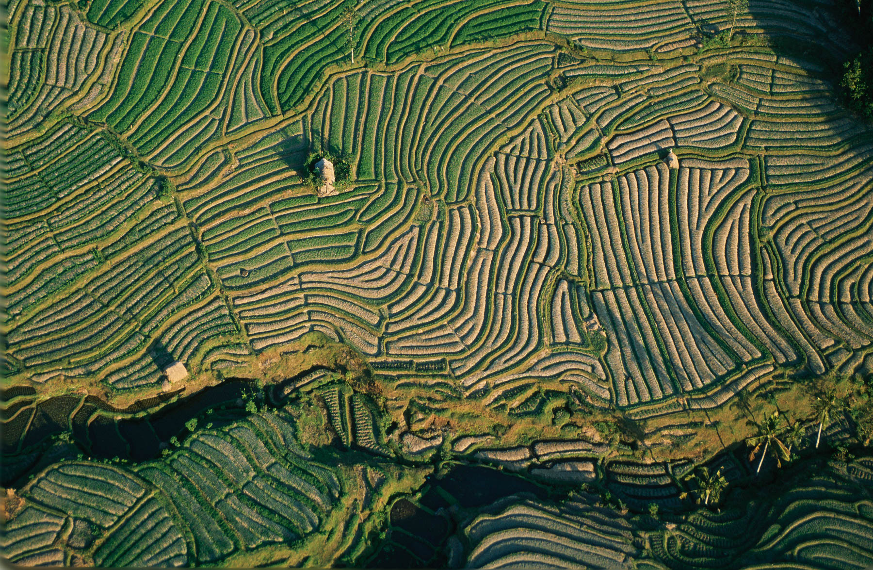 Islet in the terraced rice fields of Bali, Indonesia (8°22' S – 115°08' E).