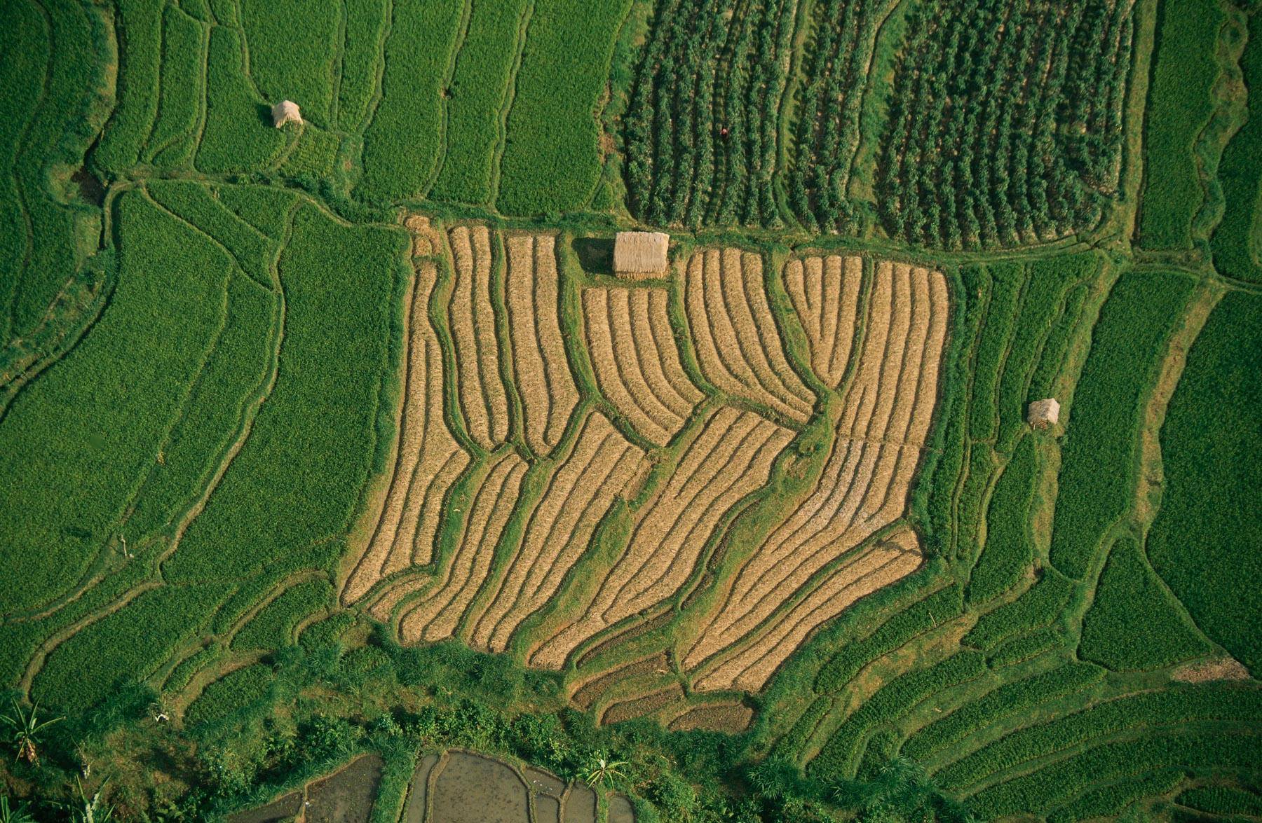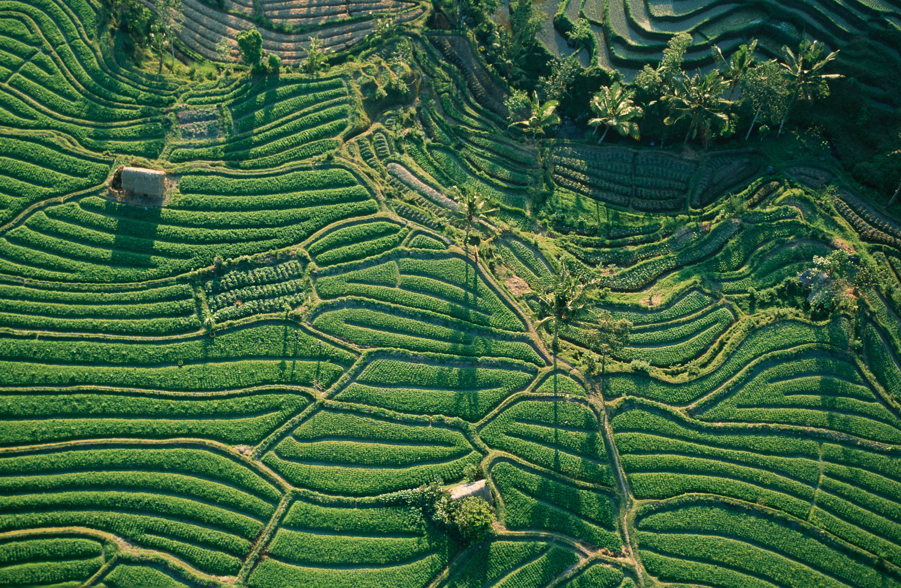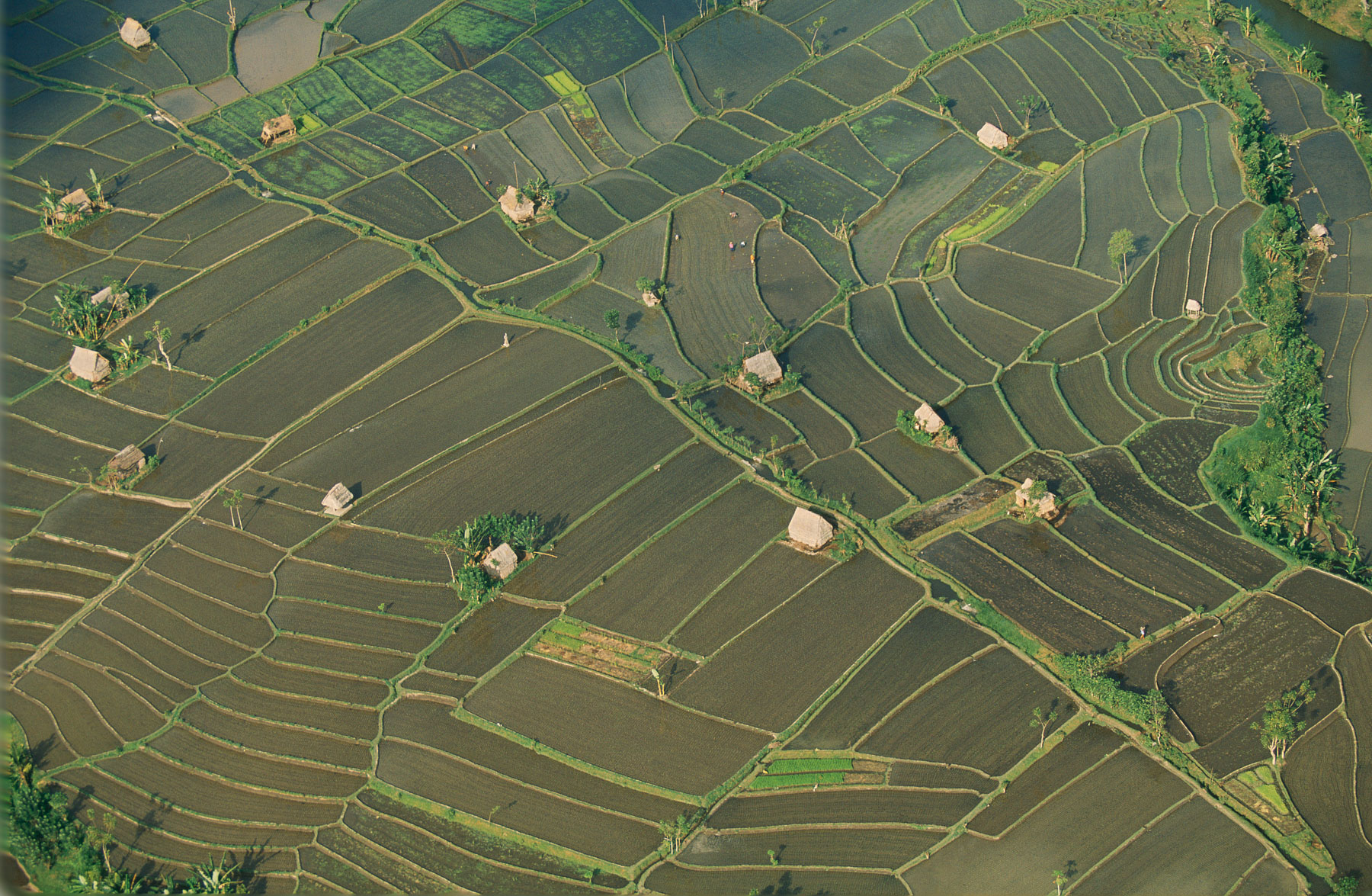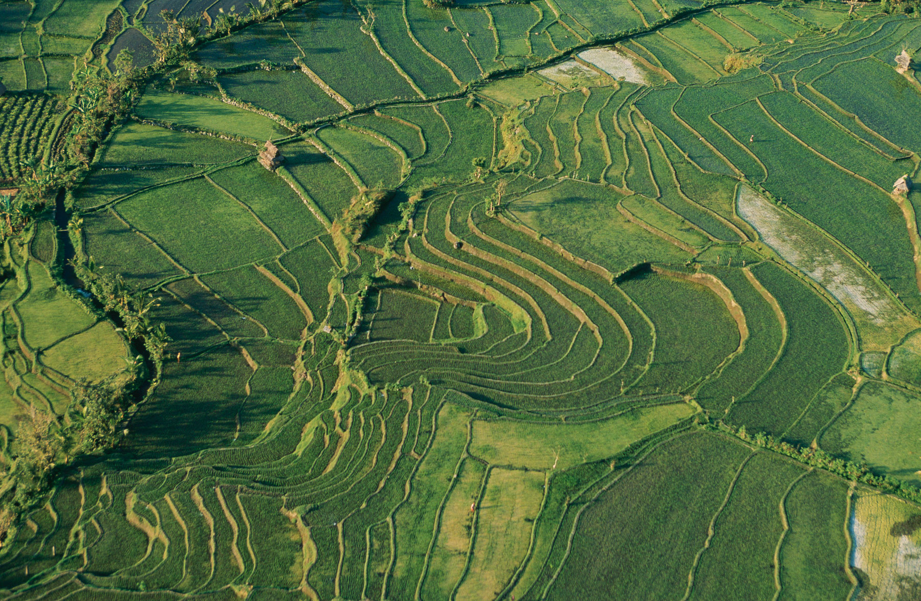 Islet in the terraced rice fields of Bali, Indonesia (8°22' S – 115°08' E).