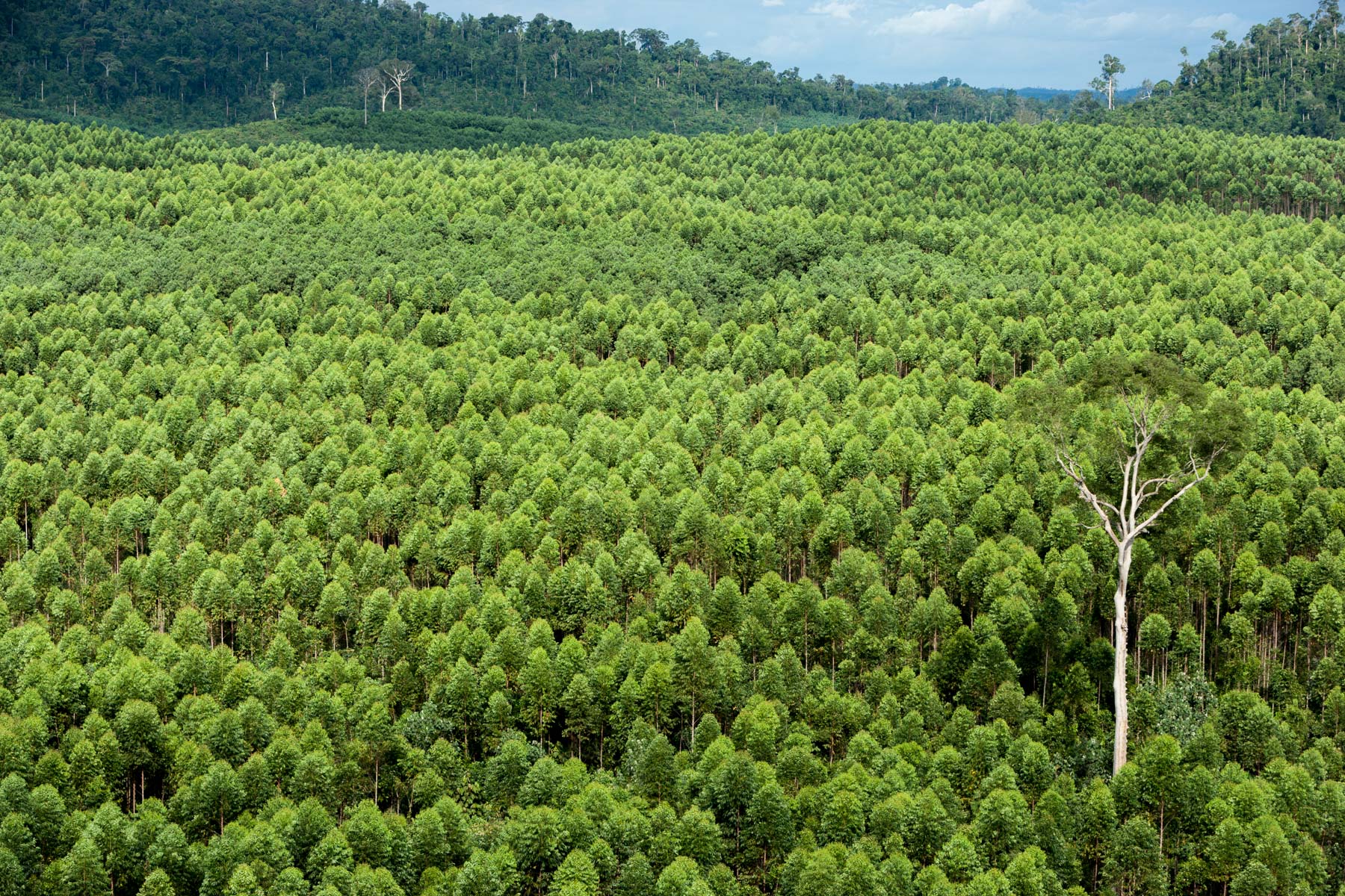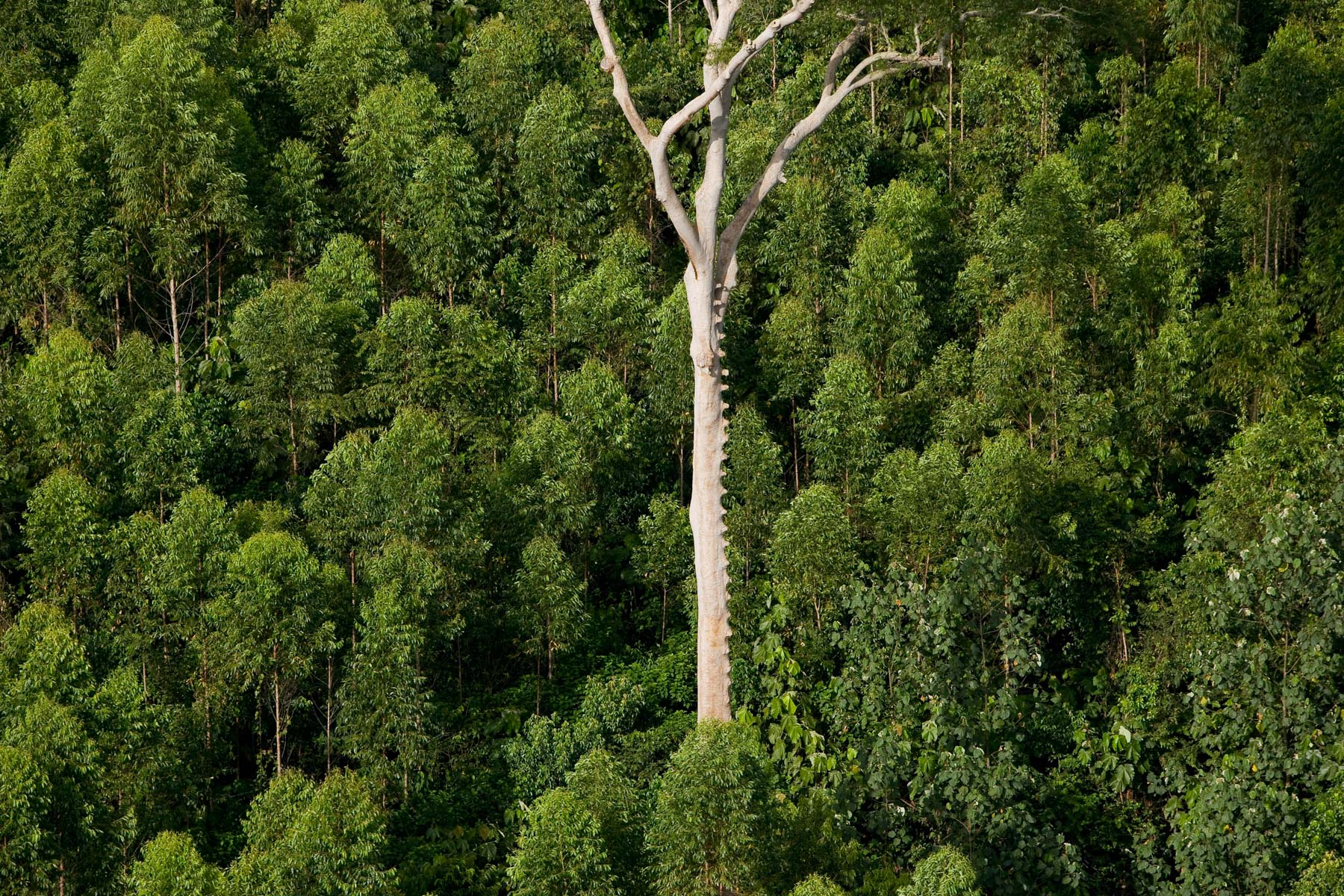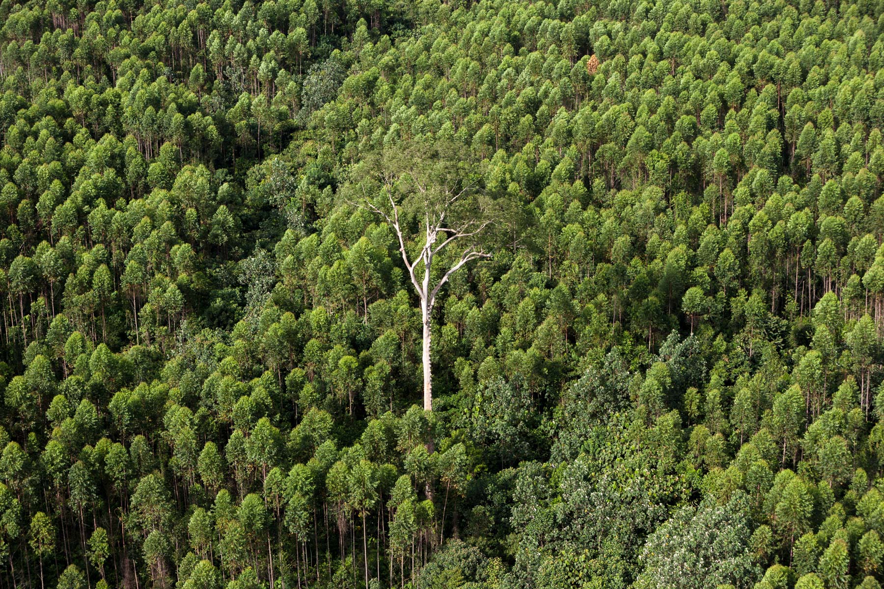 Isolated tree in a eucalyptus plantation, Indonesia (1°54' S - 112°29' E).