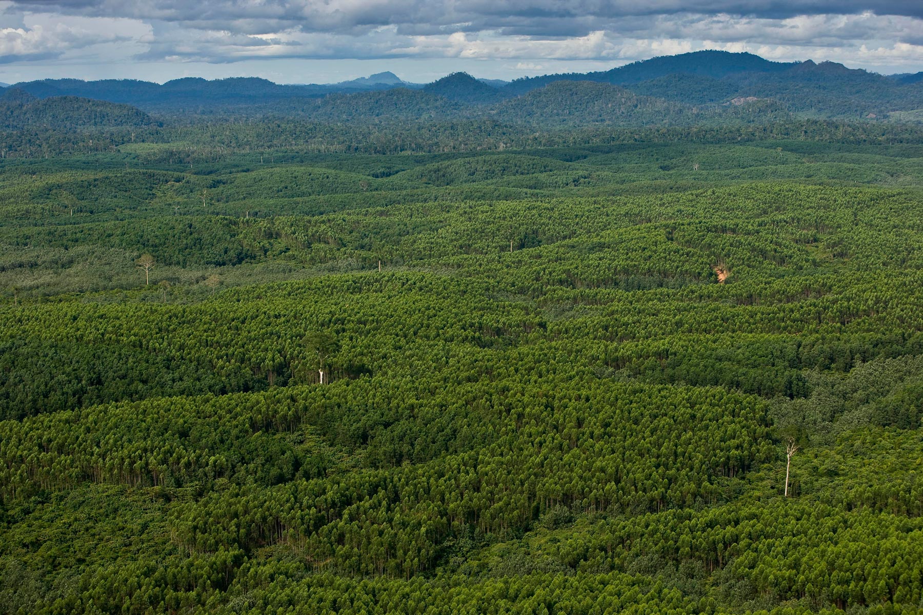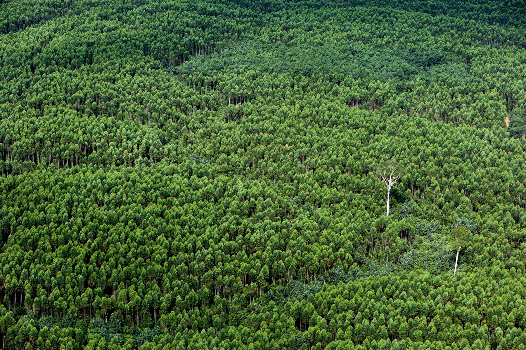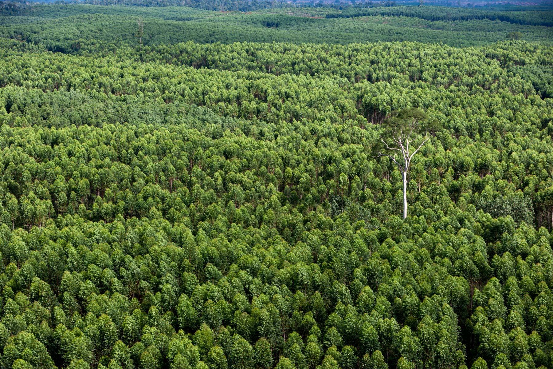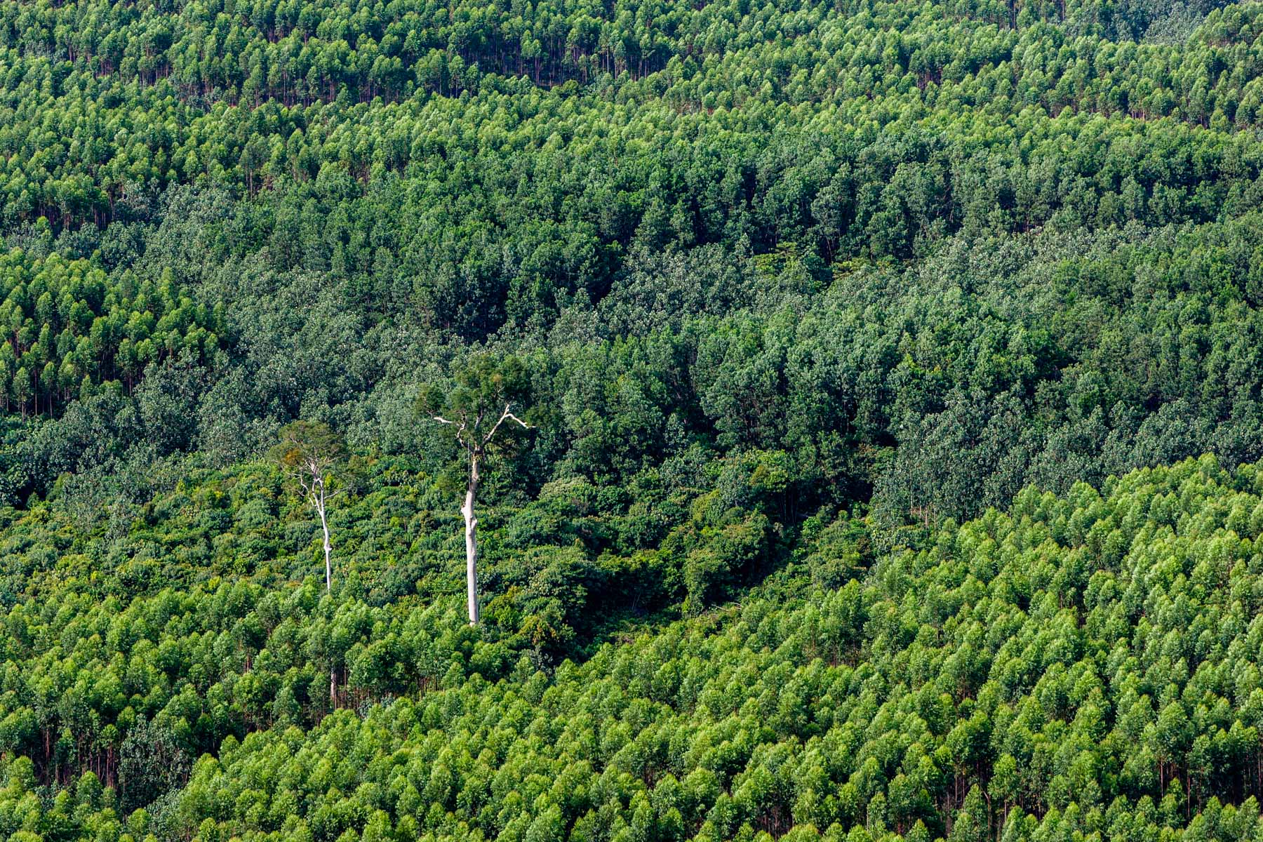 Isolated tree in a eucalyptus plantation, Indonesia (1°54' S - 112°29' E).