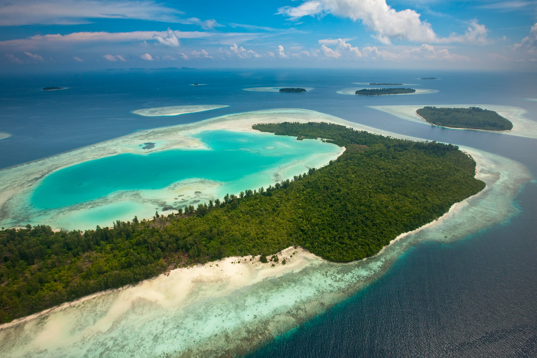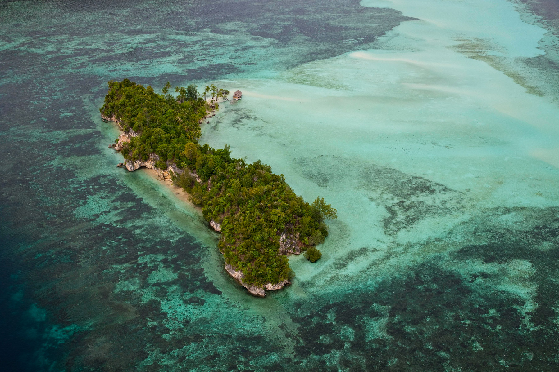 Archipel des Raja-Ampat (les quatre rois) : île au large de l'île Pulau Waigeo, province de Papouasie Occidentale, Indonésie ( 0°21'17.64"S-130°19'19.61"E)
