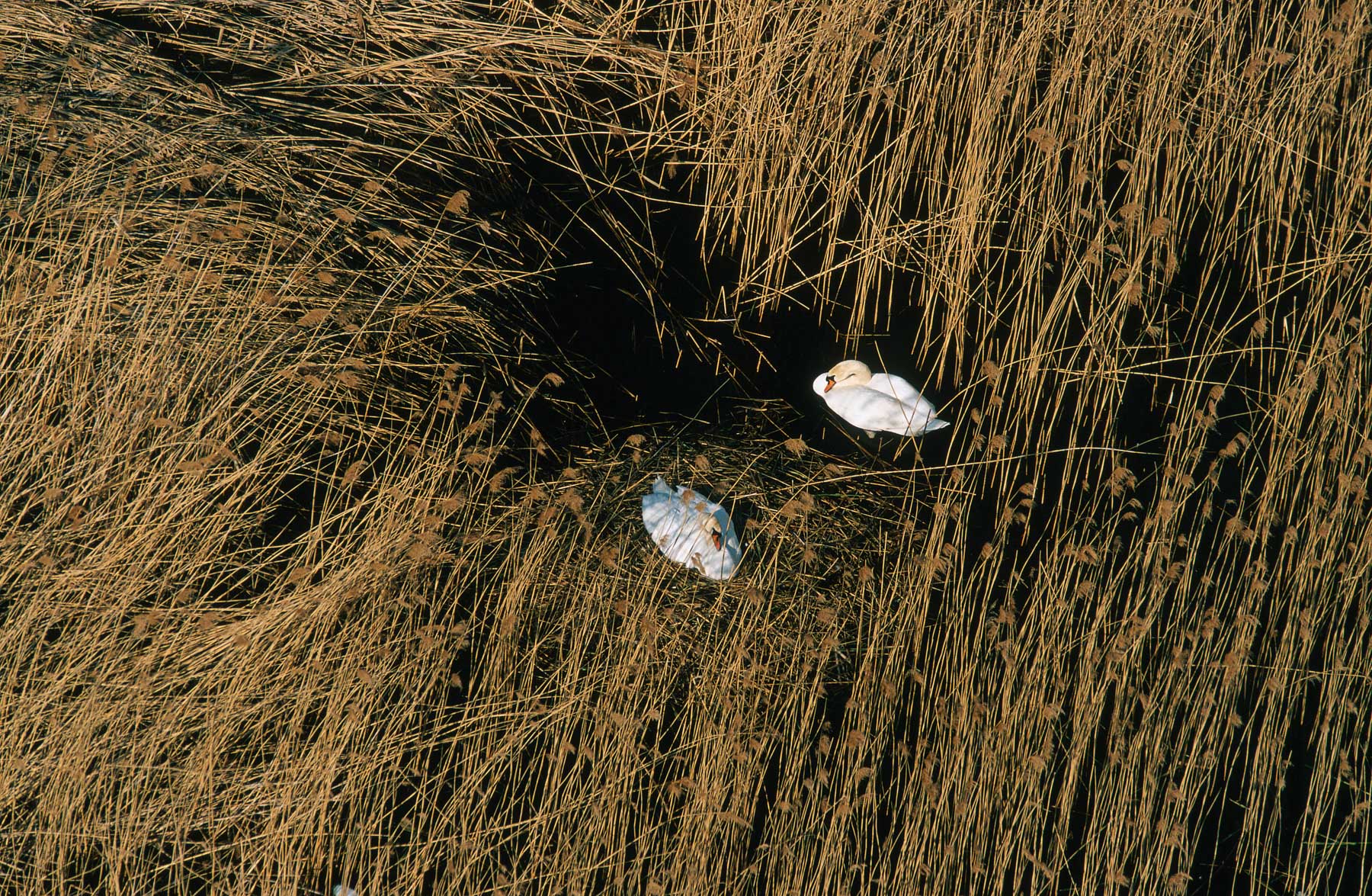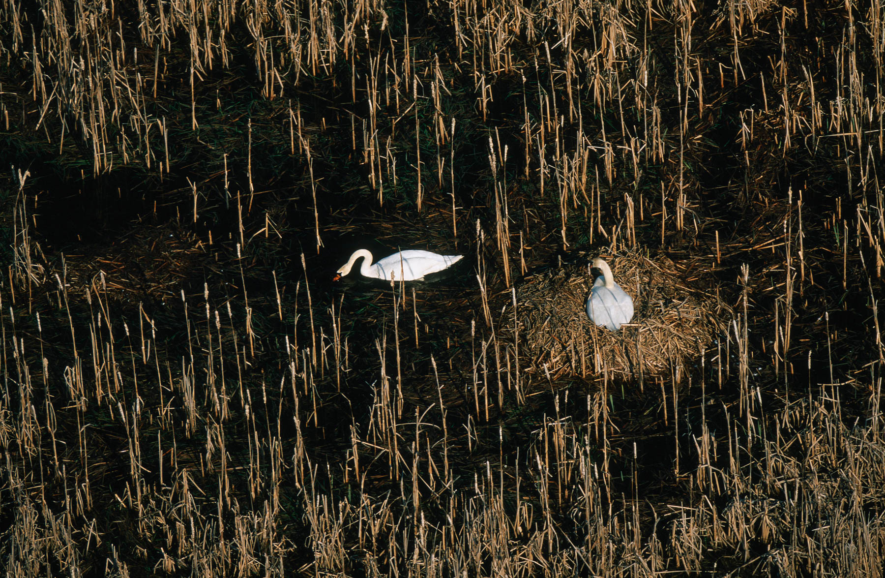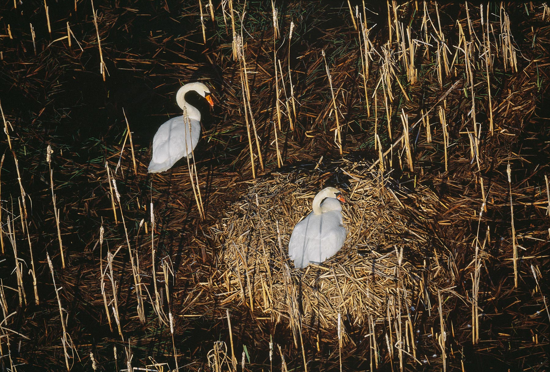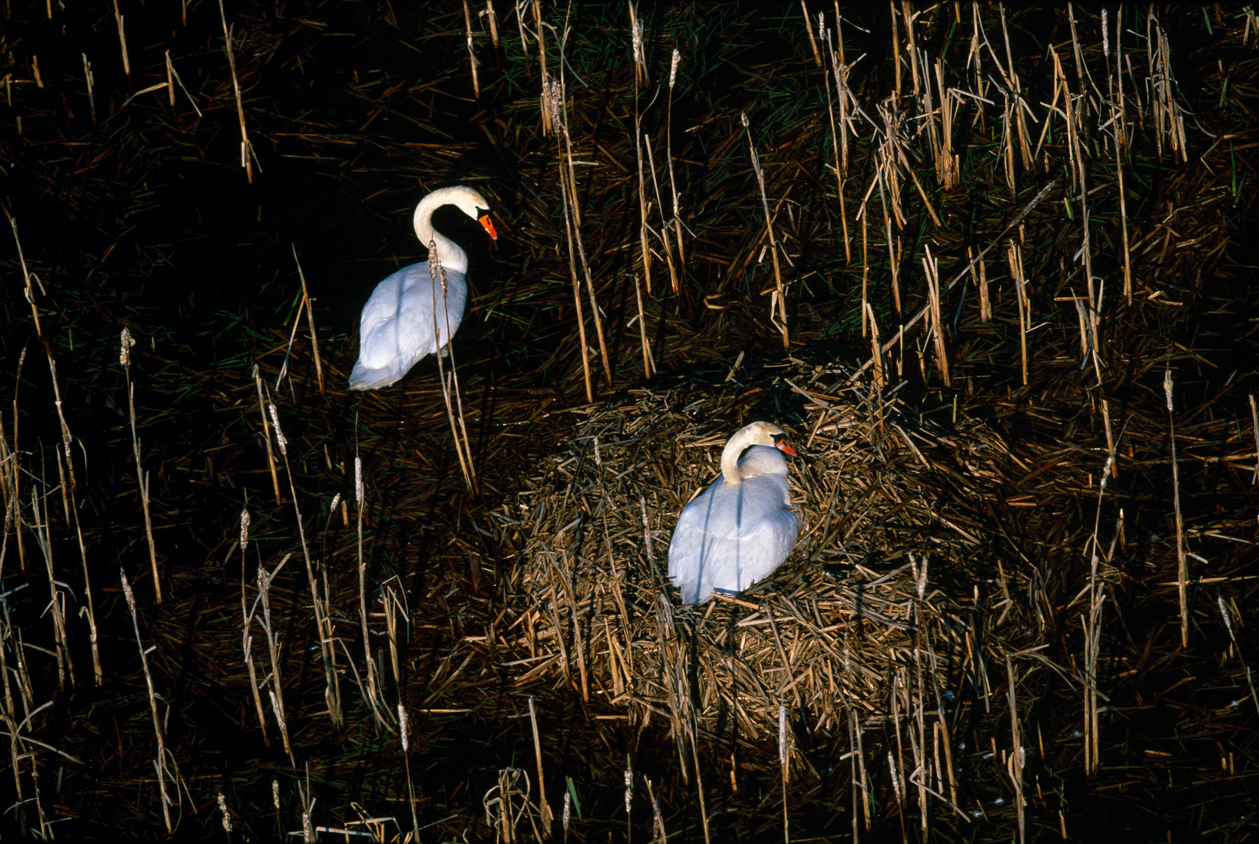 Nid de cygnes tuberculés près de Panociai, Varena ( Varenos), Lituanie