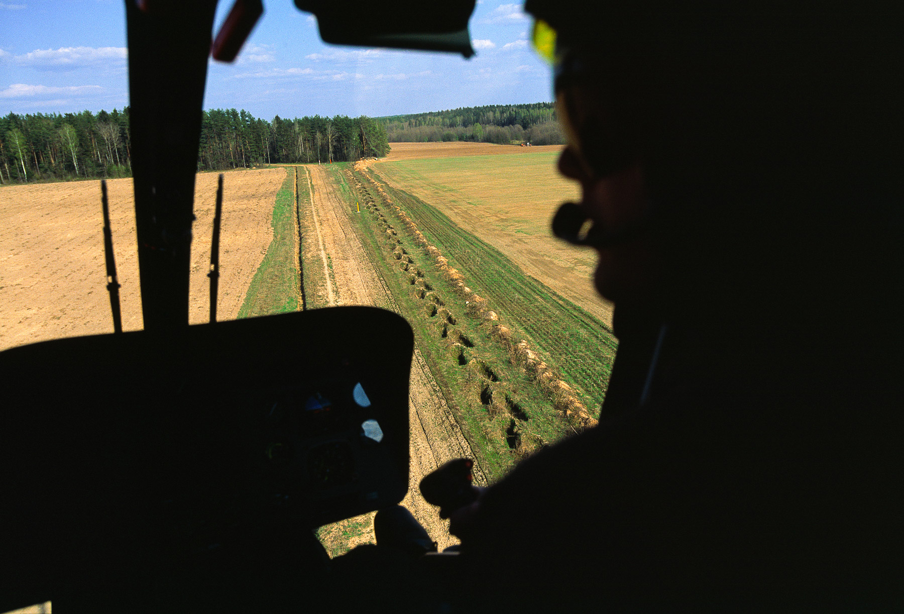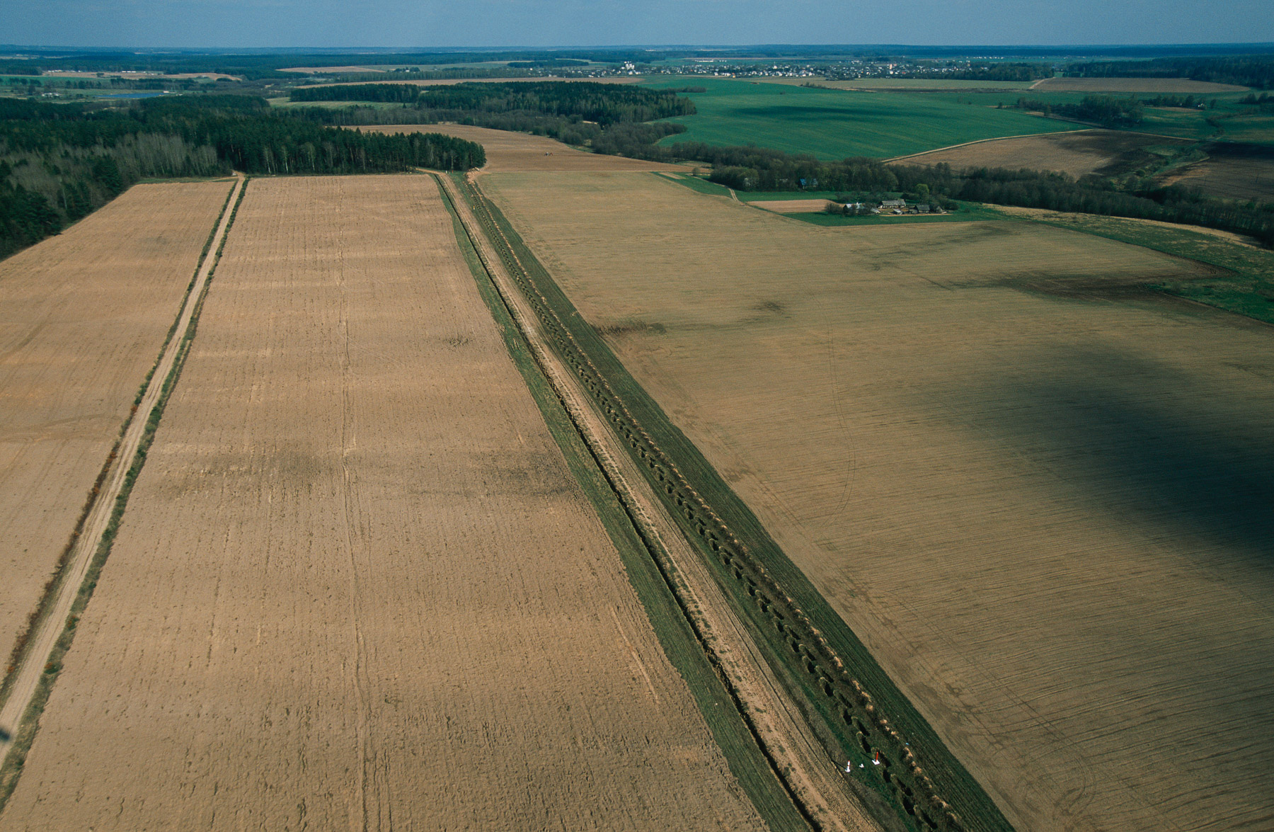 Frontière biélorusse vue d’un hélicoptère garde-frontière lituanien, Lituanie