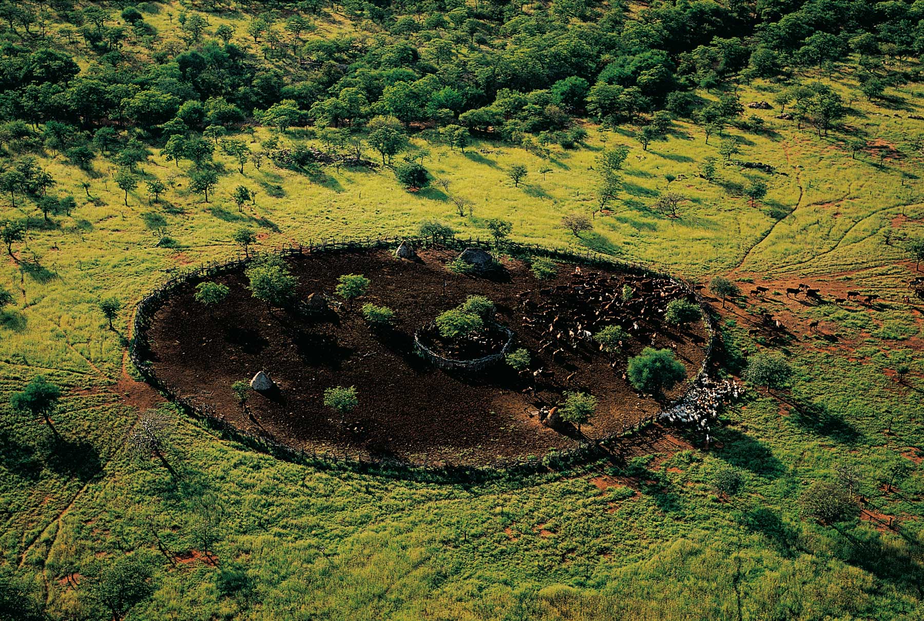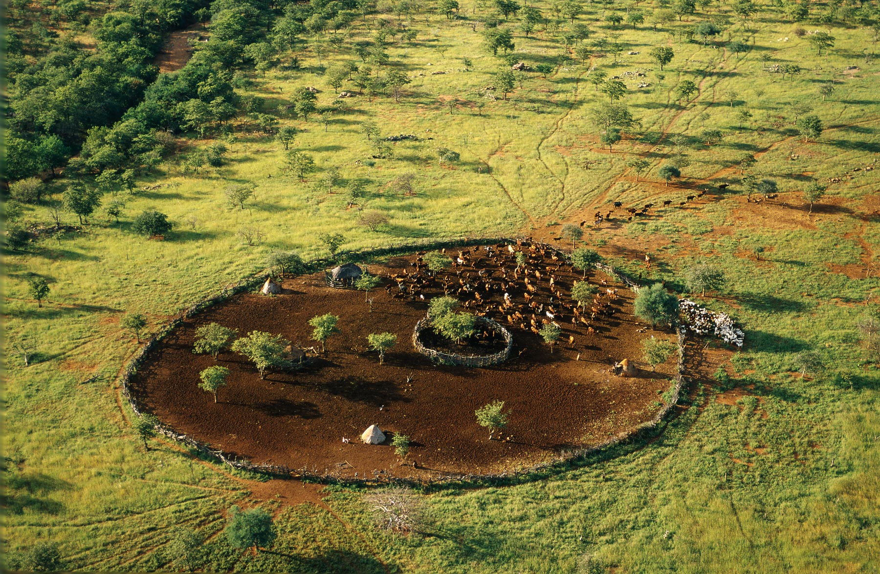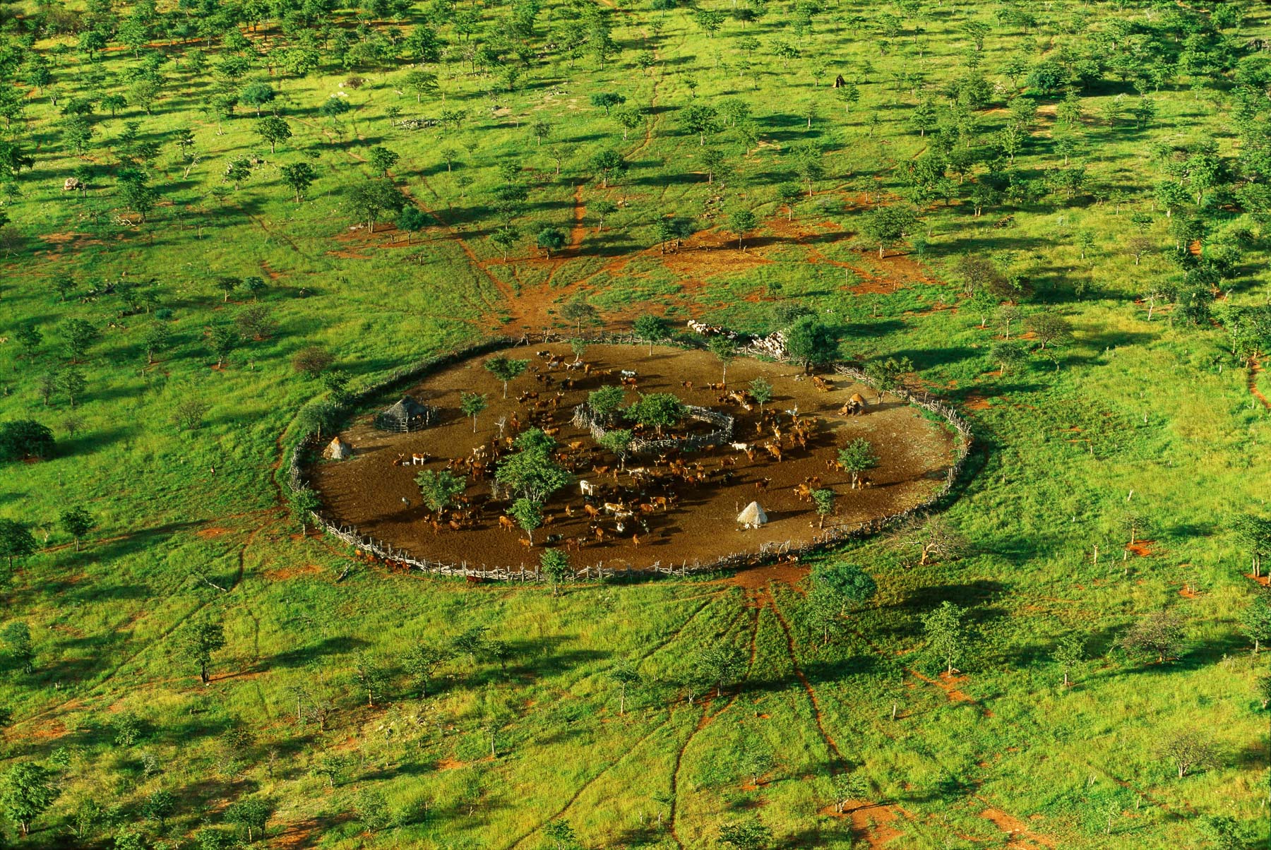General view of a Himba village enclosure, Kunene region, Namibia (18°15’ S, 13°00’ E).