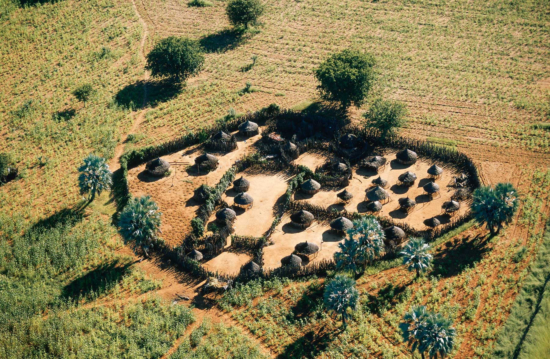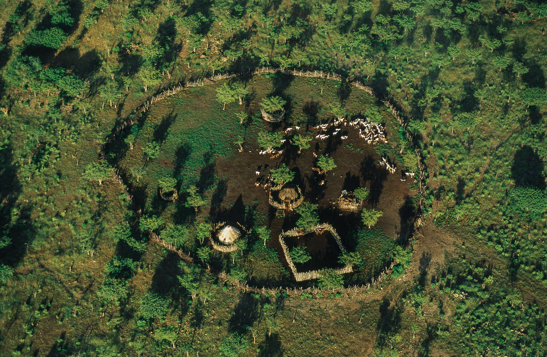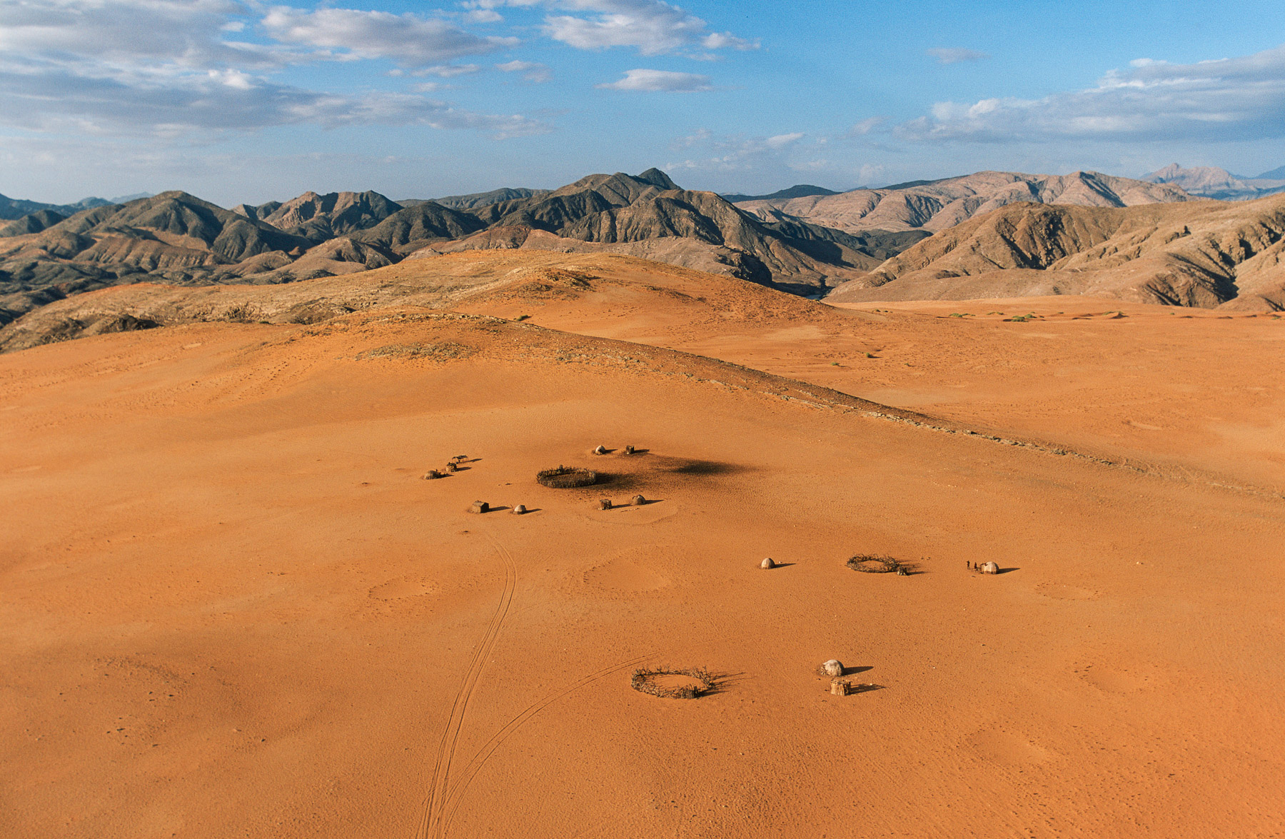 General view of a Himba village enclosure, Kunene region, Namibia (18°15’ S, 13°00’ E).