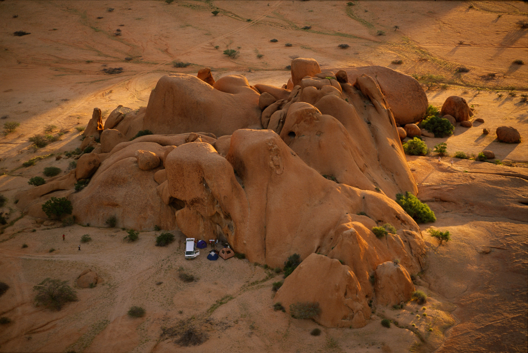 Tourists near the massif of Spitkoppe, Damaraland Région, Namibia (22°03 ' - 17°02 ' E).