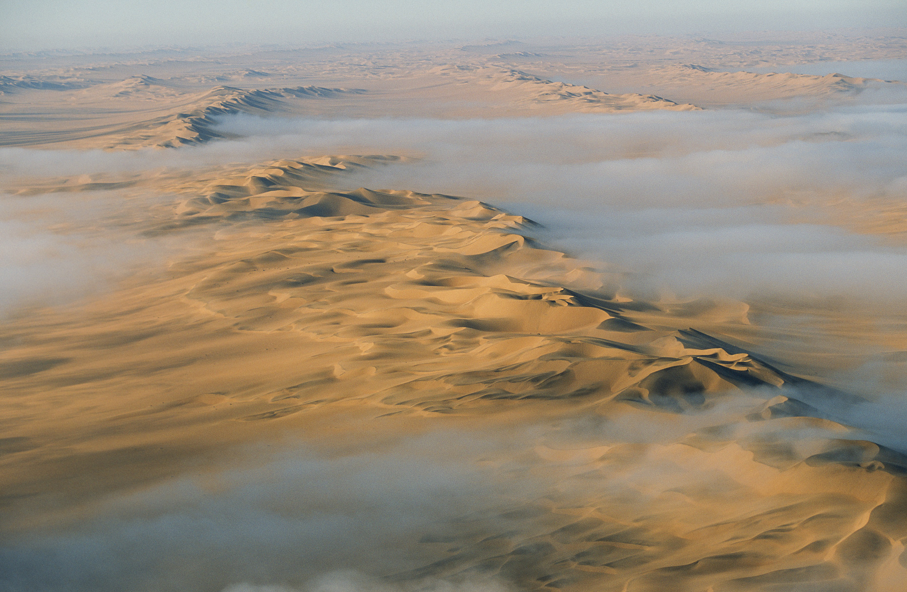 Fog over sand dunes in the Namib Desert, Swakopmund Region, Namibia