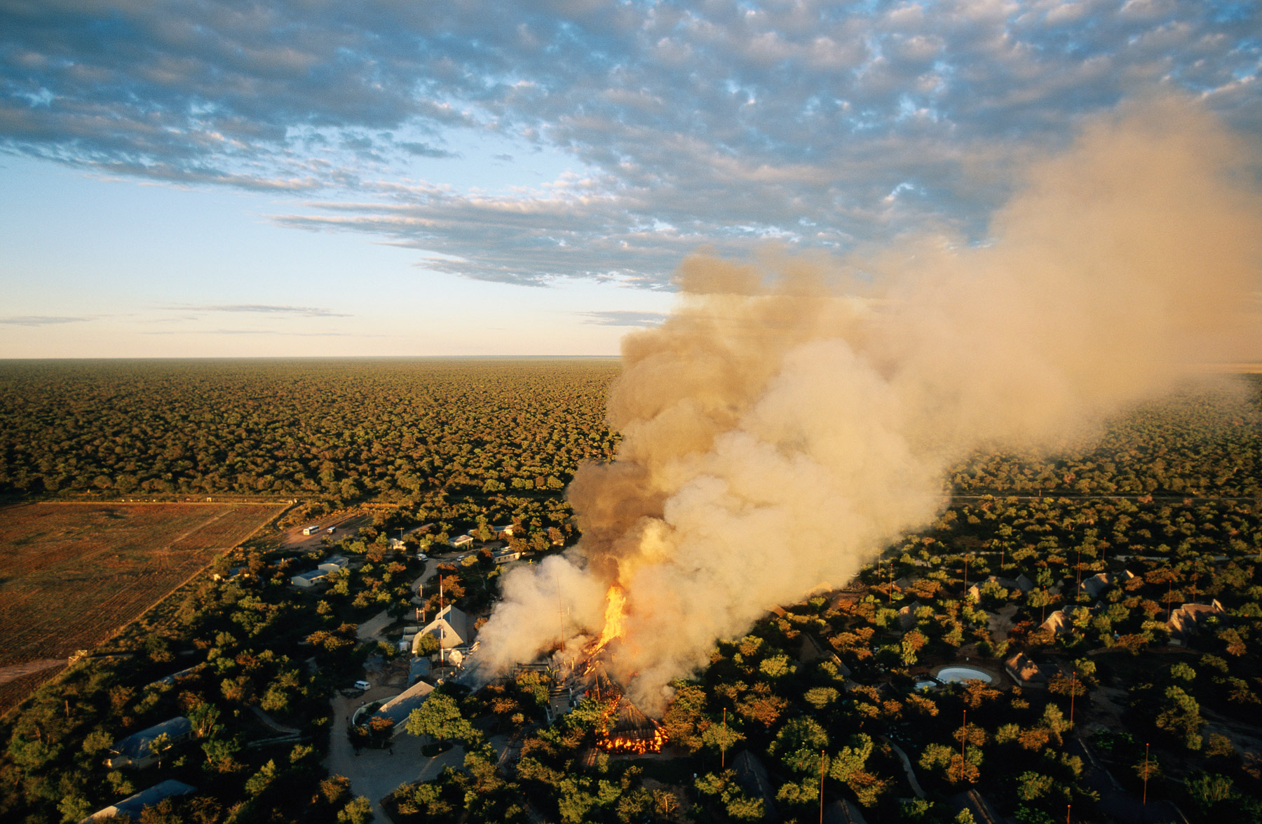 Near Outjo, Oshikoto Region, Etosha National Park : Mokuti Lodge on fire - Namibia