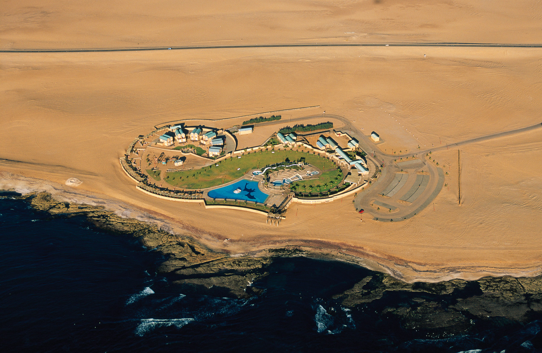 Hotel on Skeleton Coast, North of Walvis Bay, Dolphin Park Resort, Erongo Region, Namibia