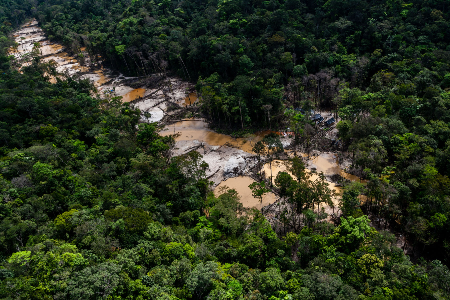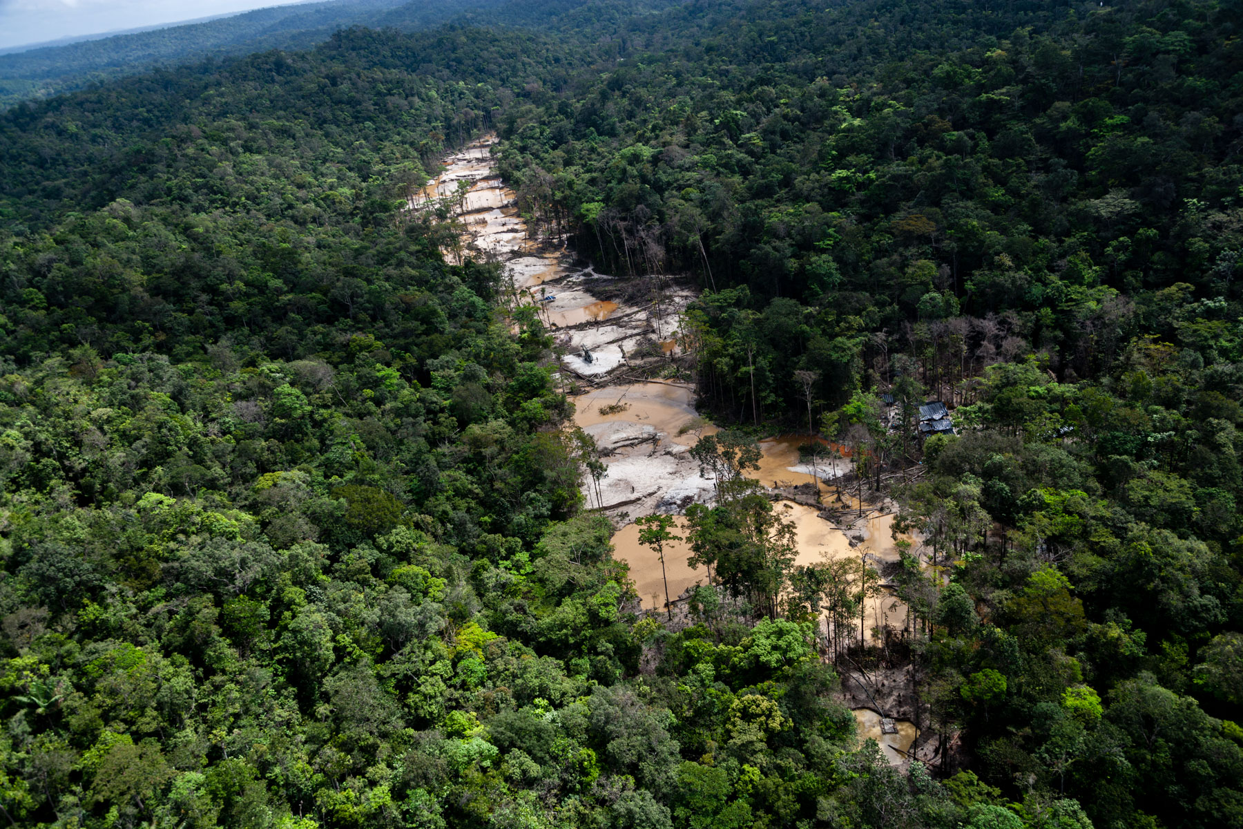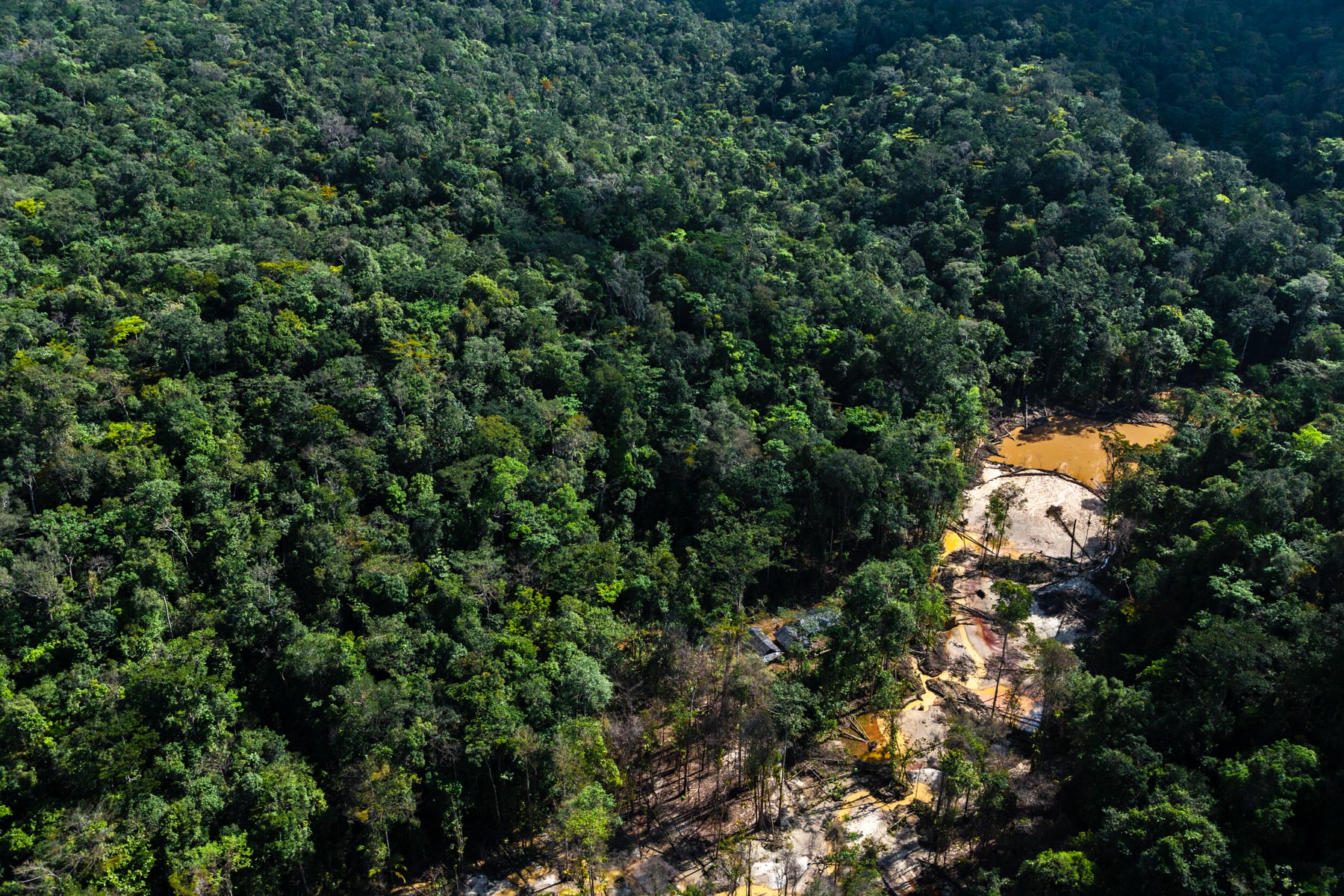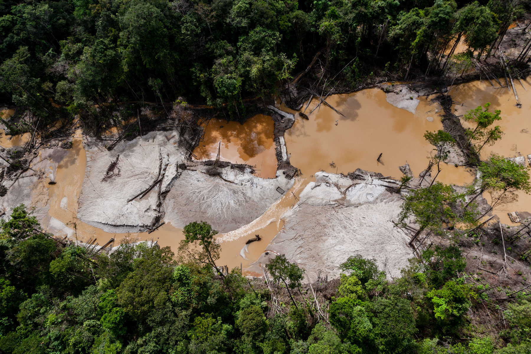 "Chantier clandestin d’orpaillage alluvionnaire, situé entre les criques Galloni et Sparouine, sud de Saint Laurent du Maroni (5°11'29.63""N - 54°12'49.07""O)" Guyane, France