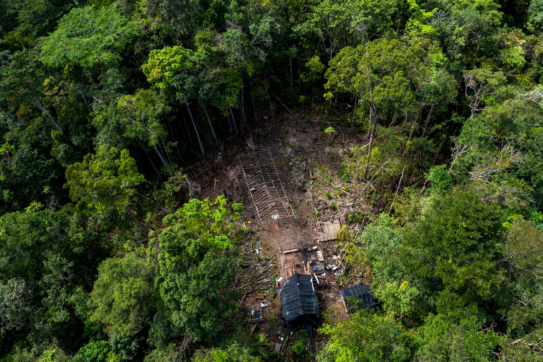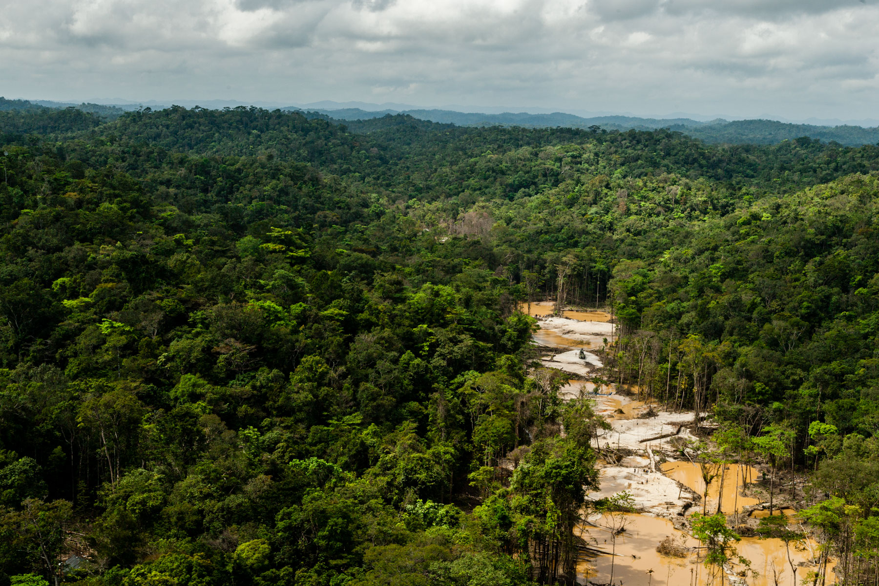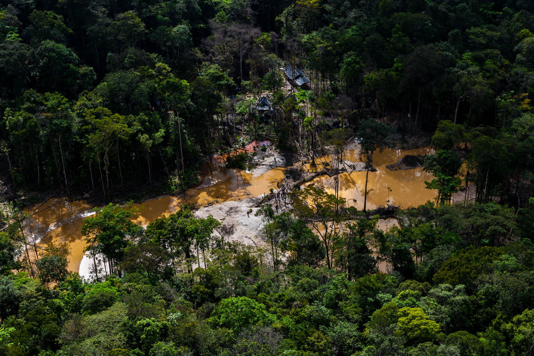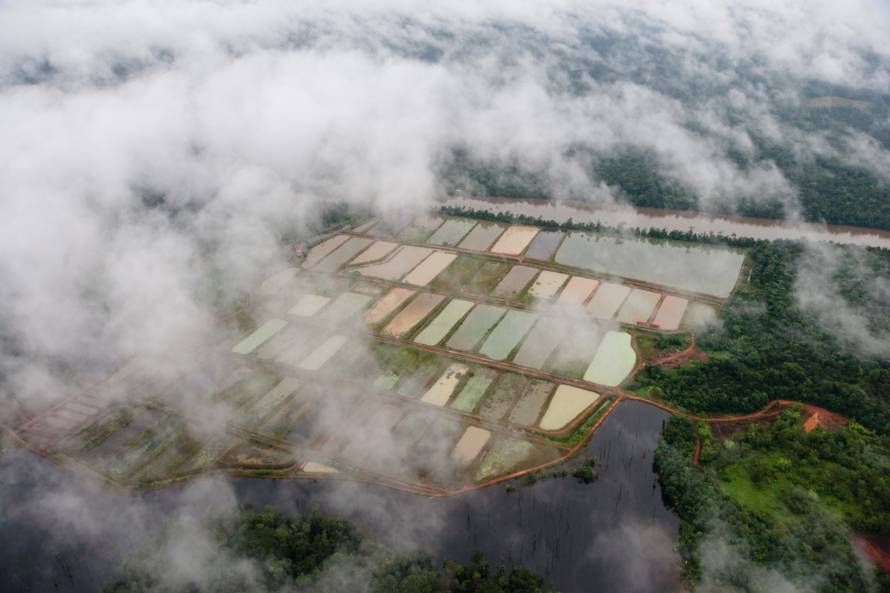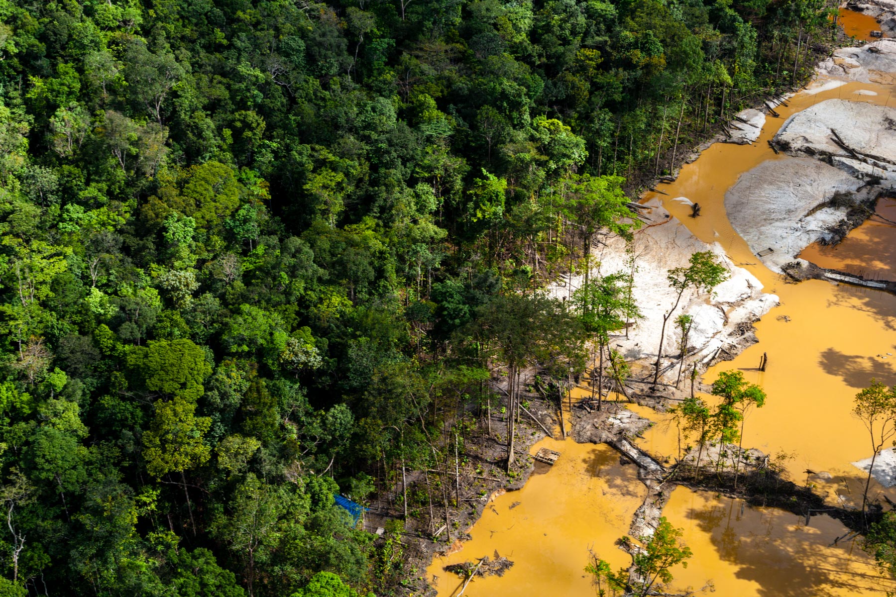 "Chantier clandestin d’orpaillage alluvionnaire, situé entre les criques Galloni et Sparouine, sud de Saint Laurent du Maroni (5°11'29.63""N - 54°12'49.07""O)" Guyane, France