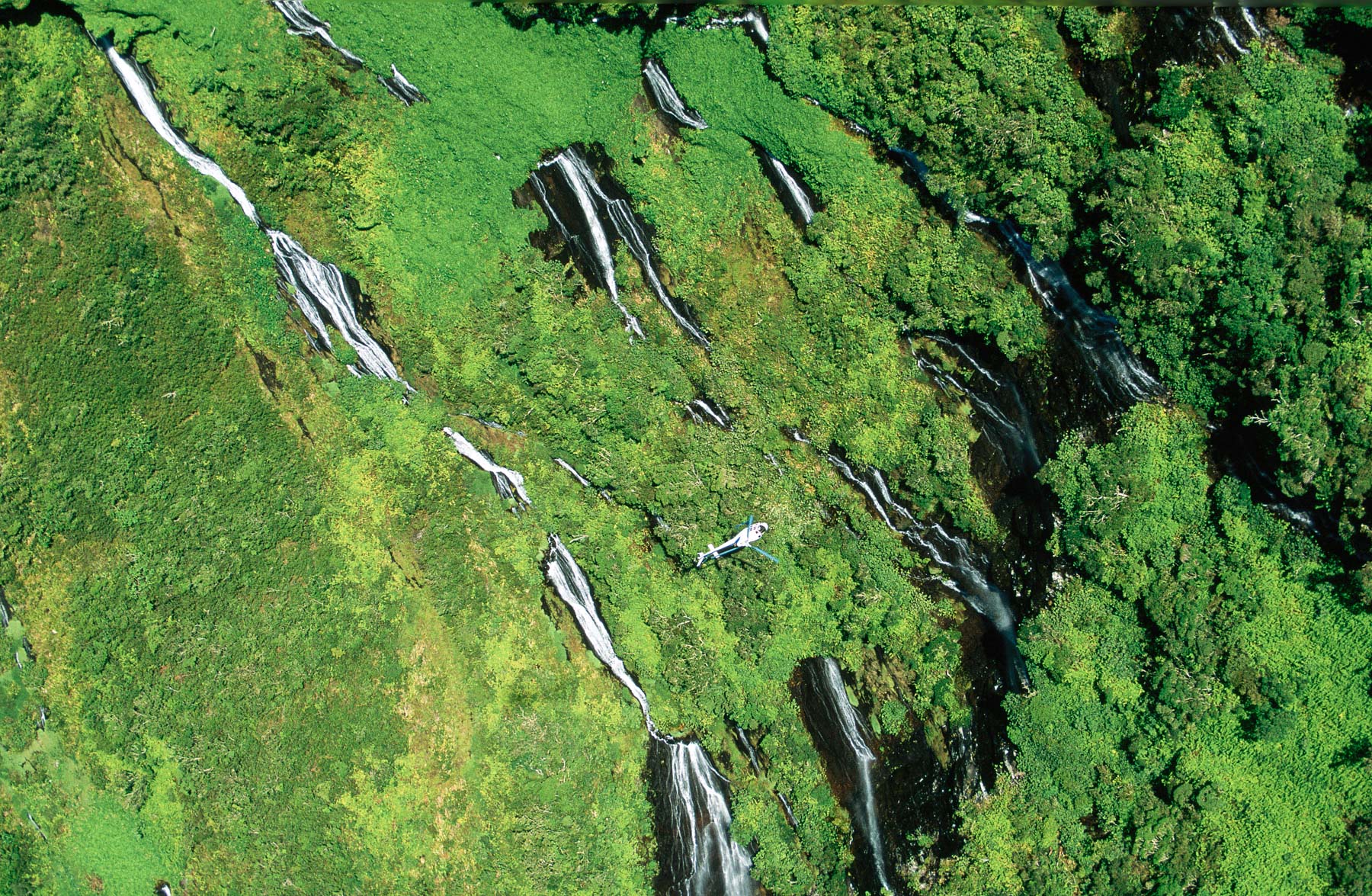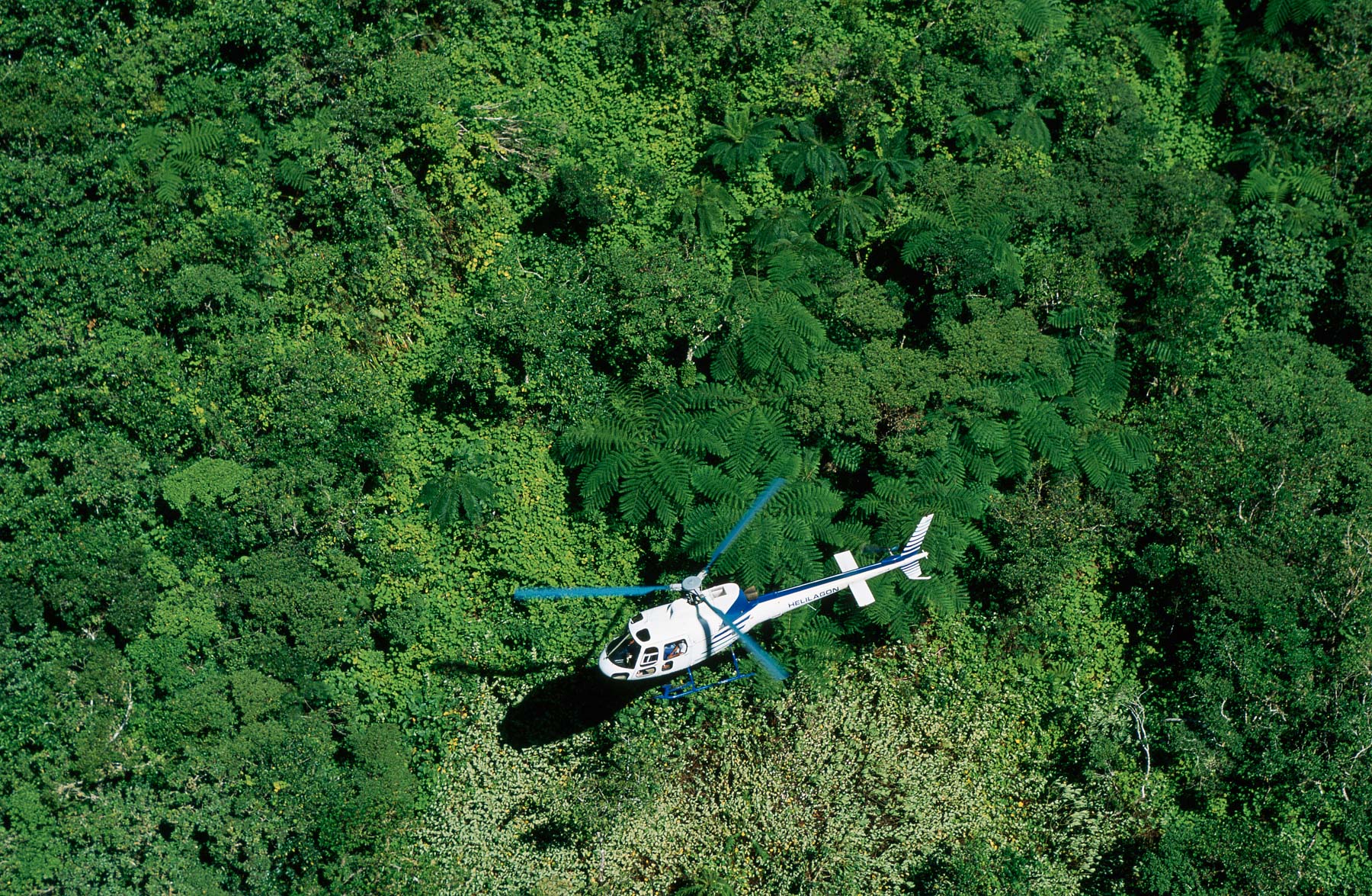 Hélicoptère et forêt à la Réunion, Ile de la Réunion, France