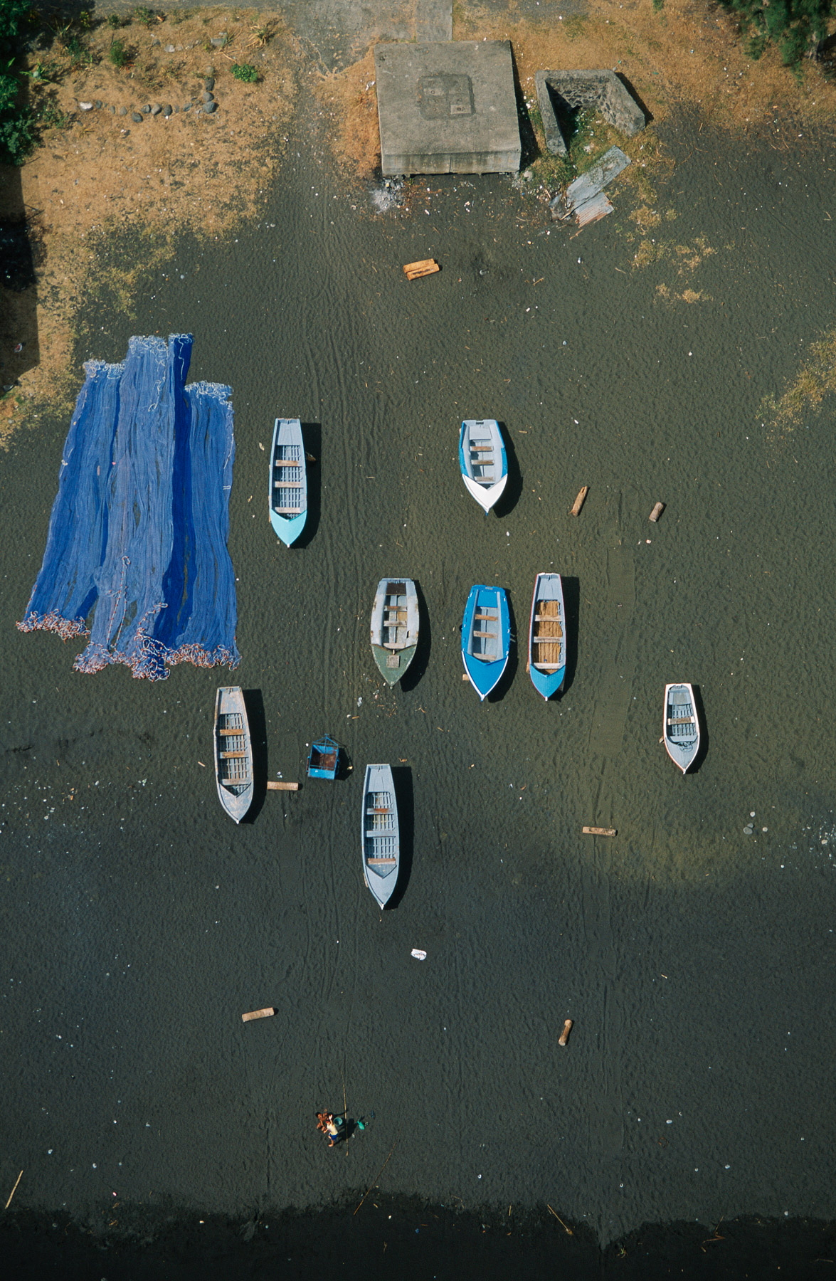 Ambiance pêche (bateaux et filet) à St Paul, Ile de la Réunion, France