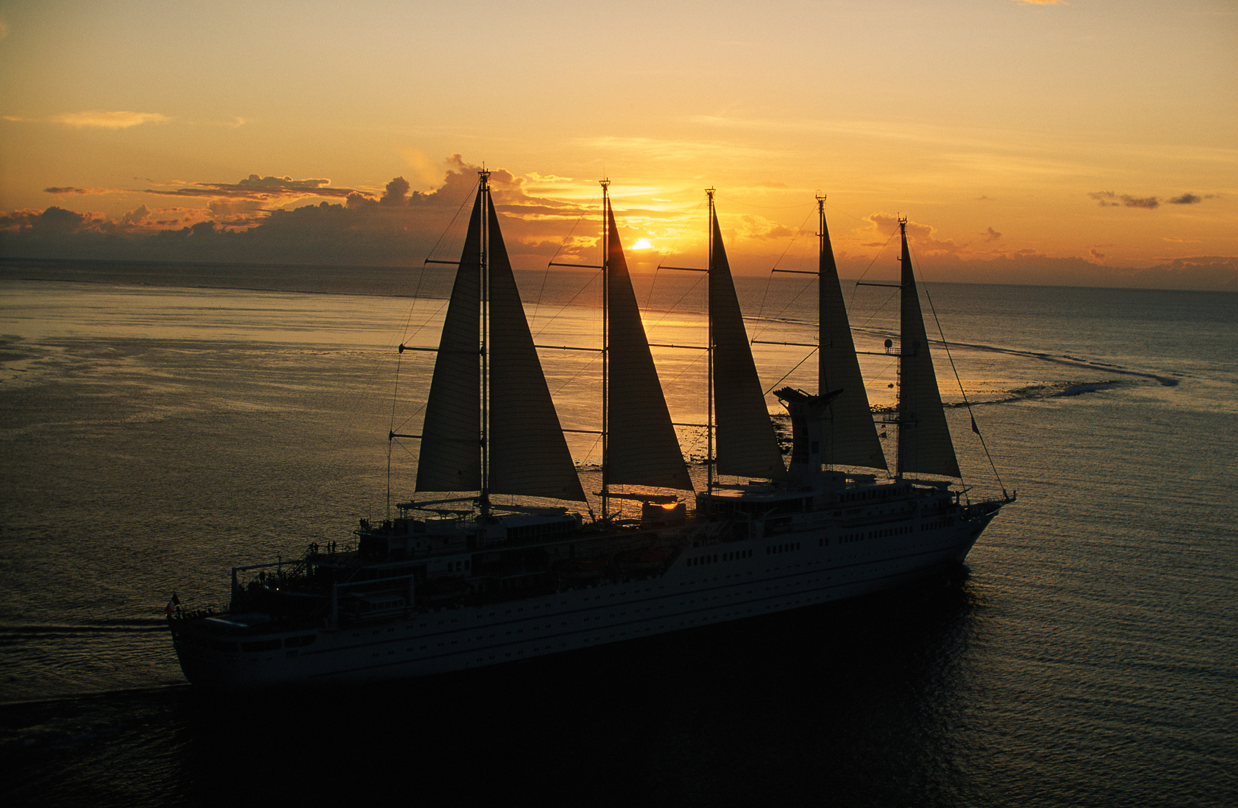 Ambiance - Bateau Club Med II au soleil couchant, Polynésie Française