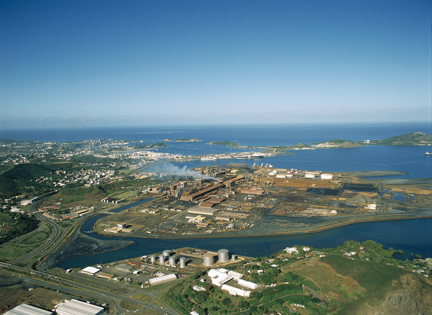 Nouméa - usine de nickel et la ville en fond, Nouvelle Calédonie