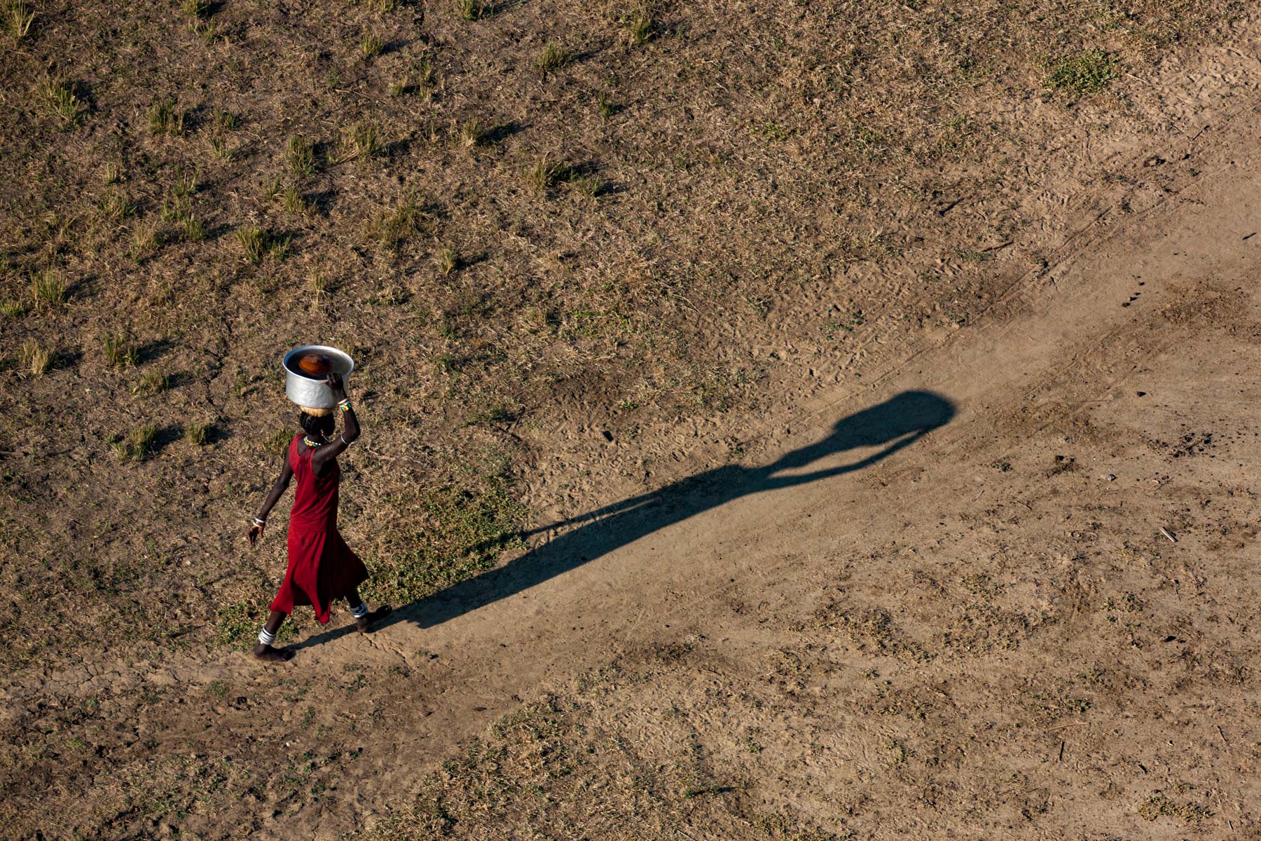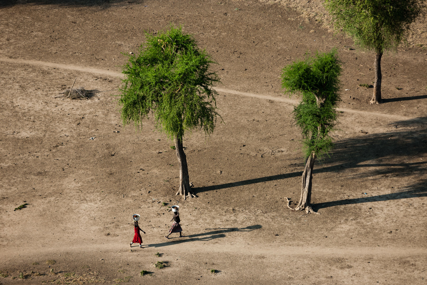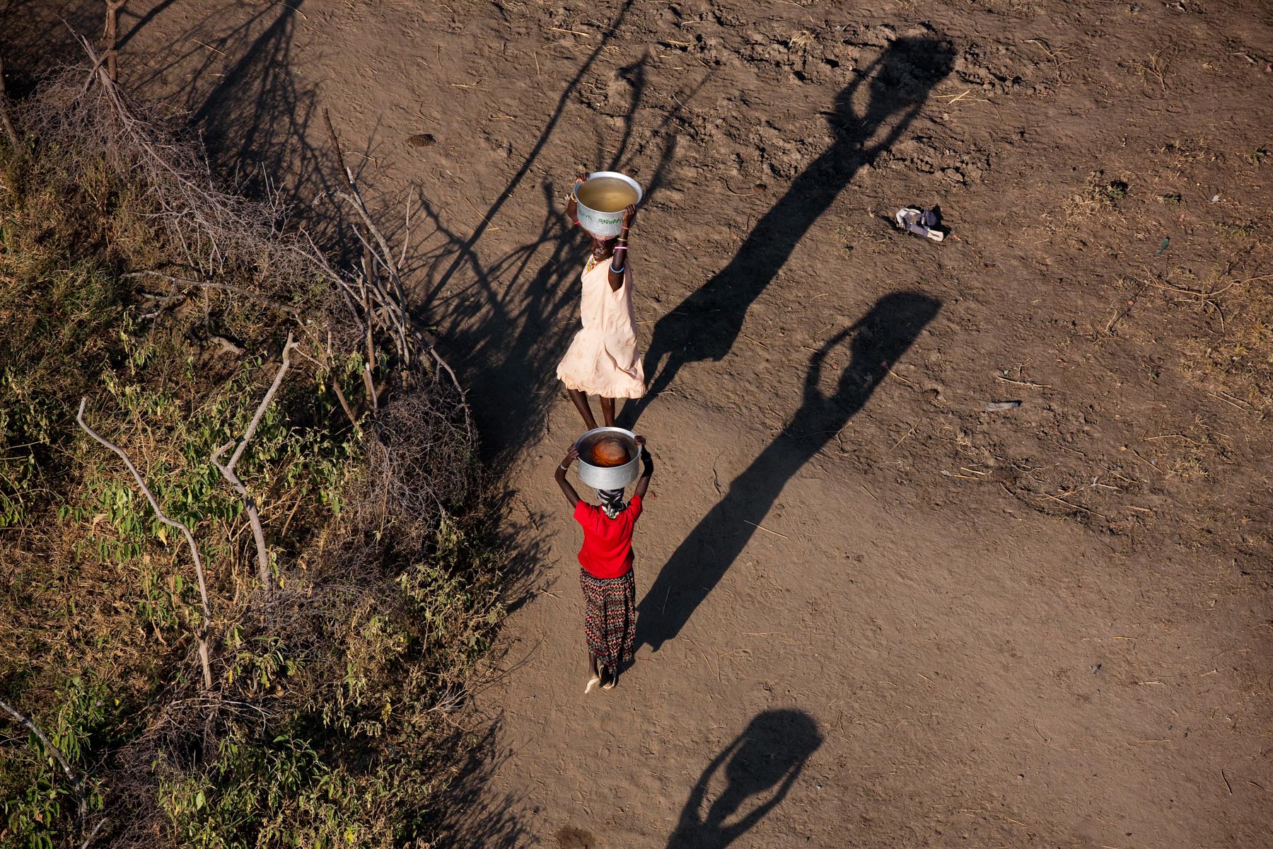 Femmes portant de l'eau dans un village près de Lafon (nord de Torit), état de Équatoria-Oriental, Soudan du Sud ( 5° 5'43.20"N - 32°28'51.25"E)