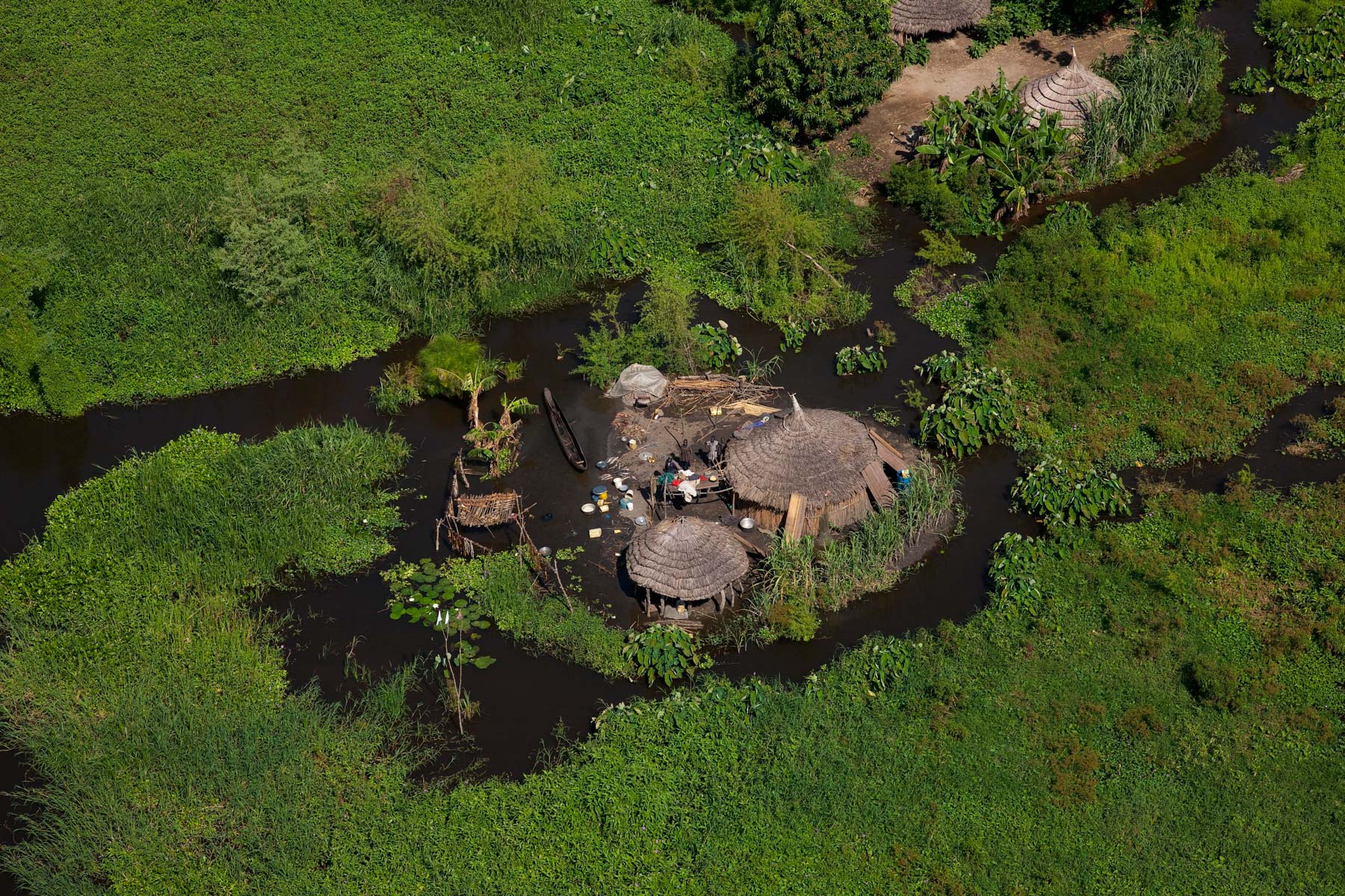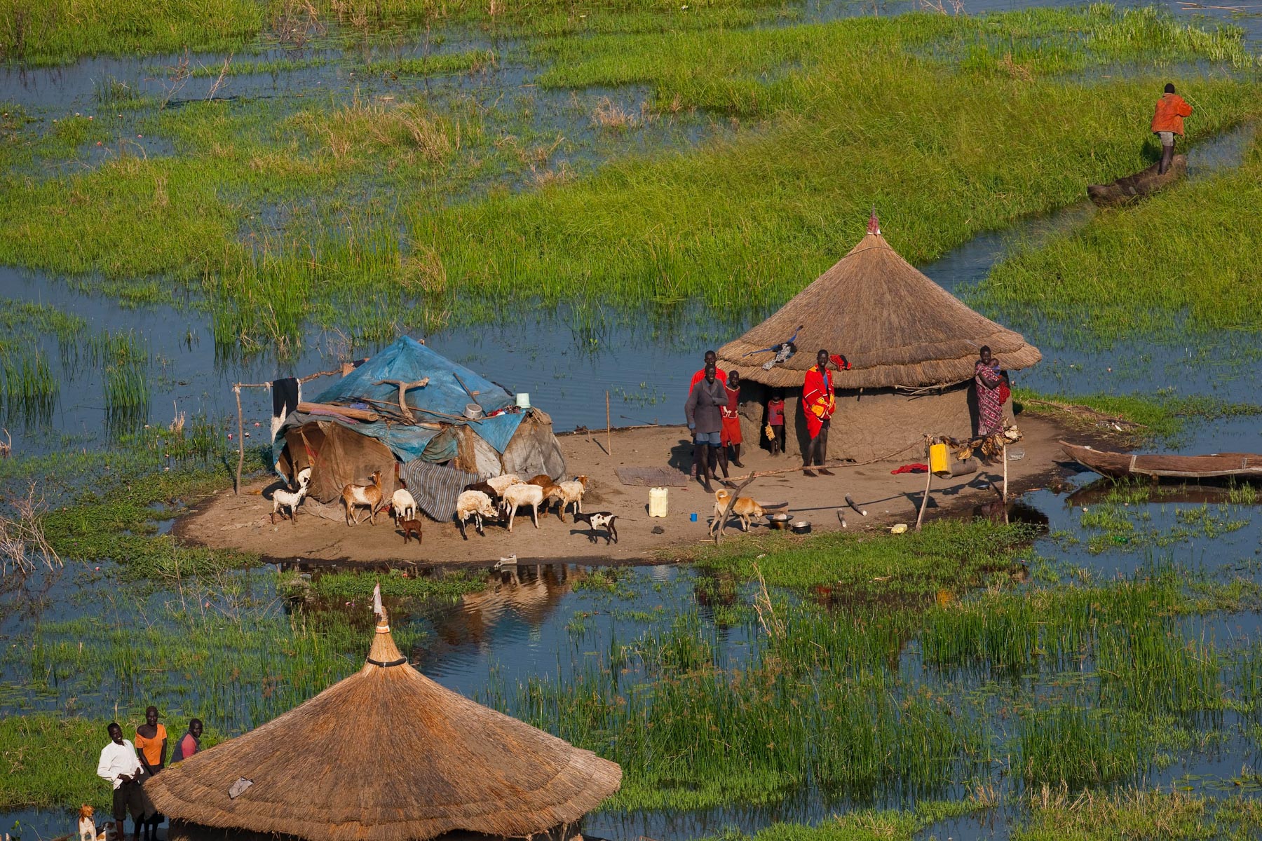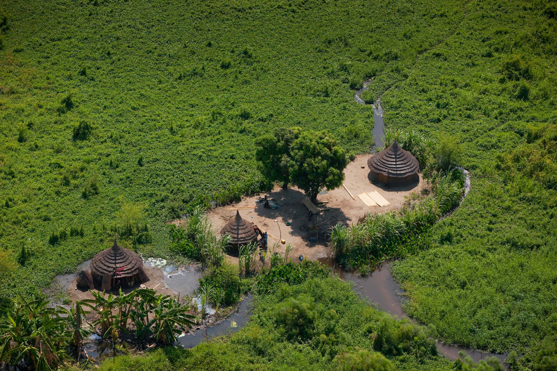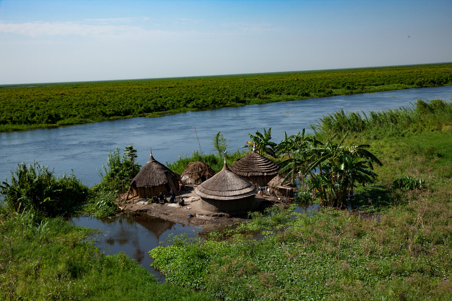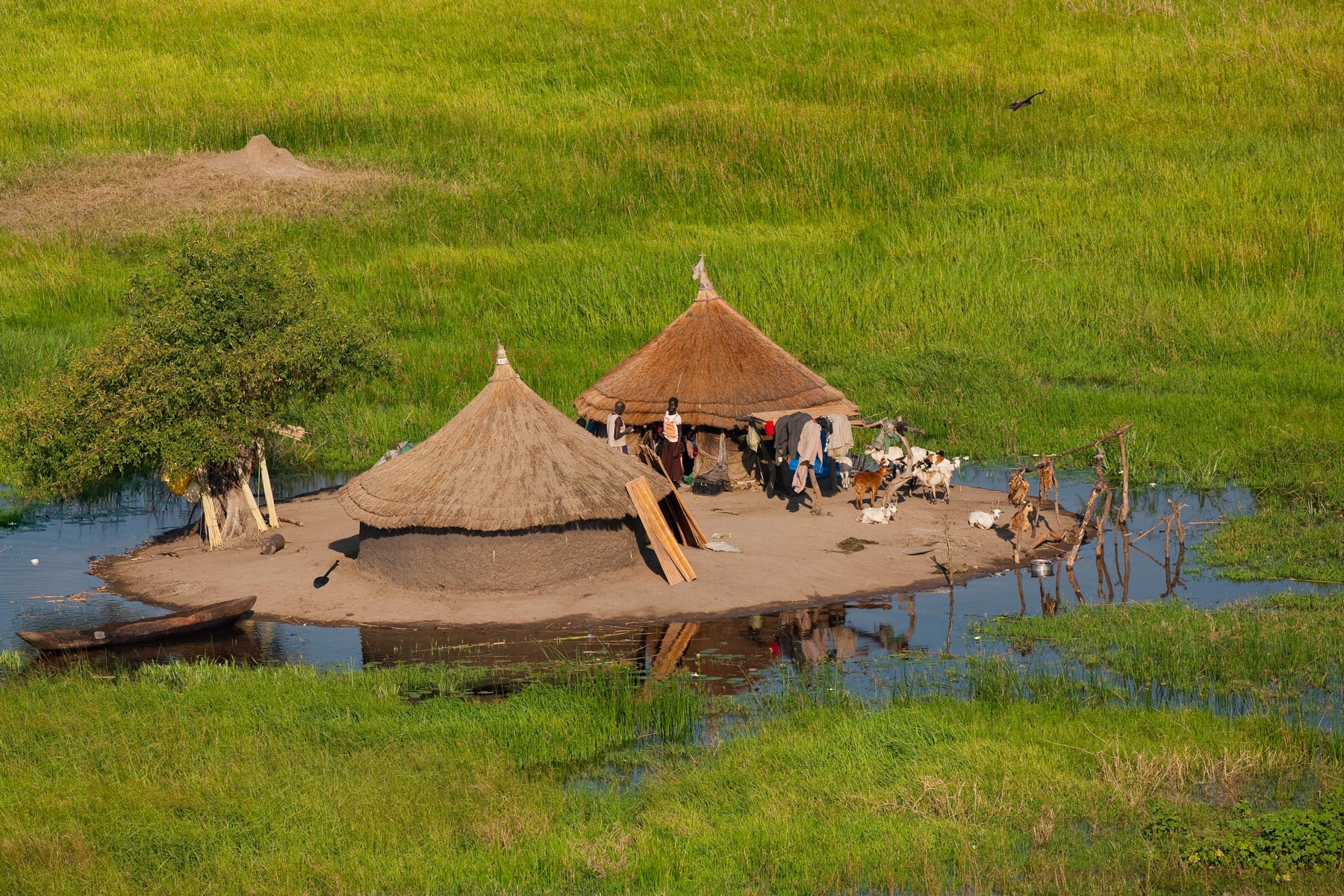 Village in the White Nile swamps near Bor, Jonglei, South Sudan (6°22’ N – 31°32’ E).