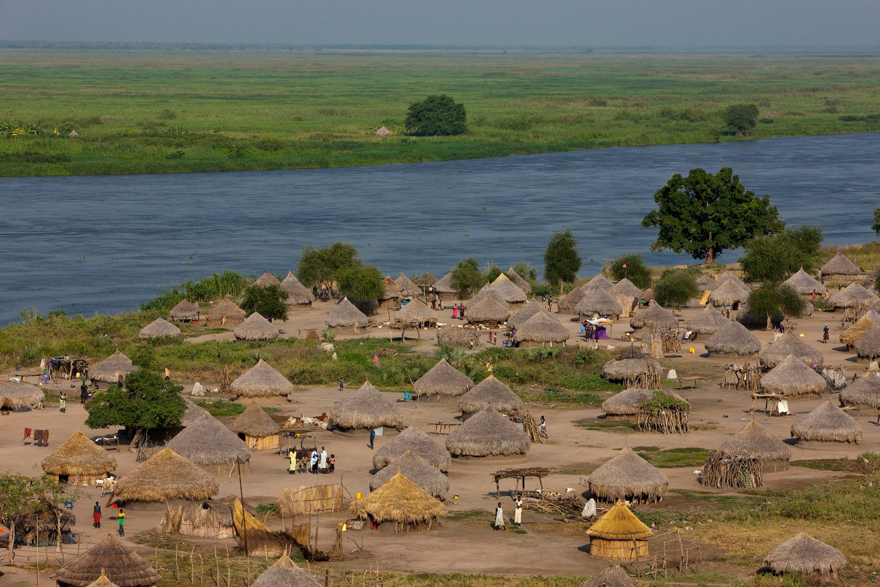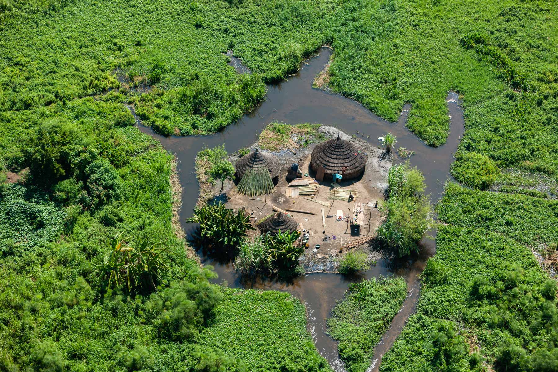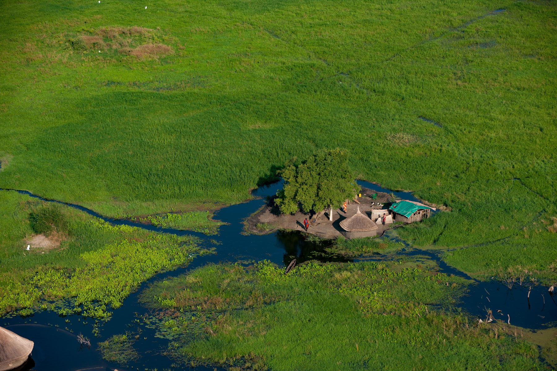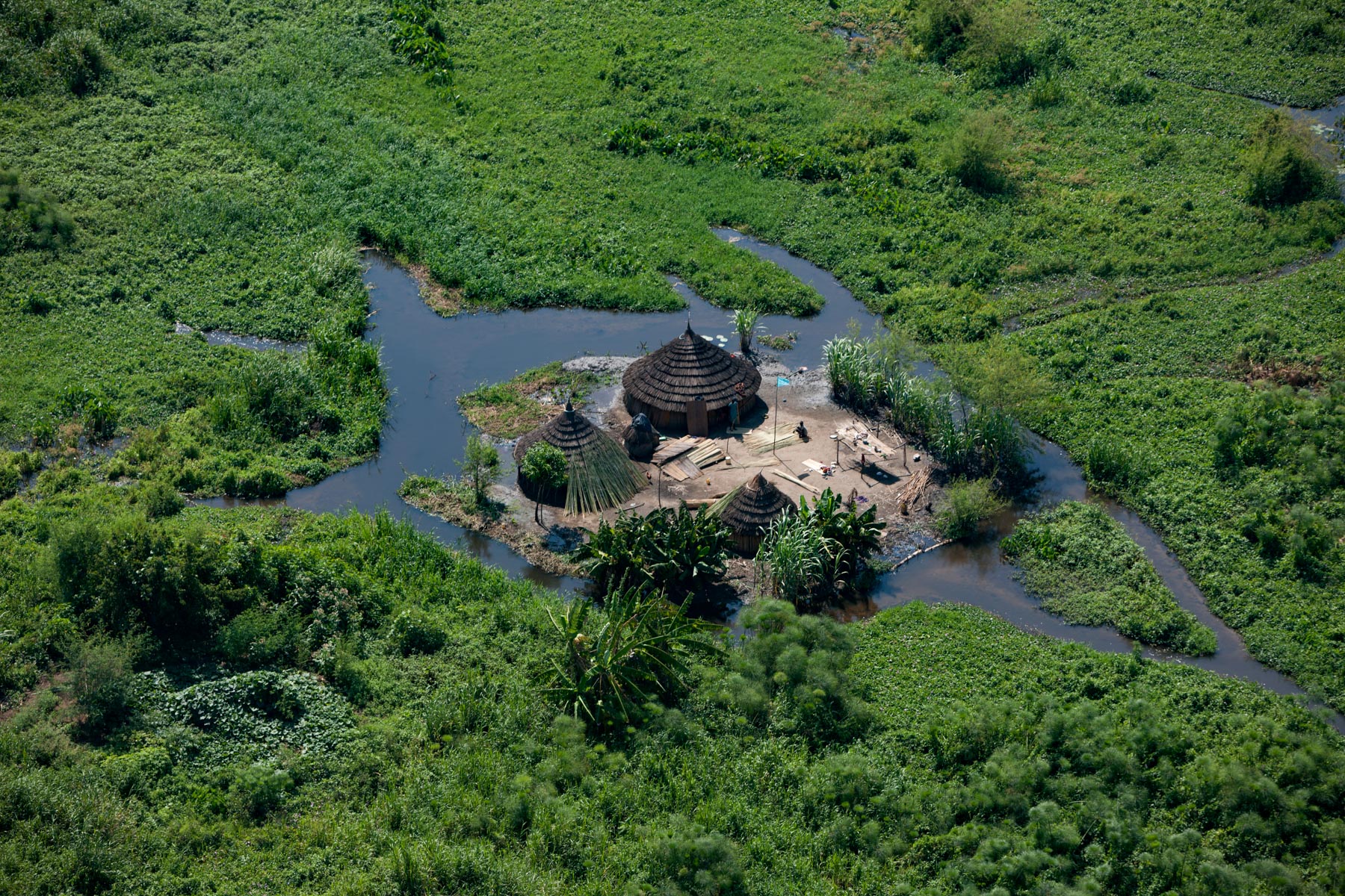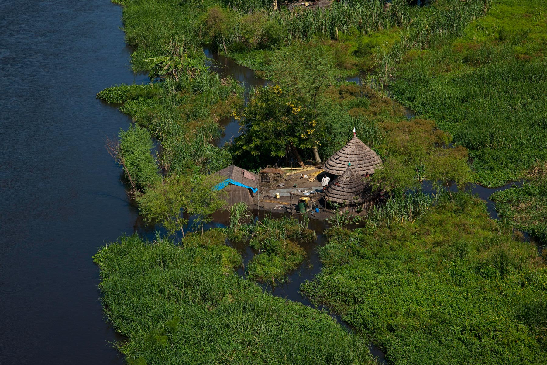 Village in the White Nile swamps near Bor, Jonglei, South Sudan (6°22’ N – 31°32’ E).