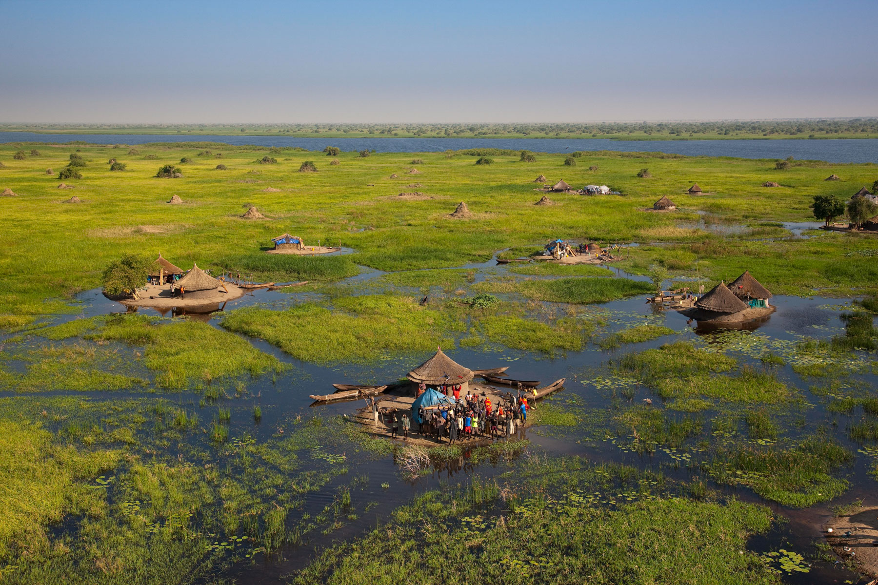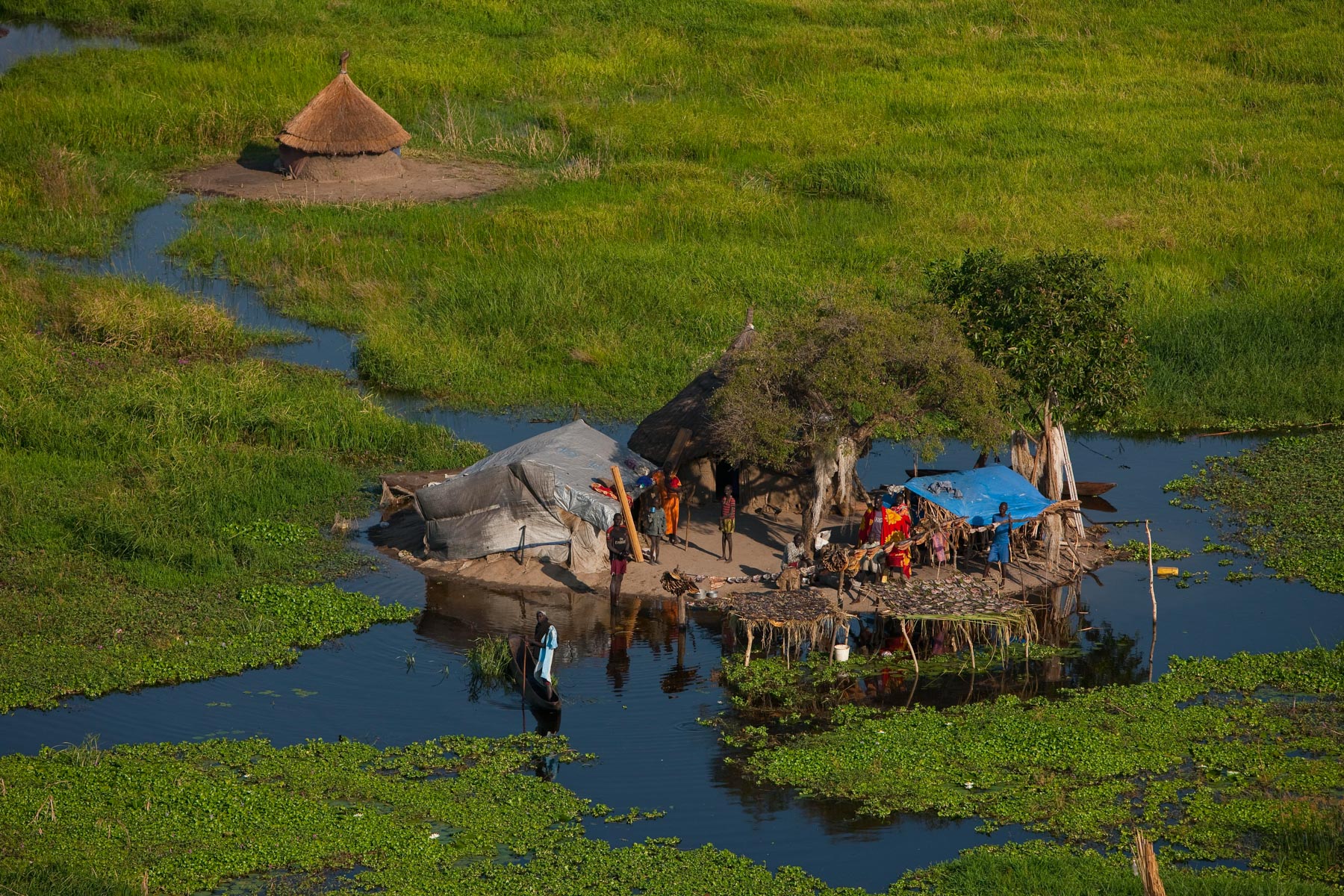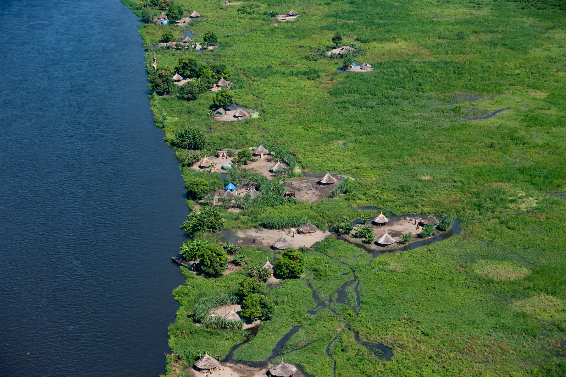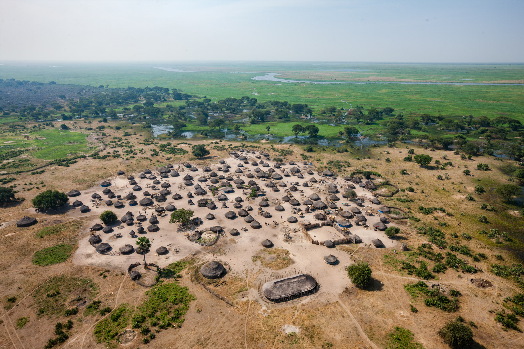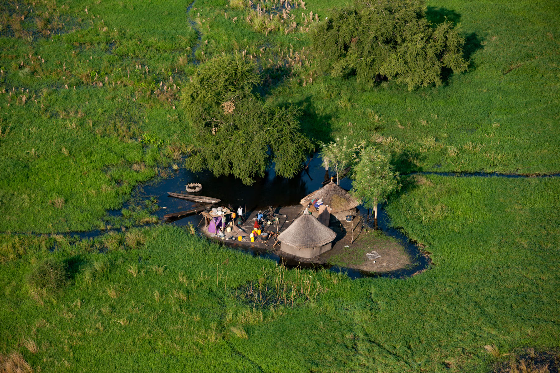 Village in the White Nile swamps near Bor, Jonglei, South Sudan (6°22’ N – 31°32’ E).