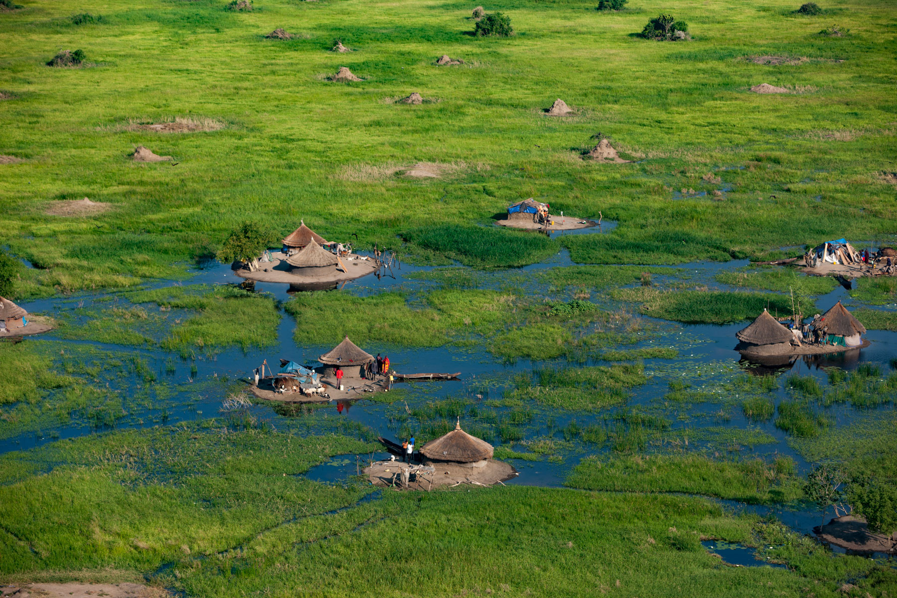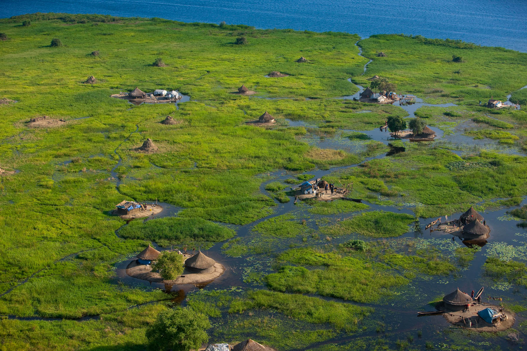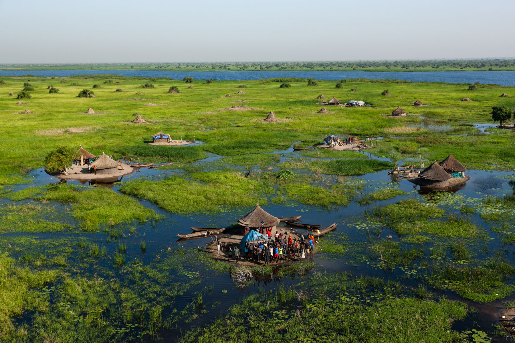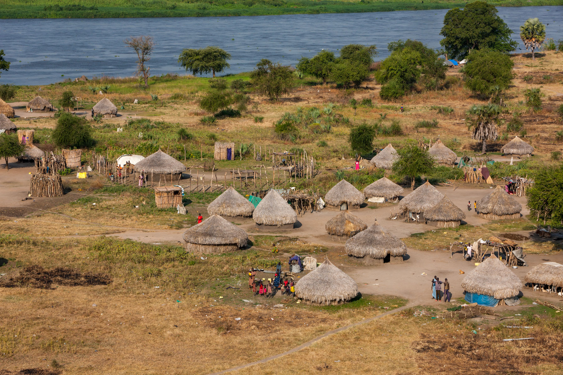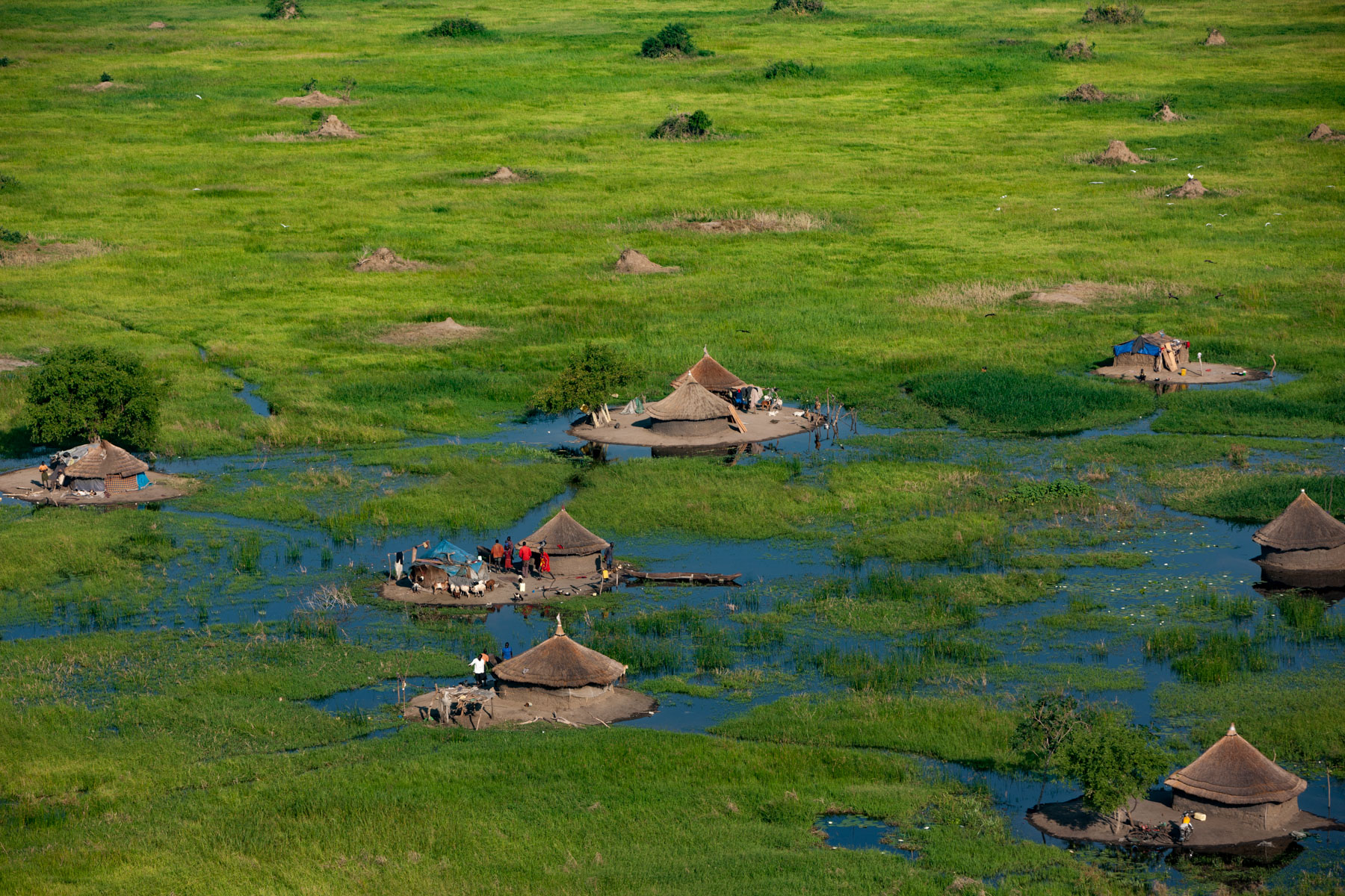 Village in the White Nile swamps near Bor, Jonglei, South Sudan (6°22’ N – 31°32’ E).
