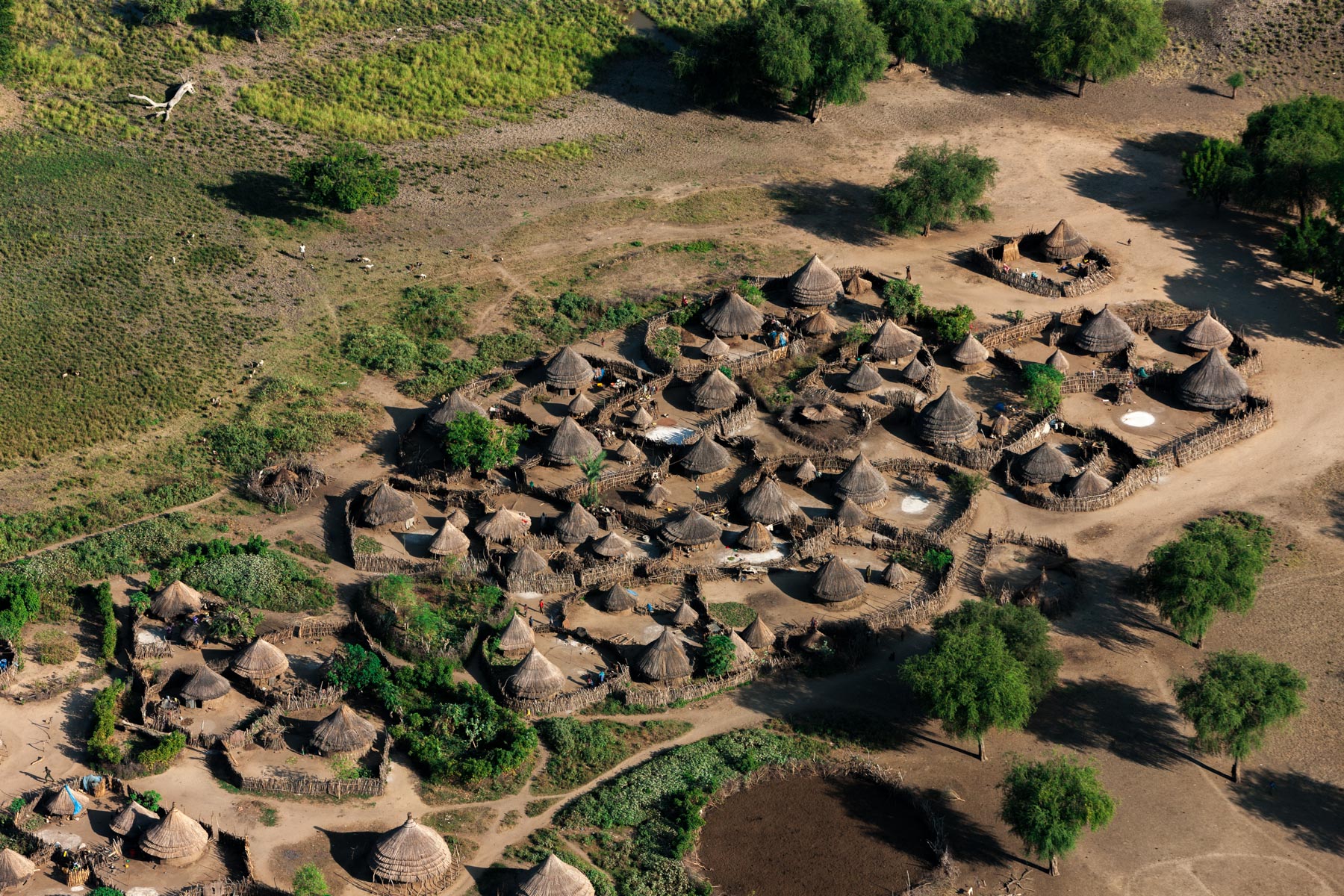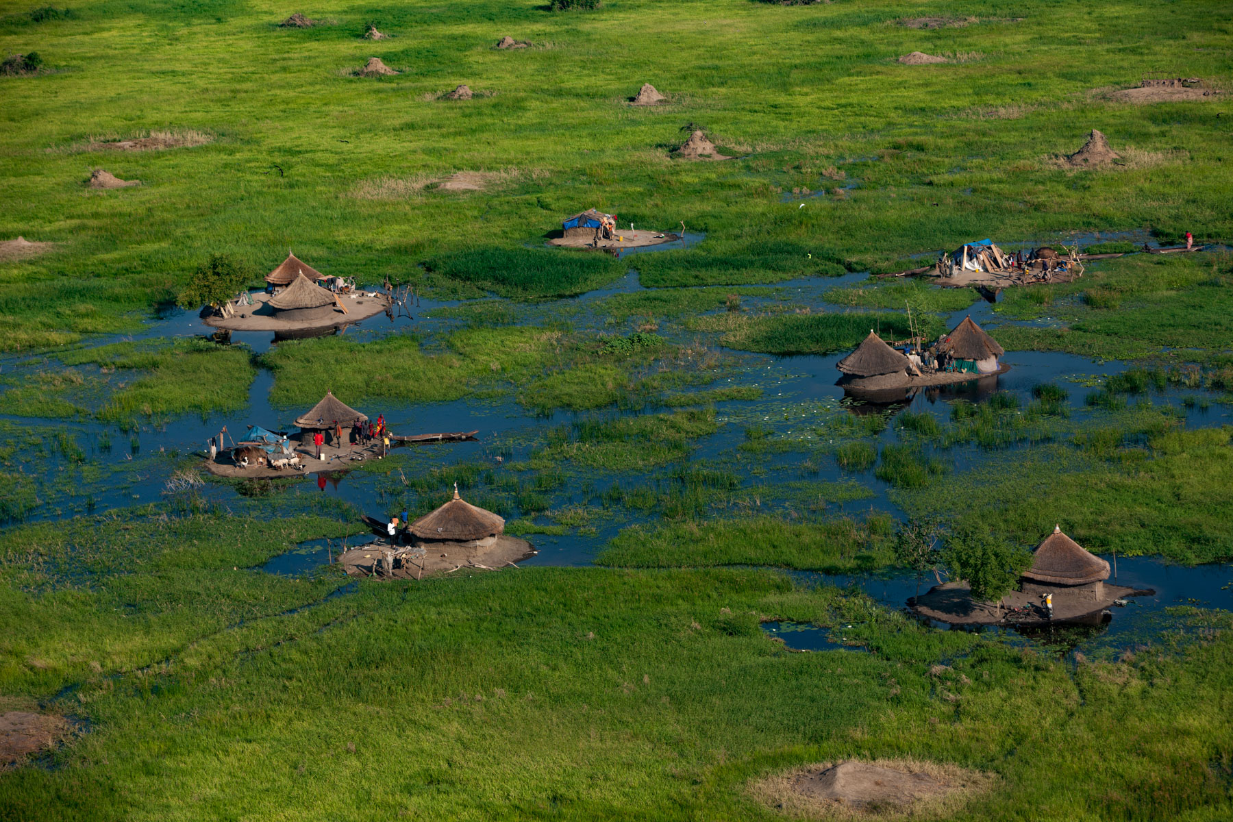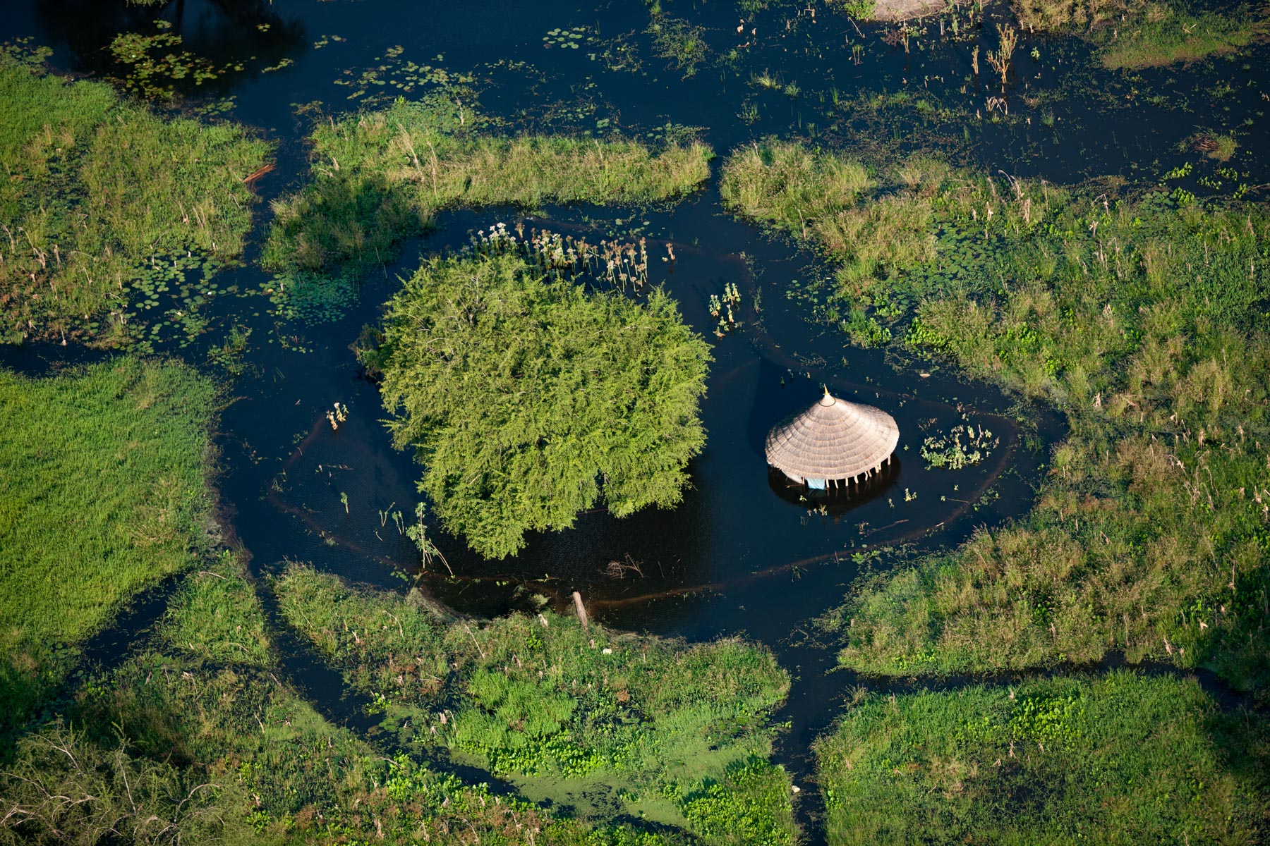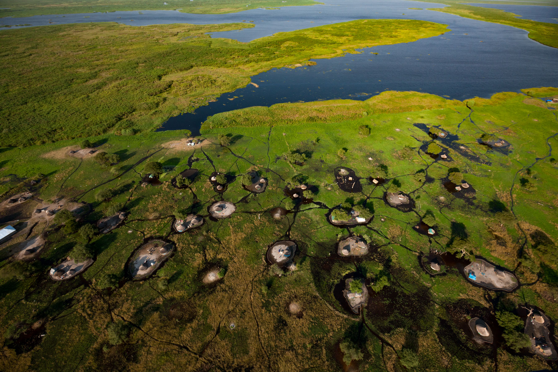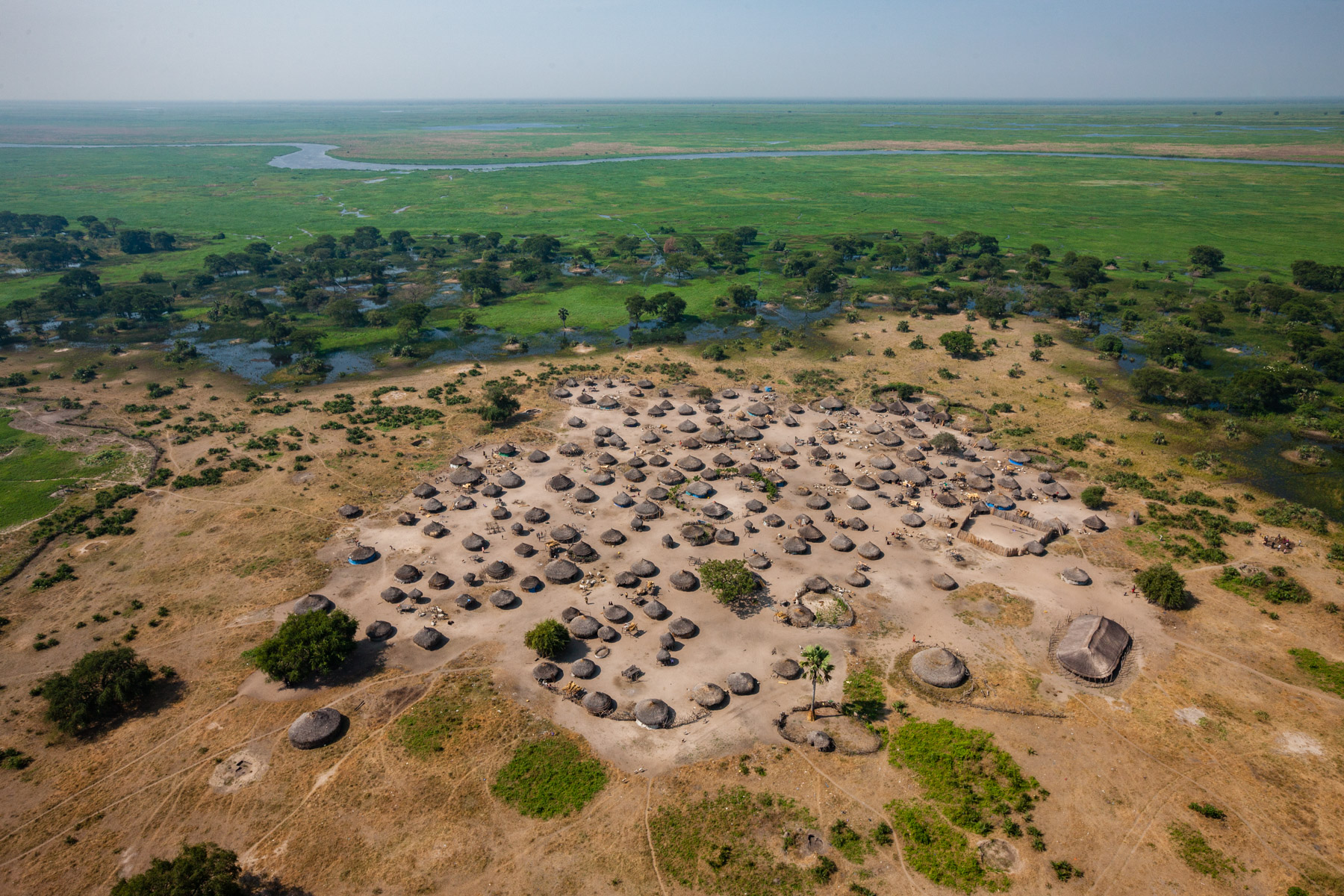 Village in the White Nile swamps near Bor, Jonglei, South Sudan (6°22’ N – 31°32’ E).