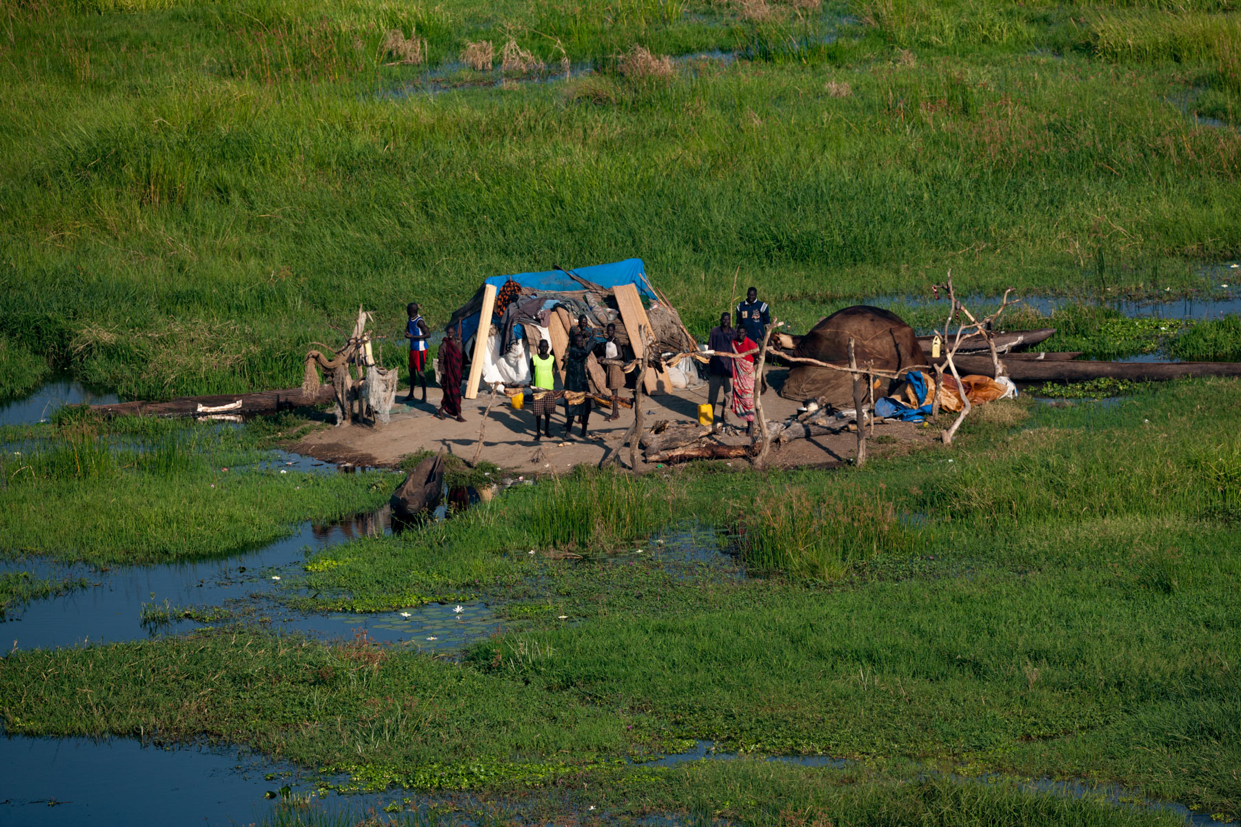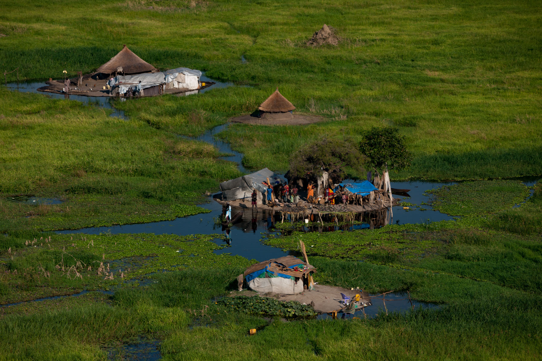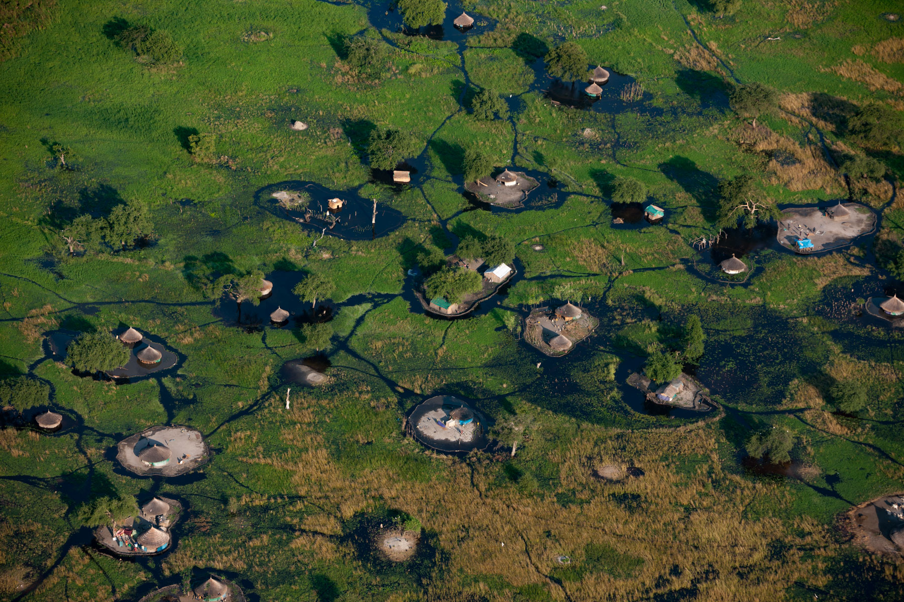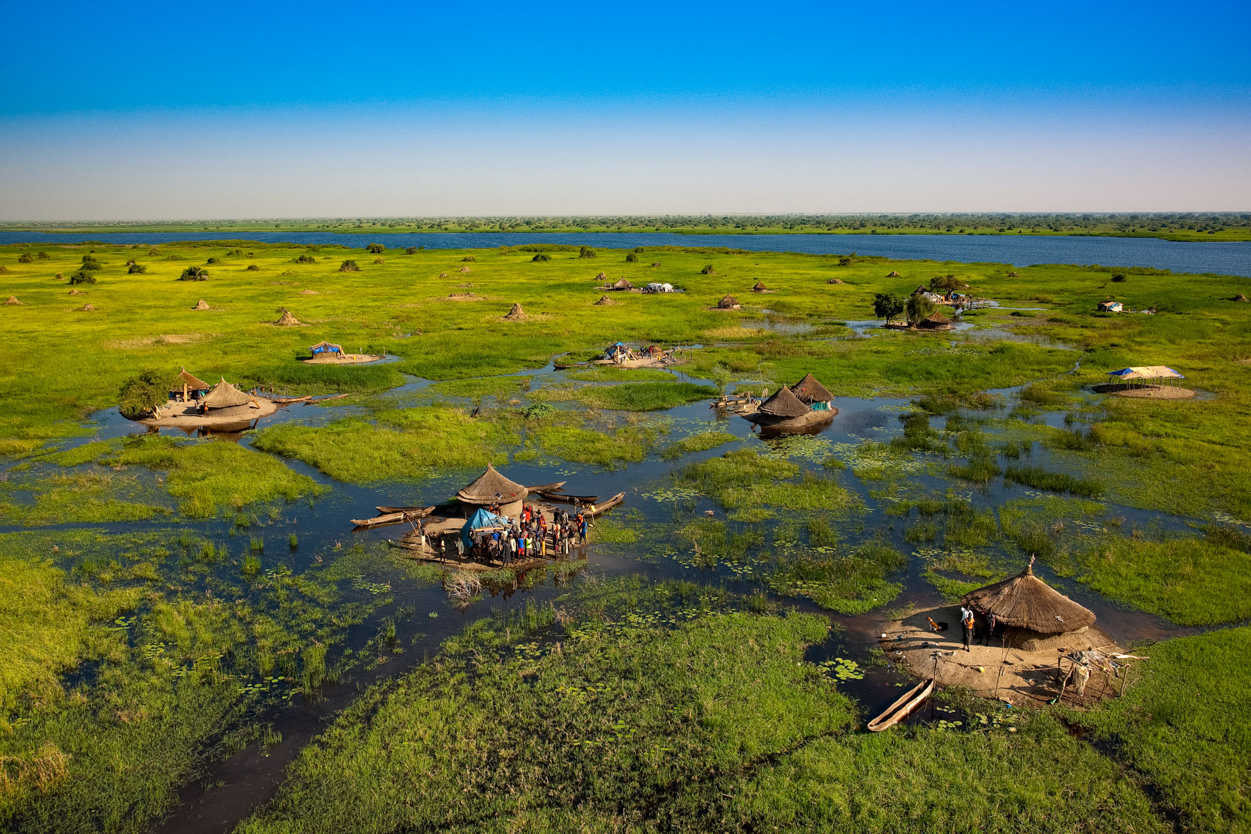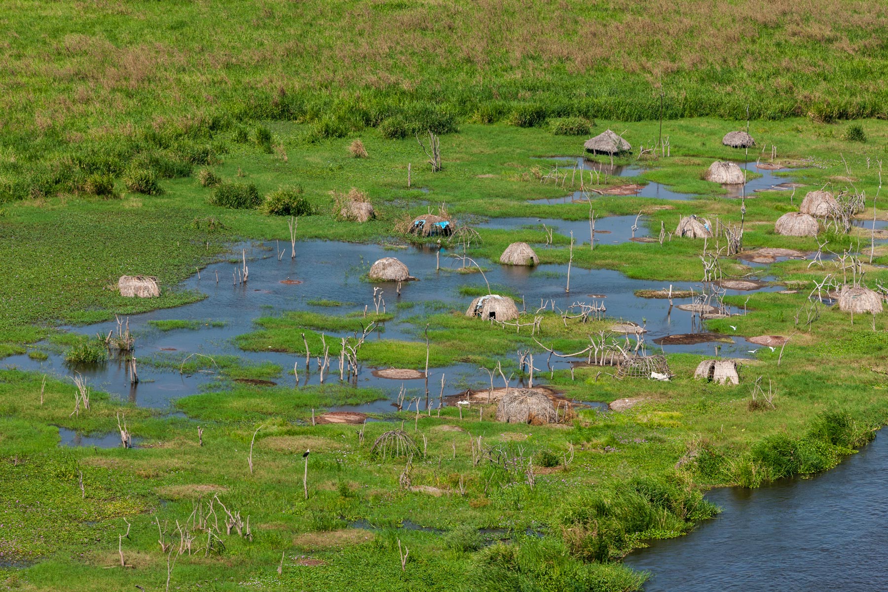 Village in the White Nile swamps near Bor, Jonglei, South Sudan (6°22’ N – 31°32’ E).