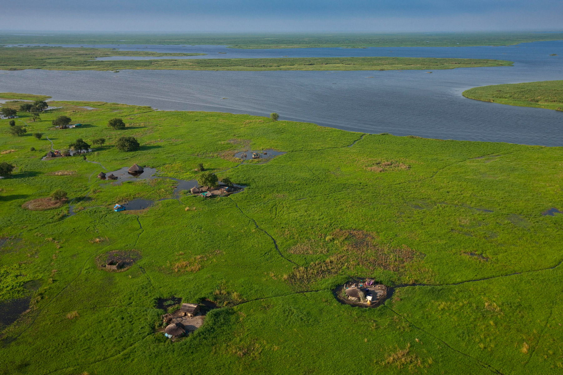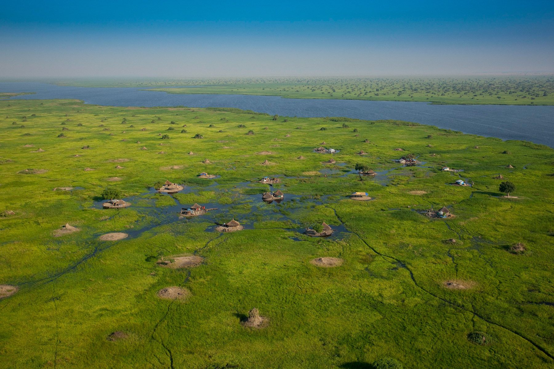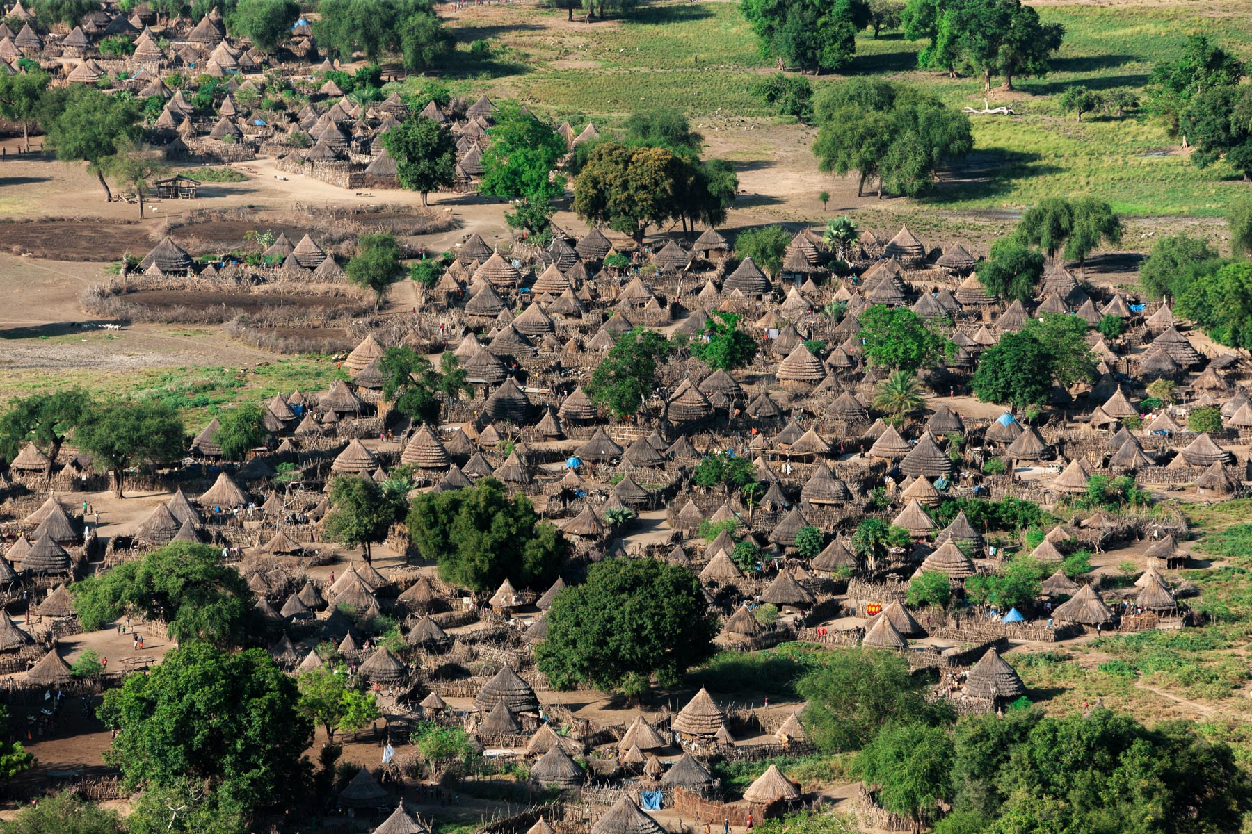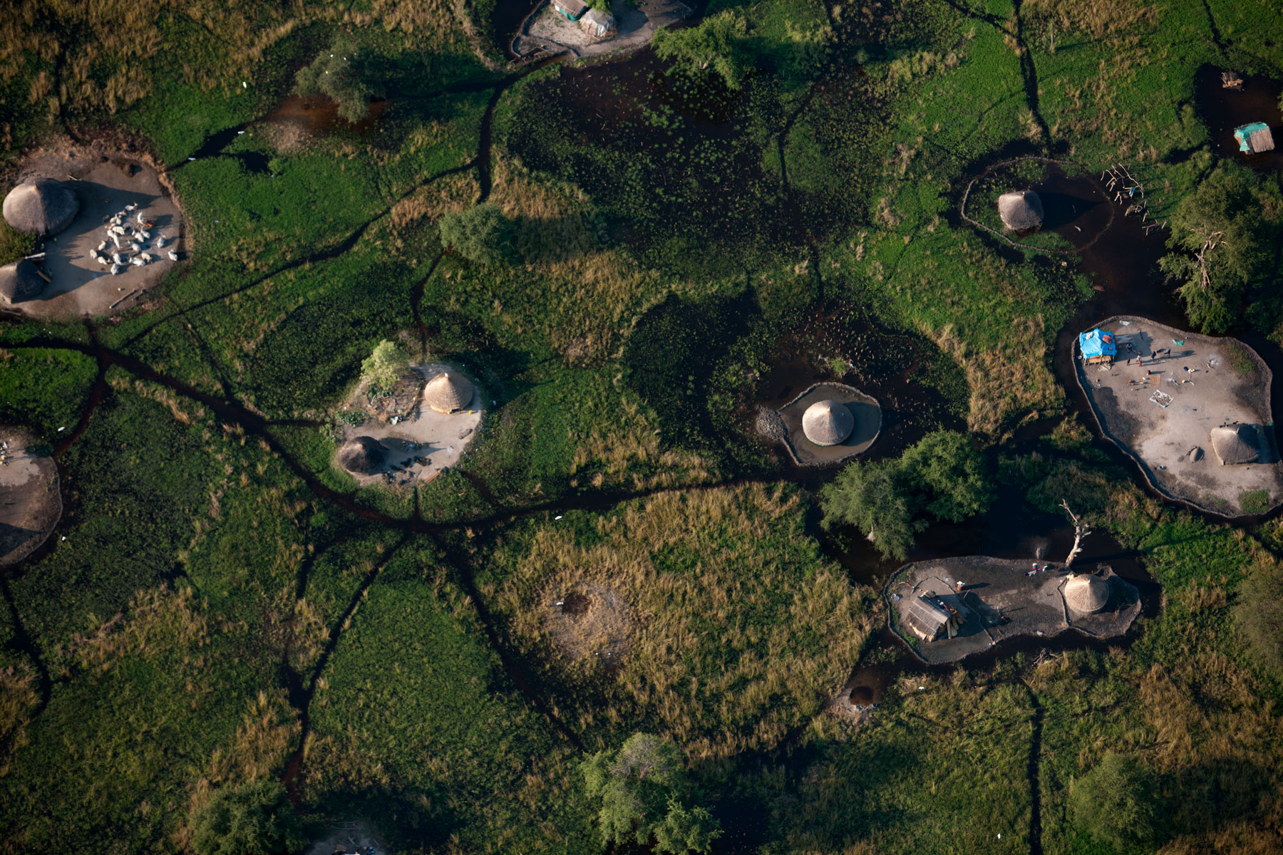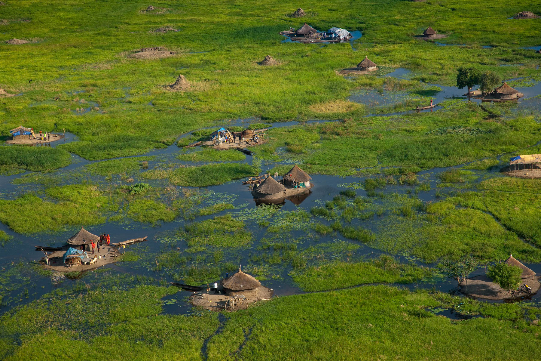 Village in the White Nile swamps near Bor, Jonglei, South Sudan (6°22’ N – 31°32’ E).