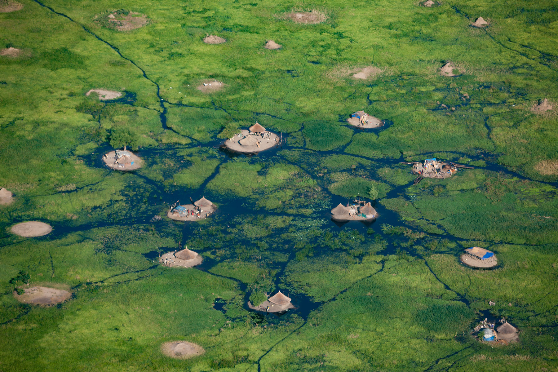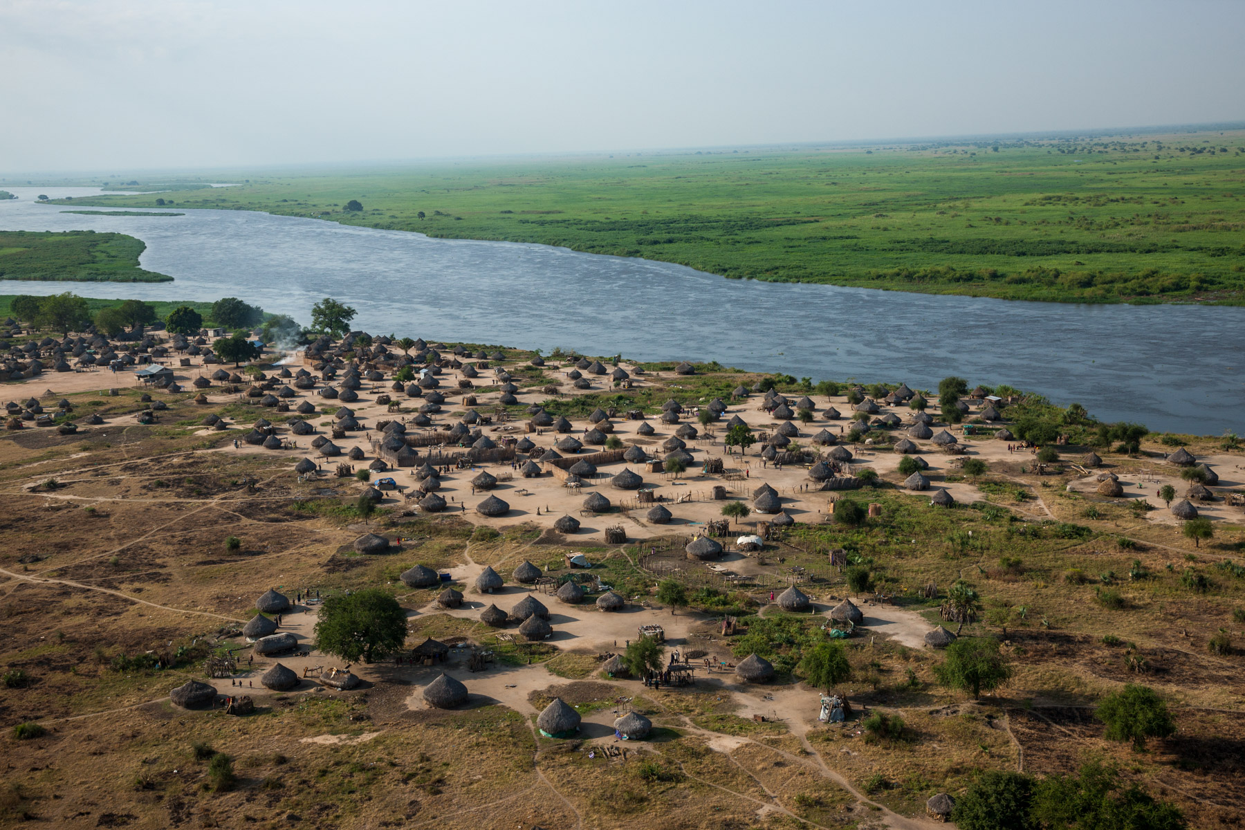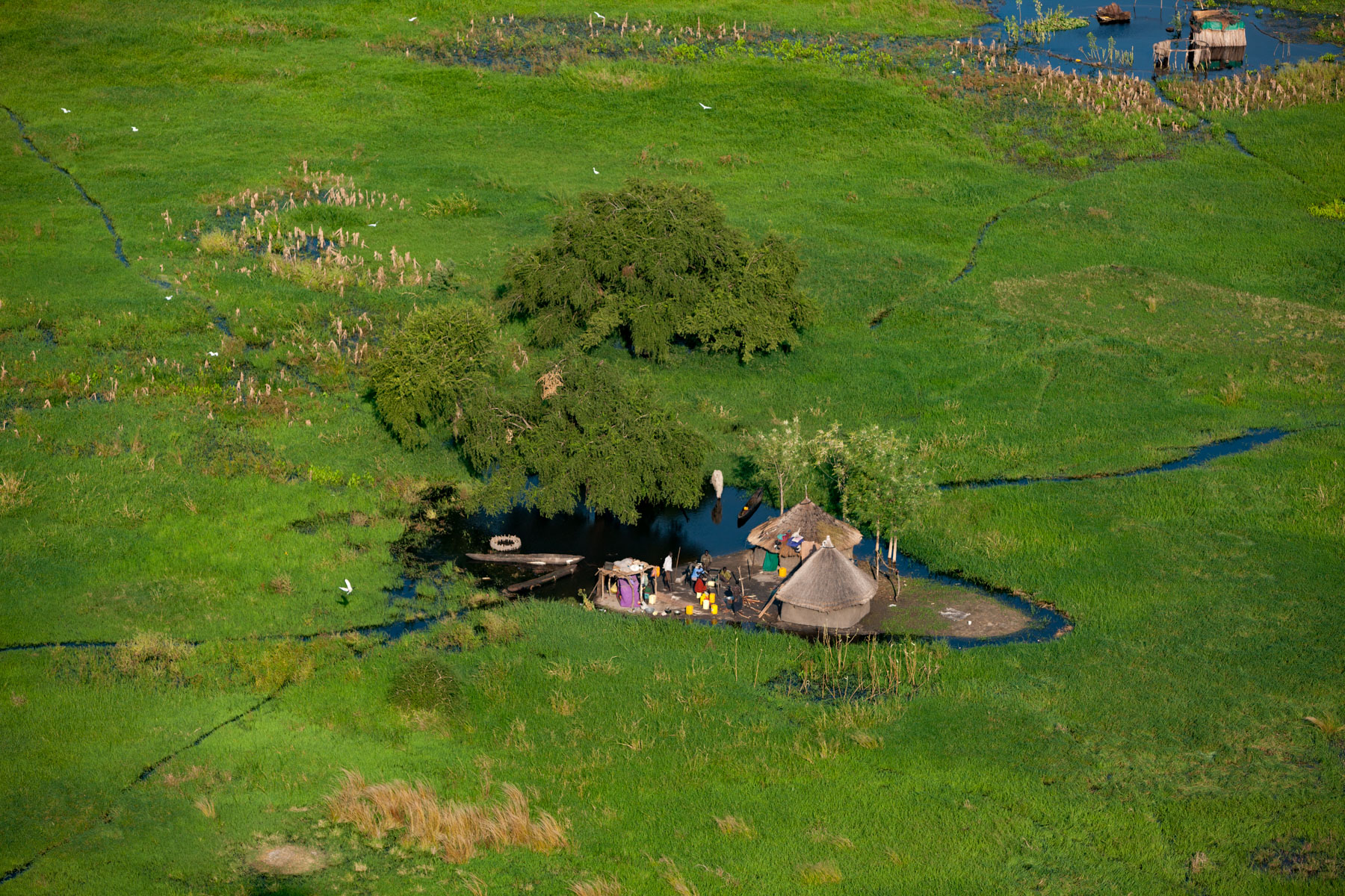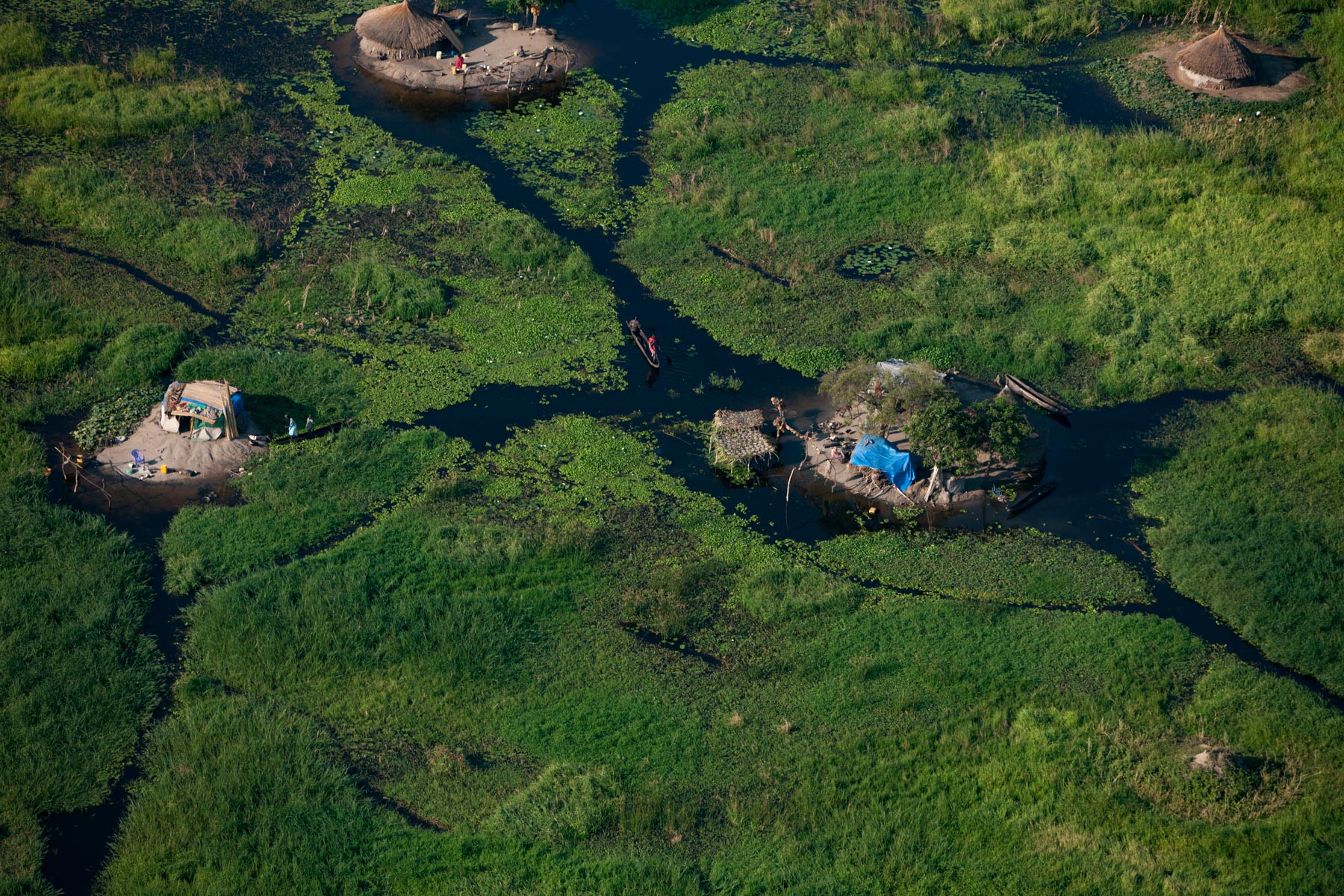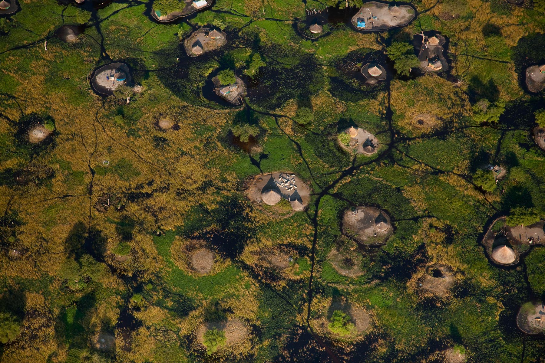 Village in the White Nile swamps near Bor, Jonglei, South Sudan (6°22’ N – 31°32’ E).