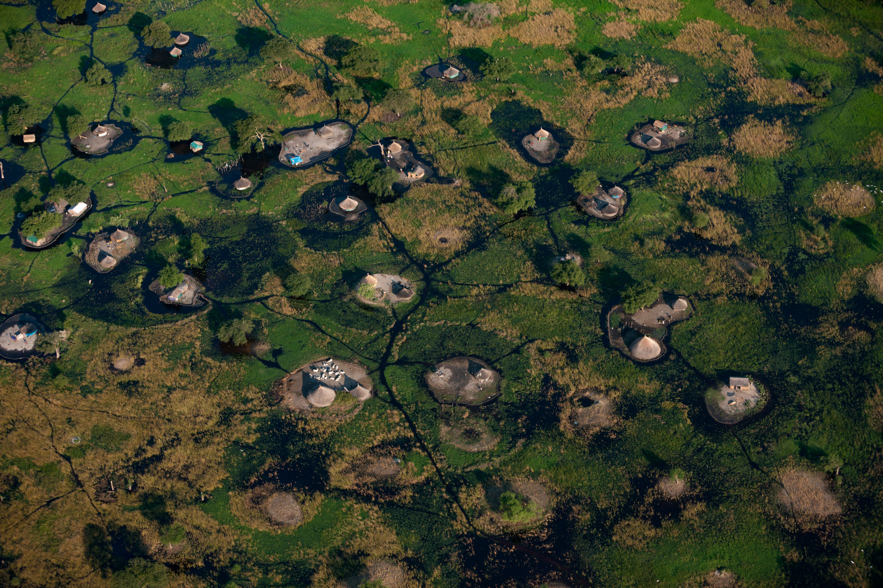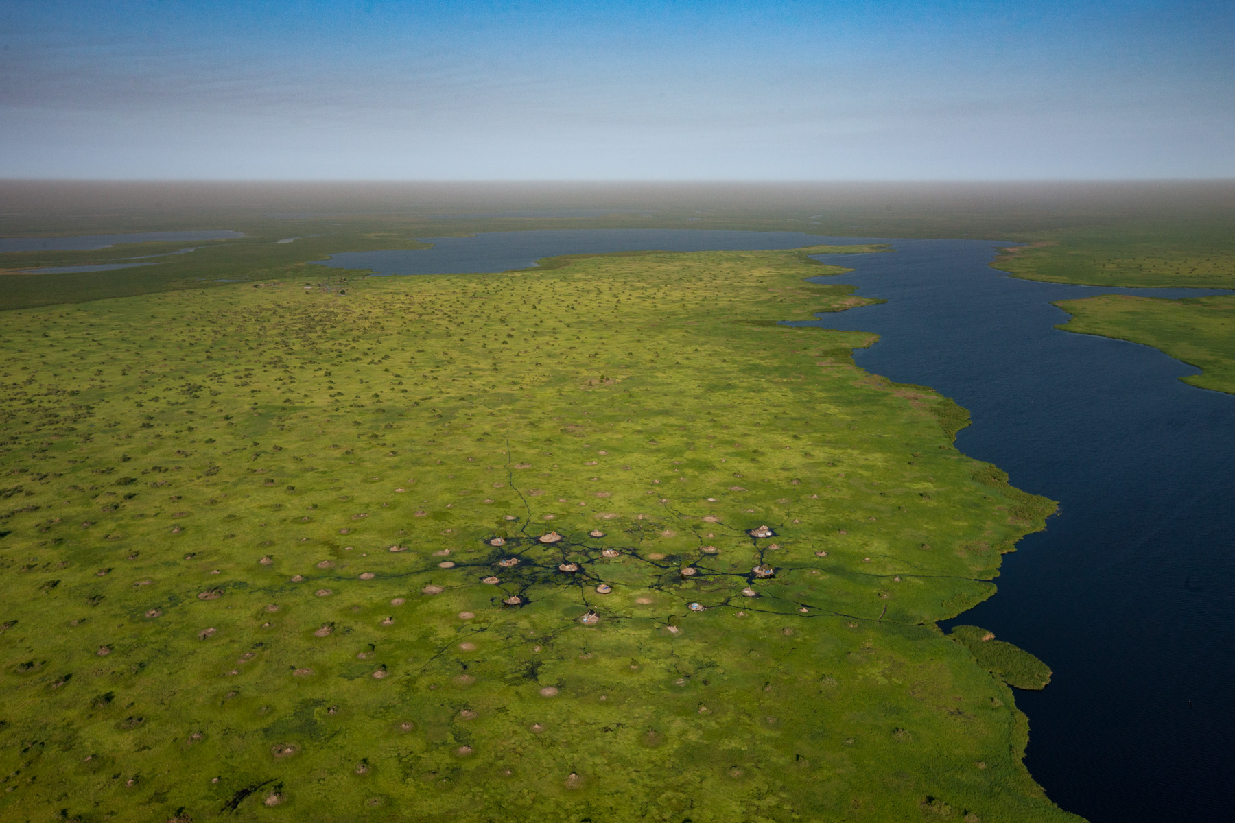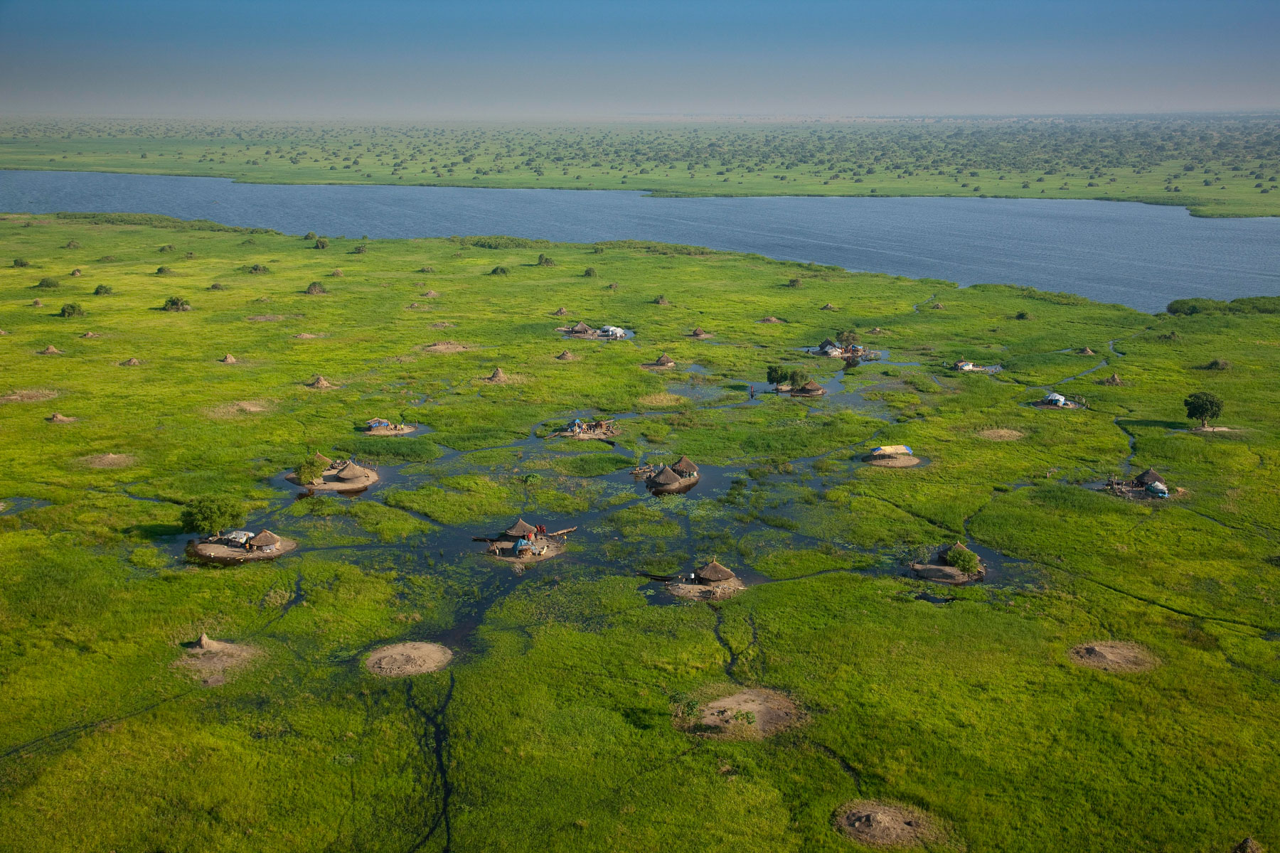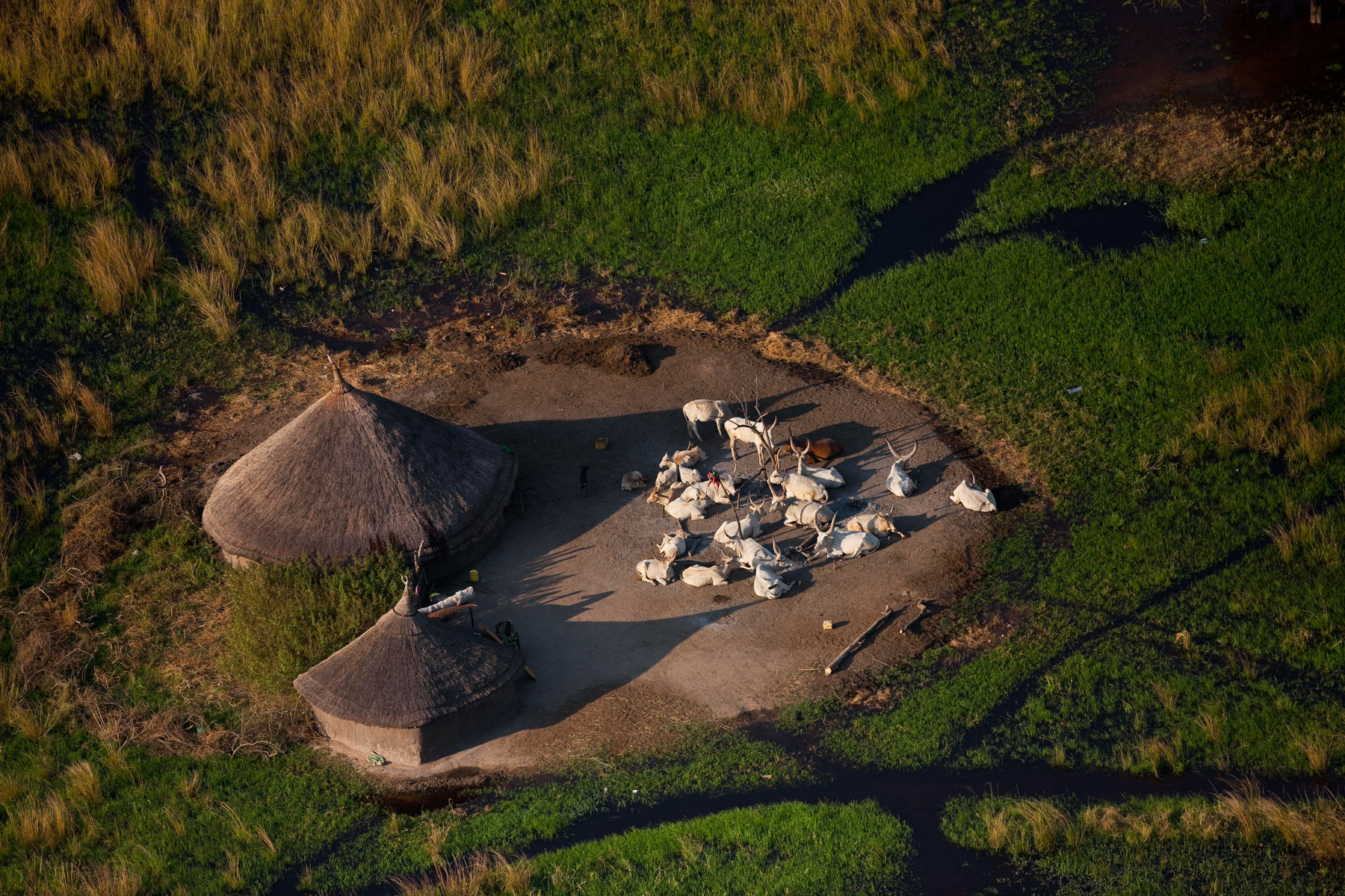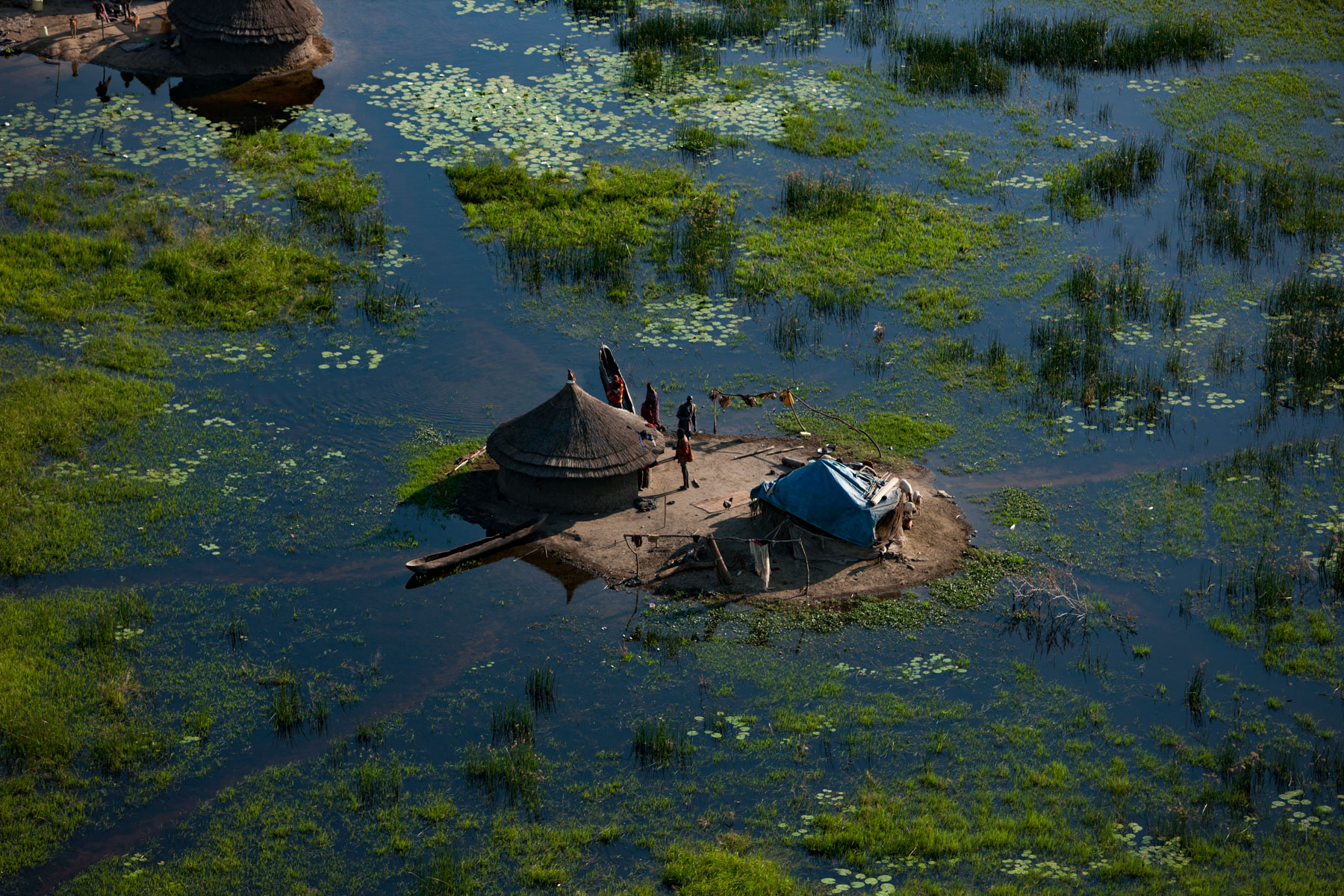 Village in the White Nile swamps near Bor, Jonglei, South Sudan (6°22’ N – 31°32’ E).