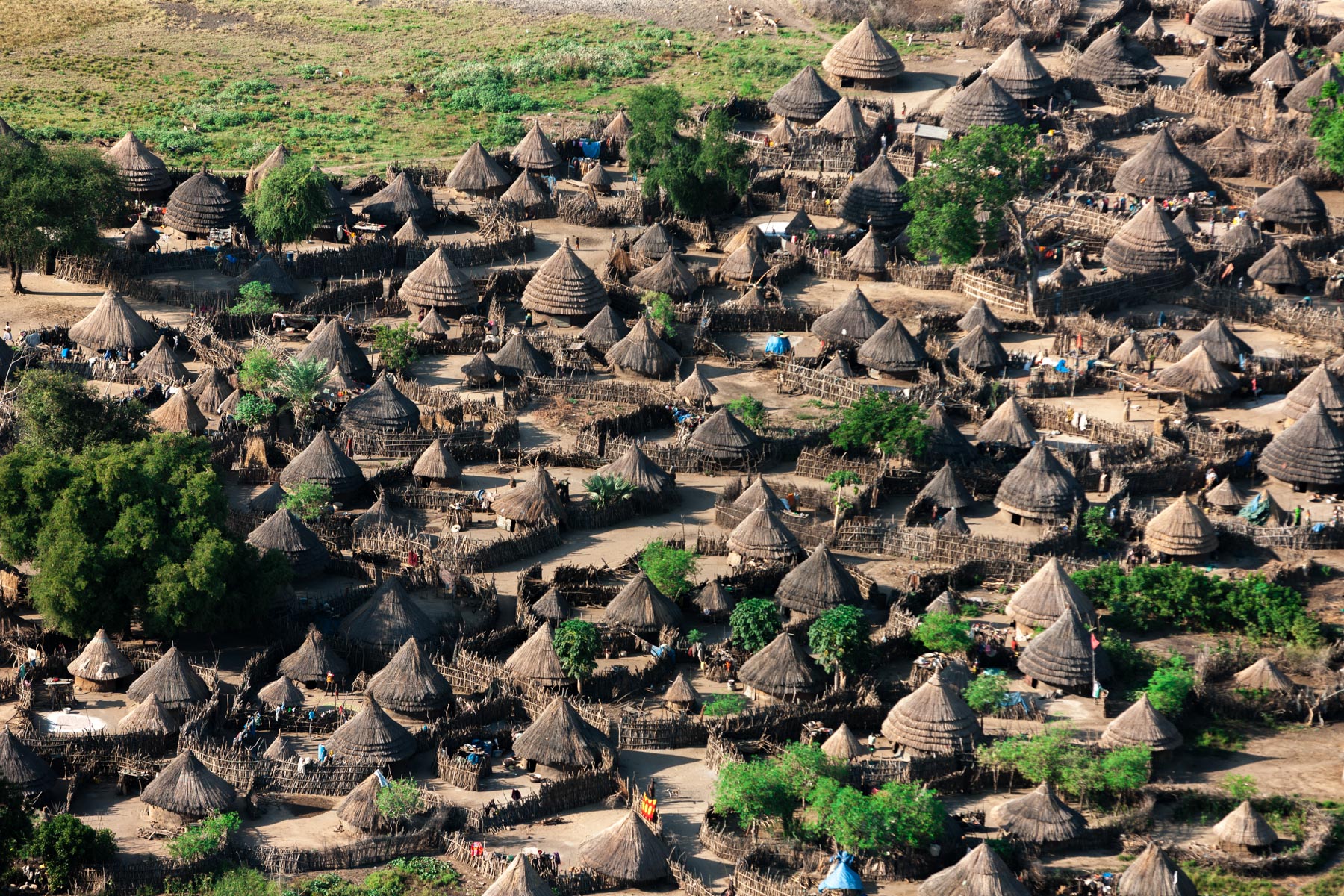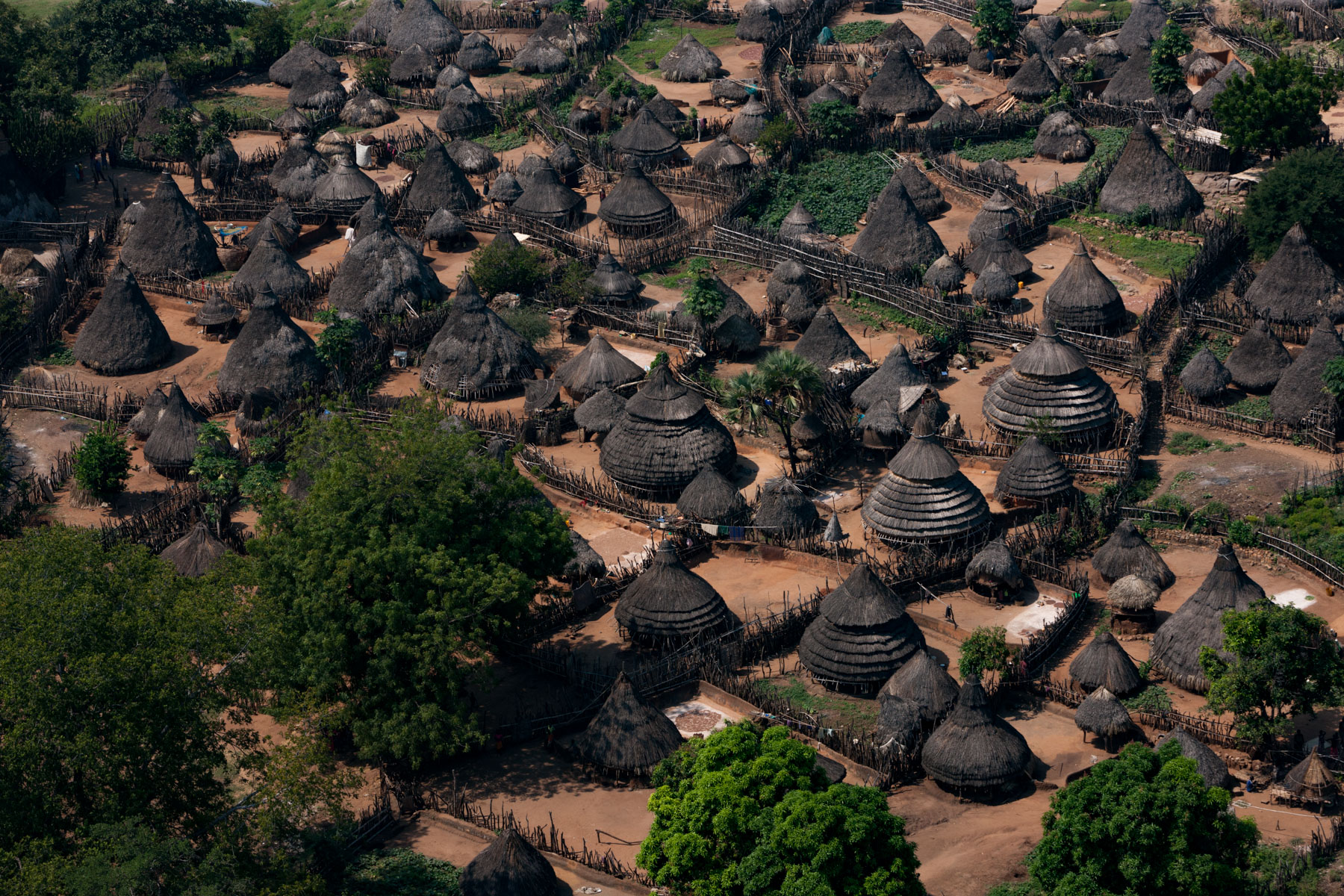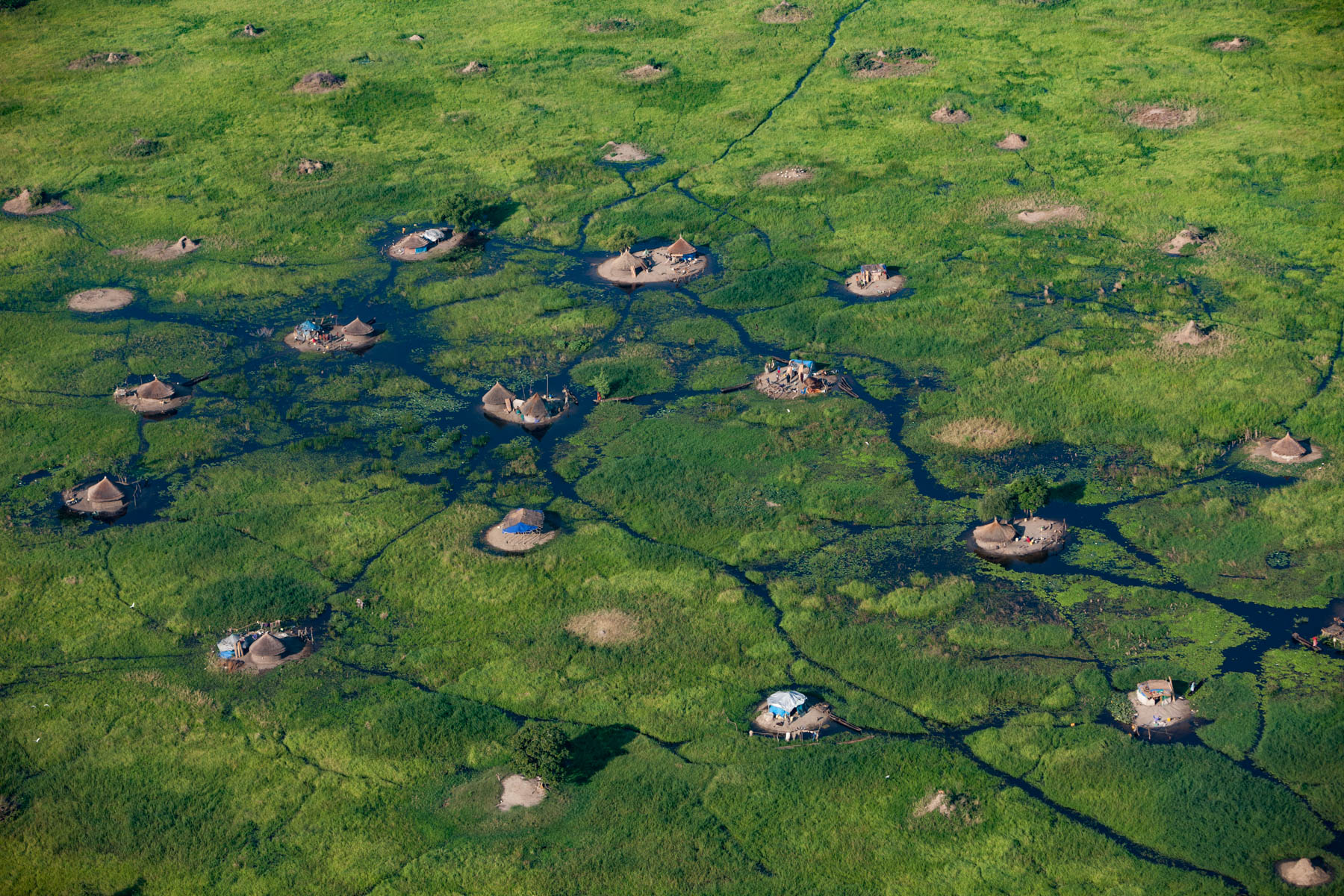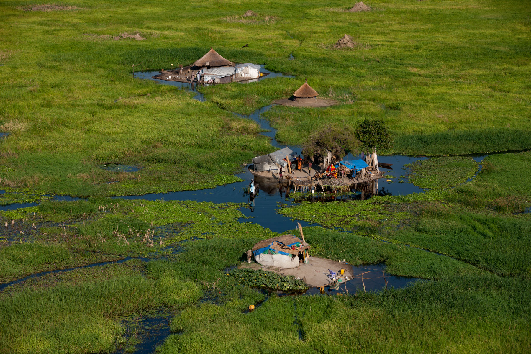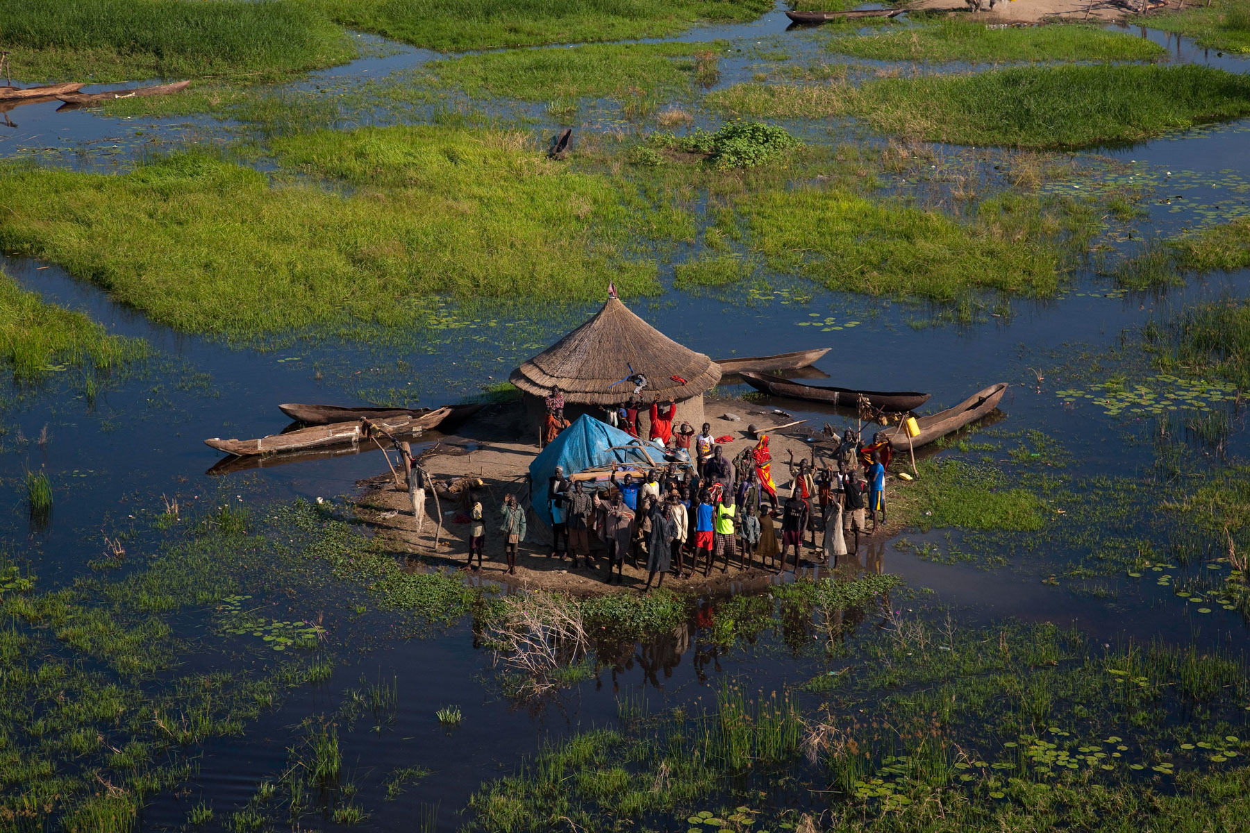 Village in the White Nile swamps near Bor, Jonglei, South Sudan (6°22’ N – 31°32’ E).
