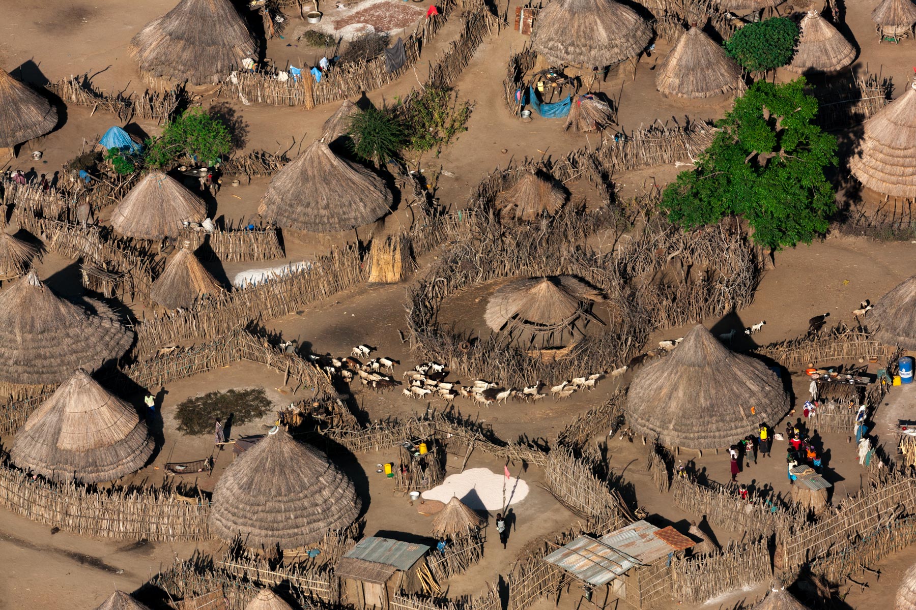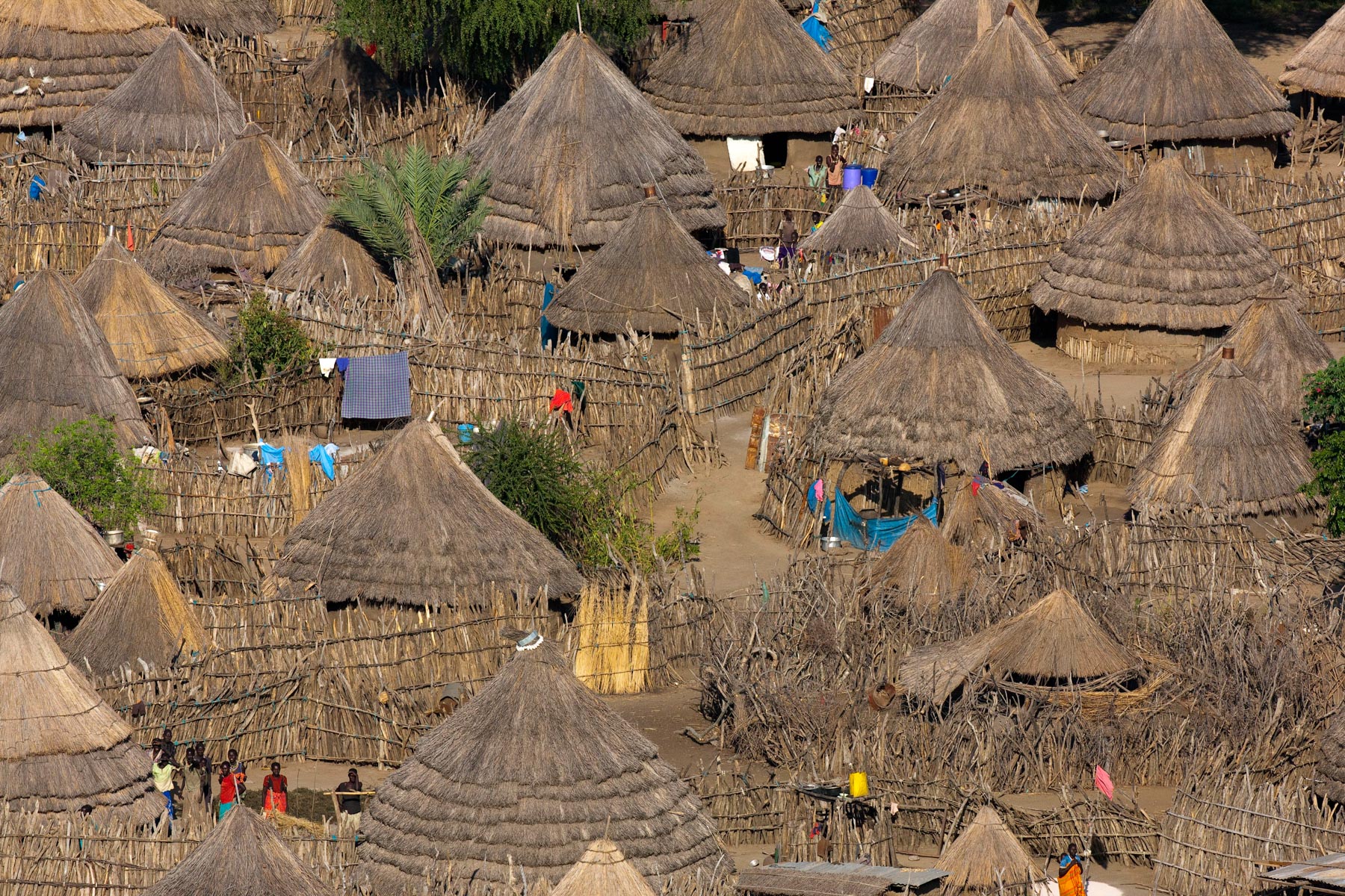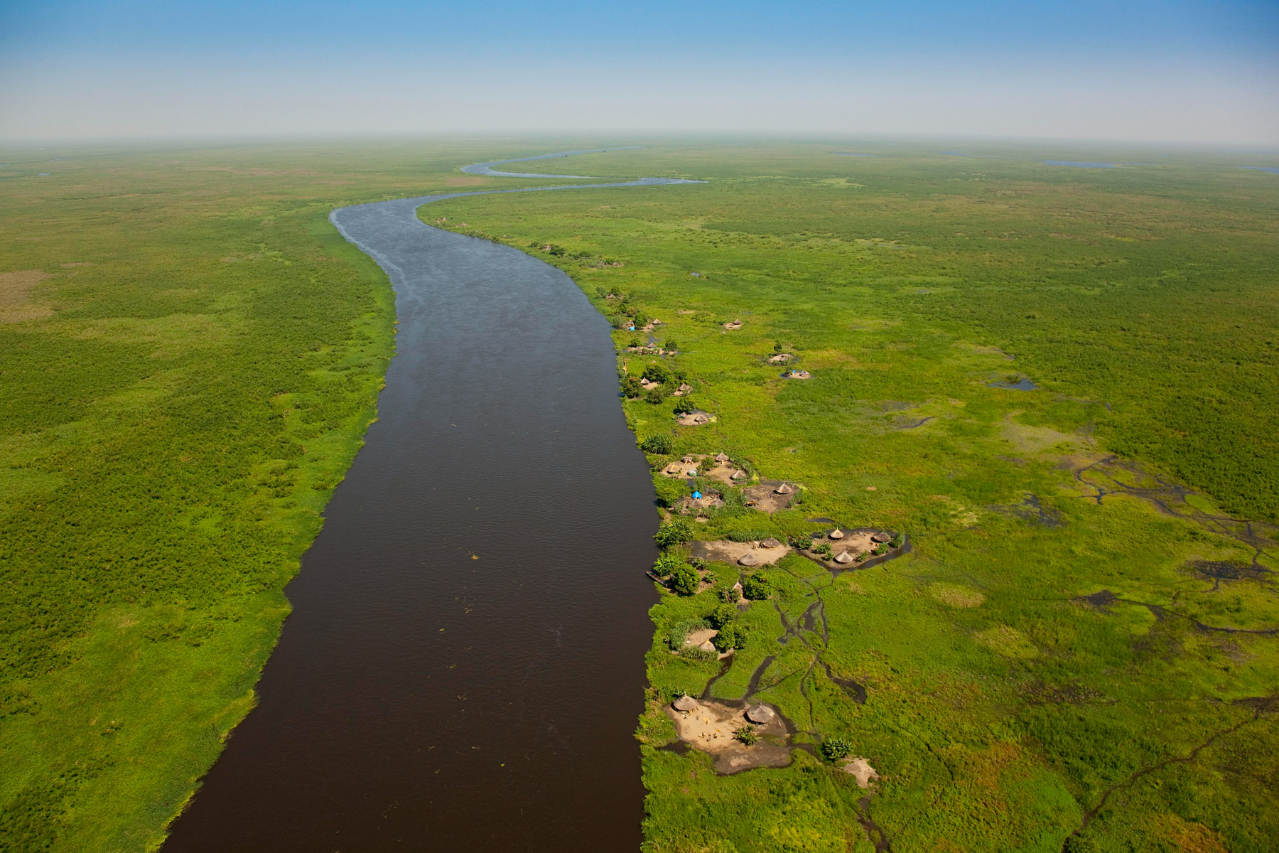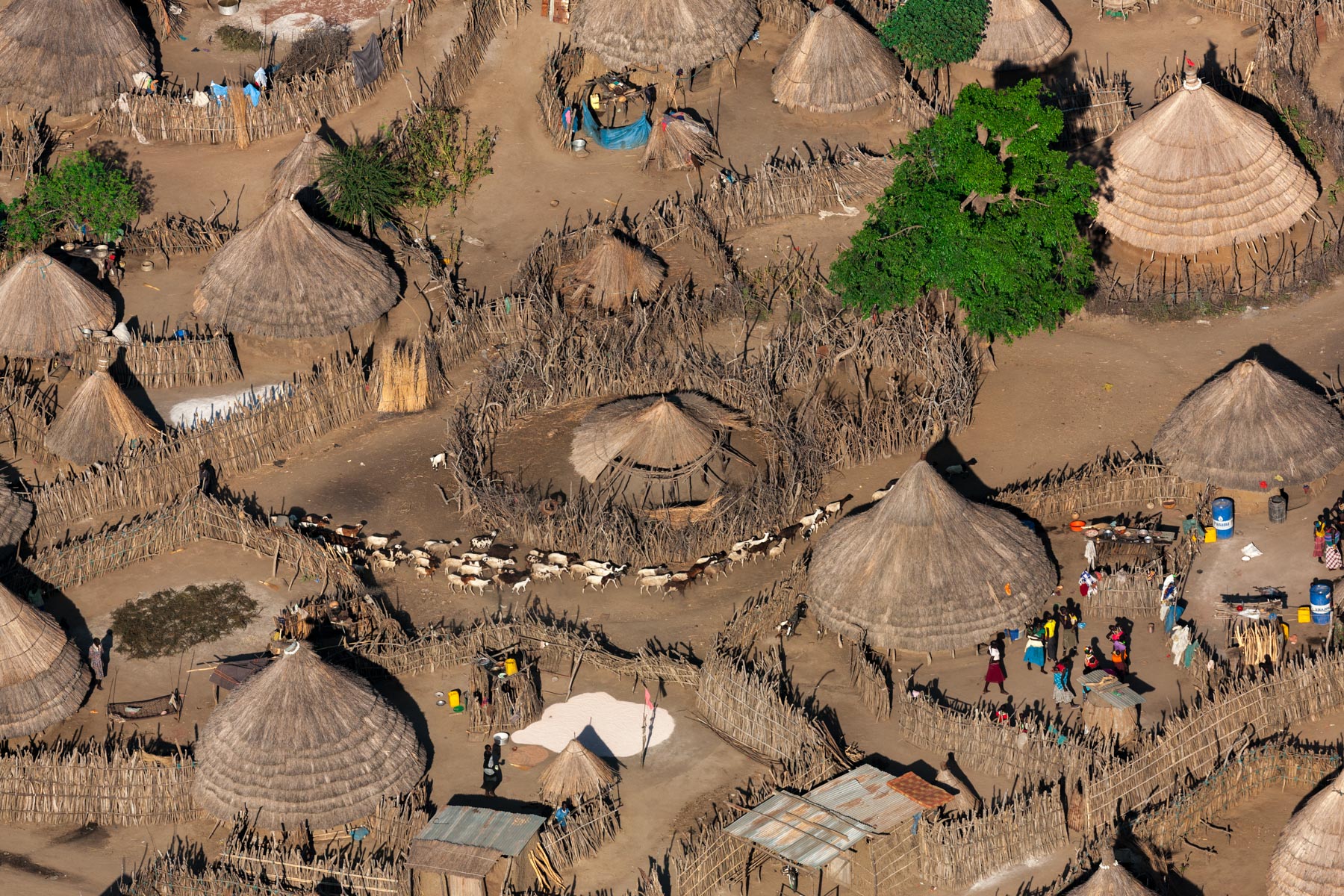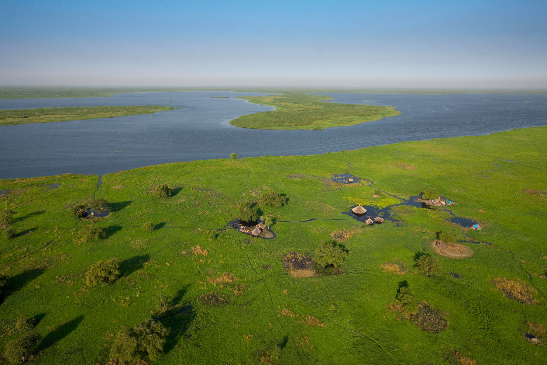 Village in the White Nile swamps near Bor, Jonglei, South Sudan (6°22’ N – 31°32’ E).