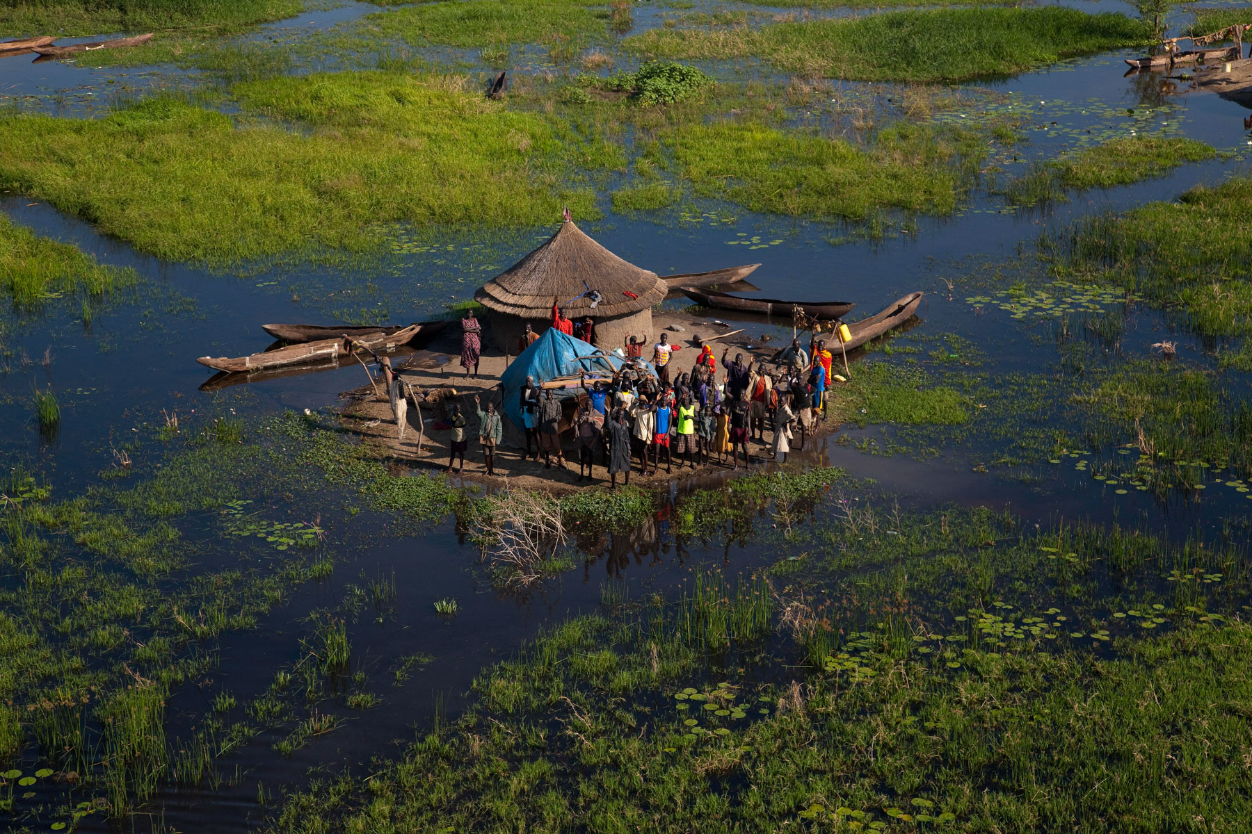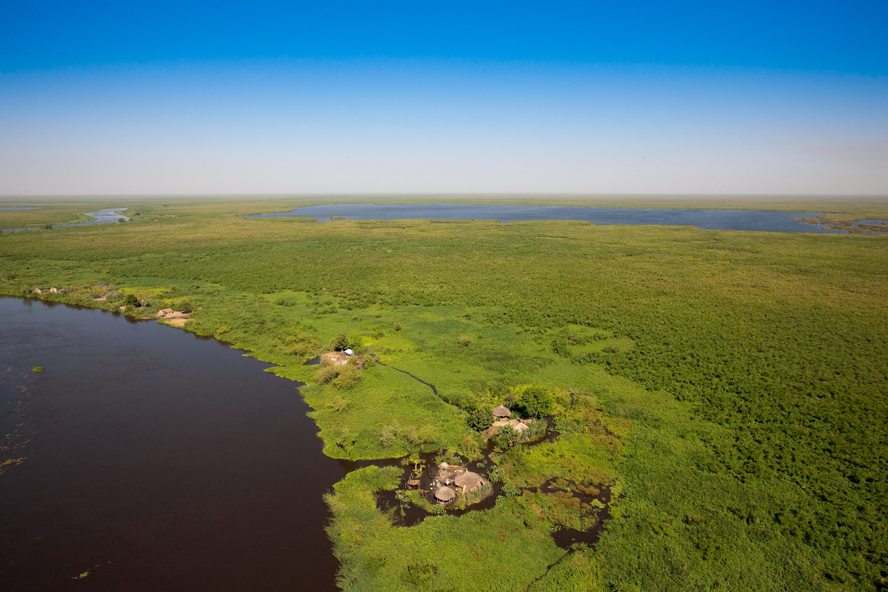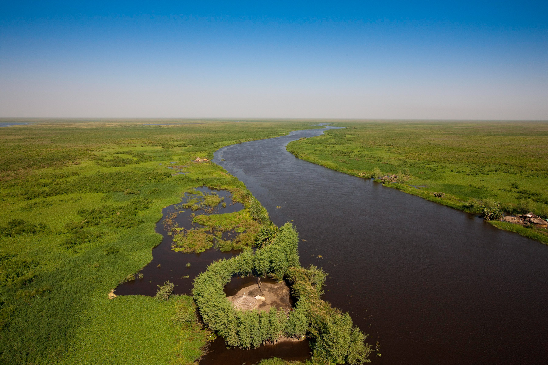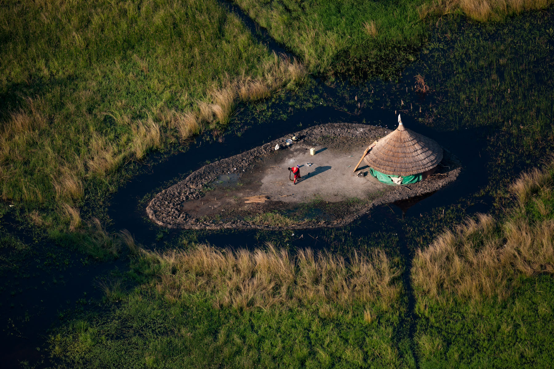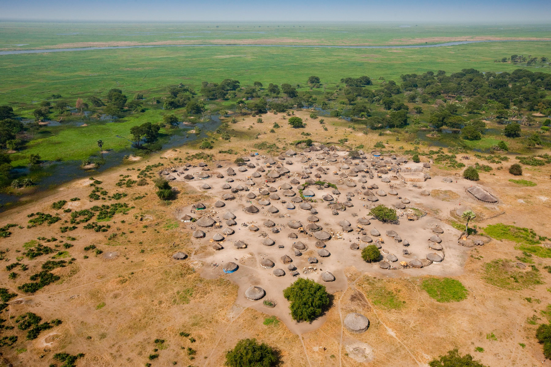 Village in the White Nile swamps near Bor, Jonglei, South Sudan (6°22’ N – 31°32’ E).