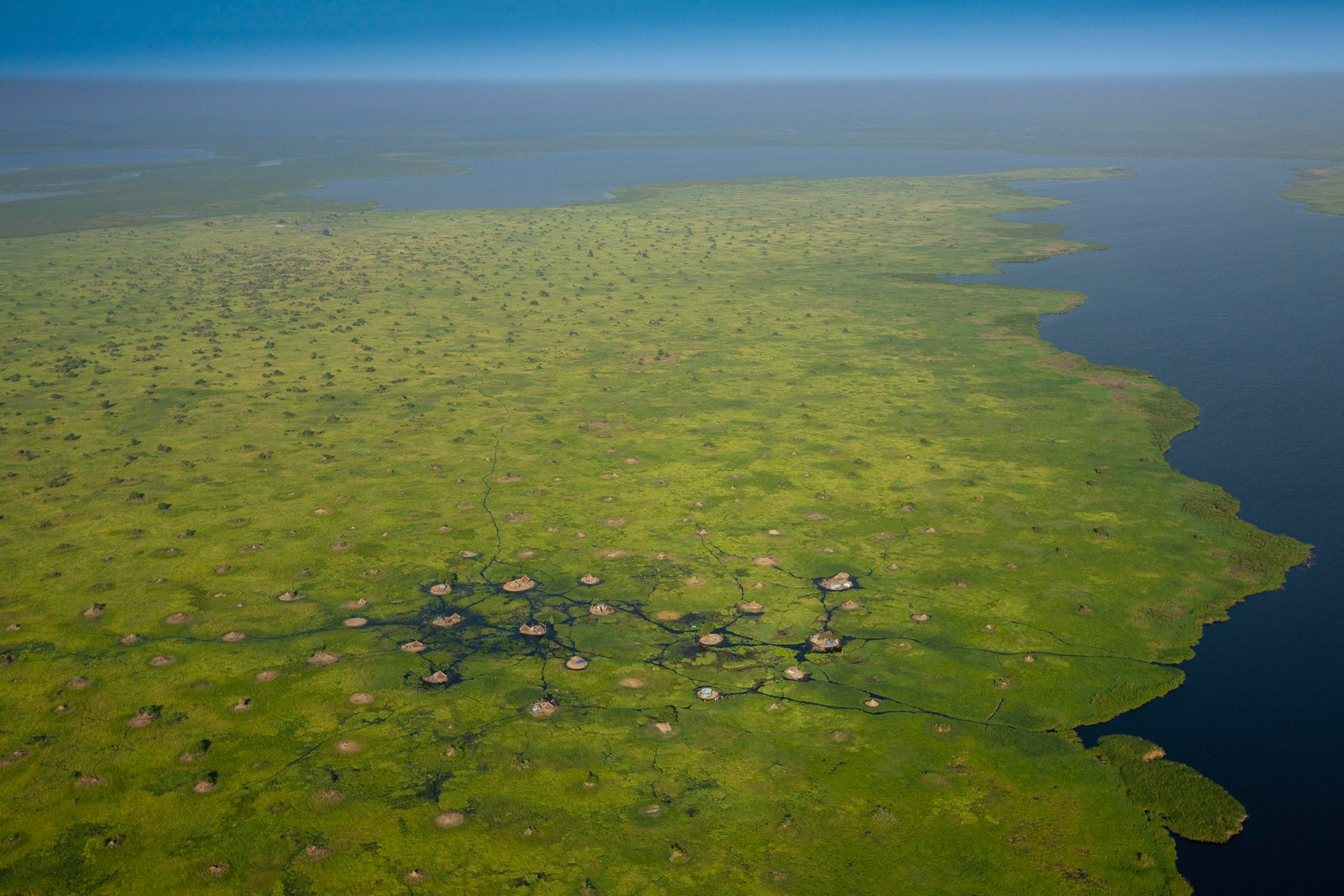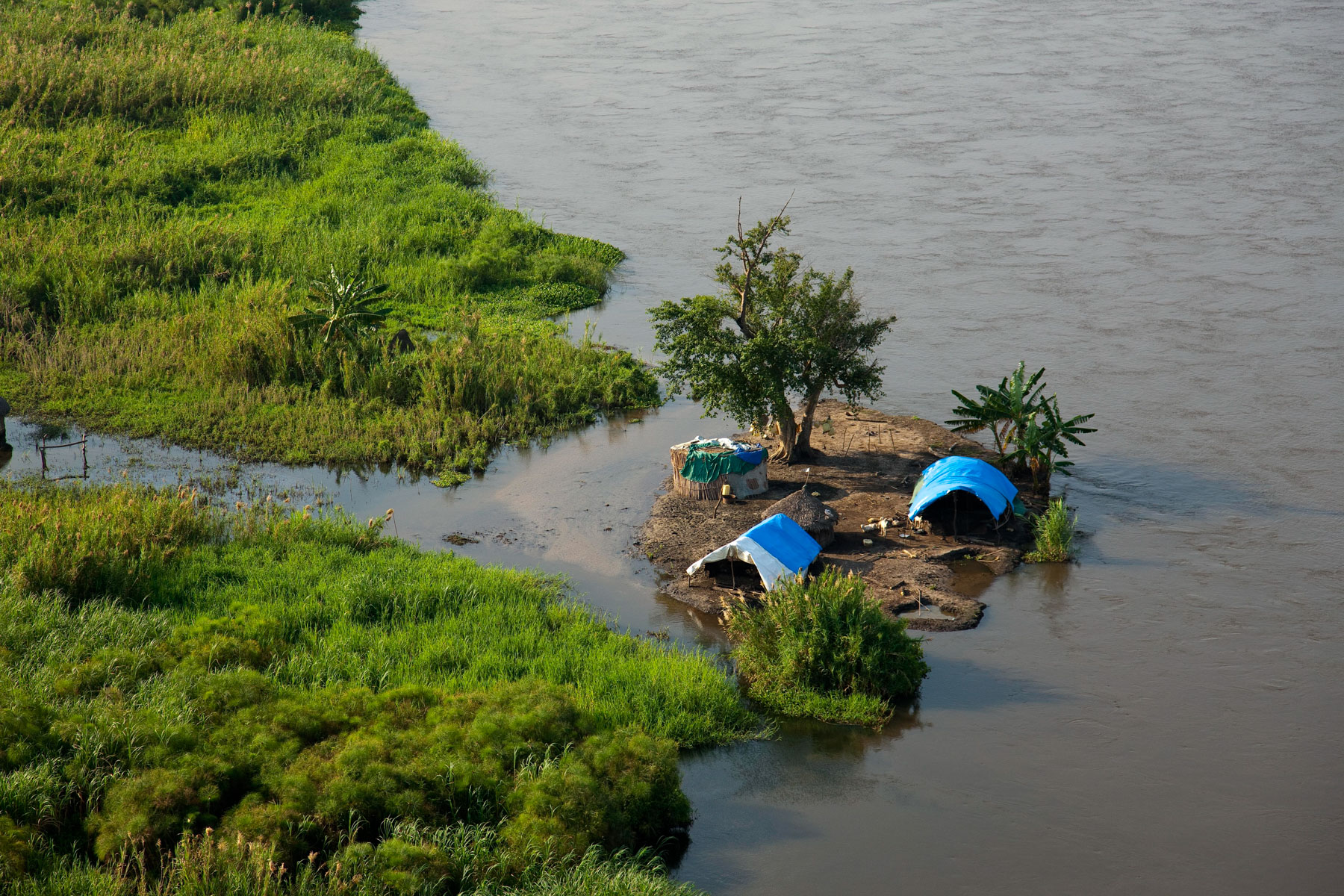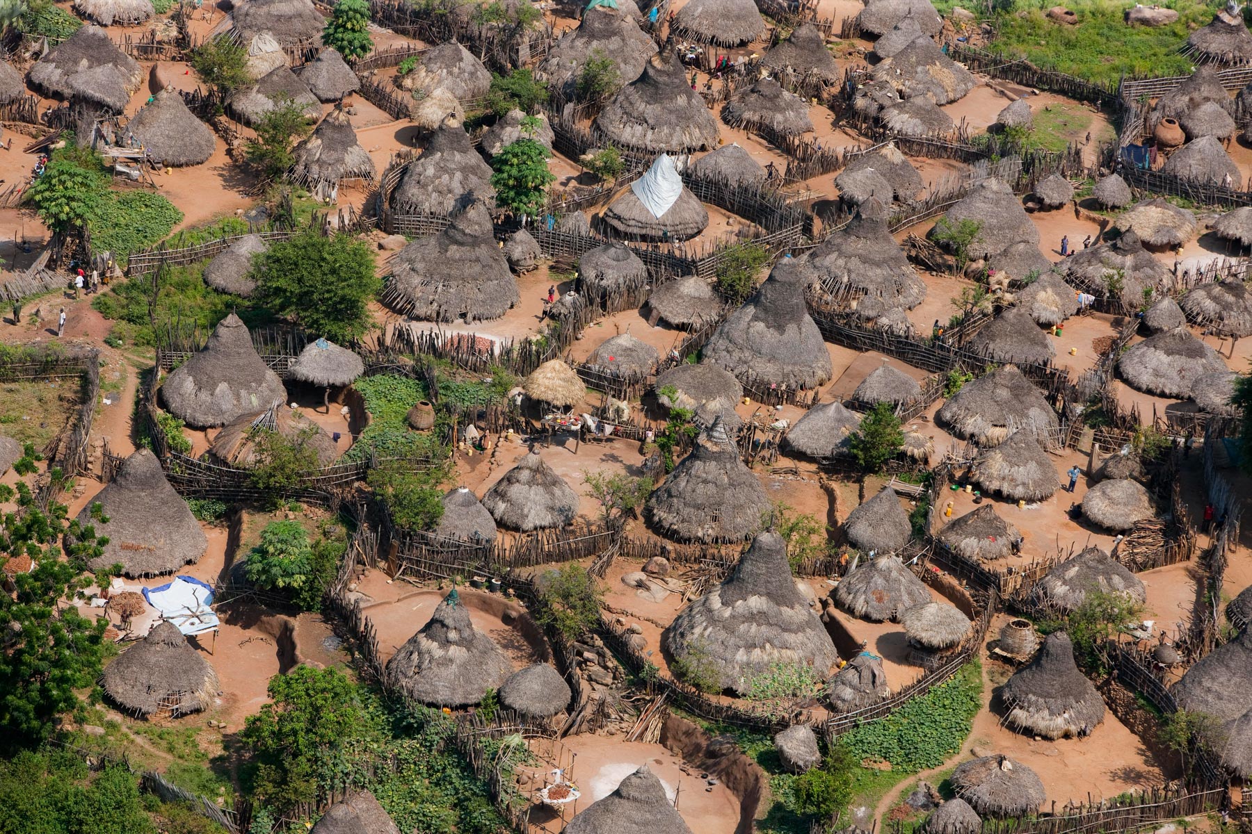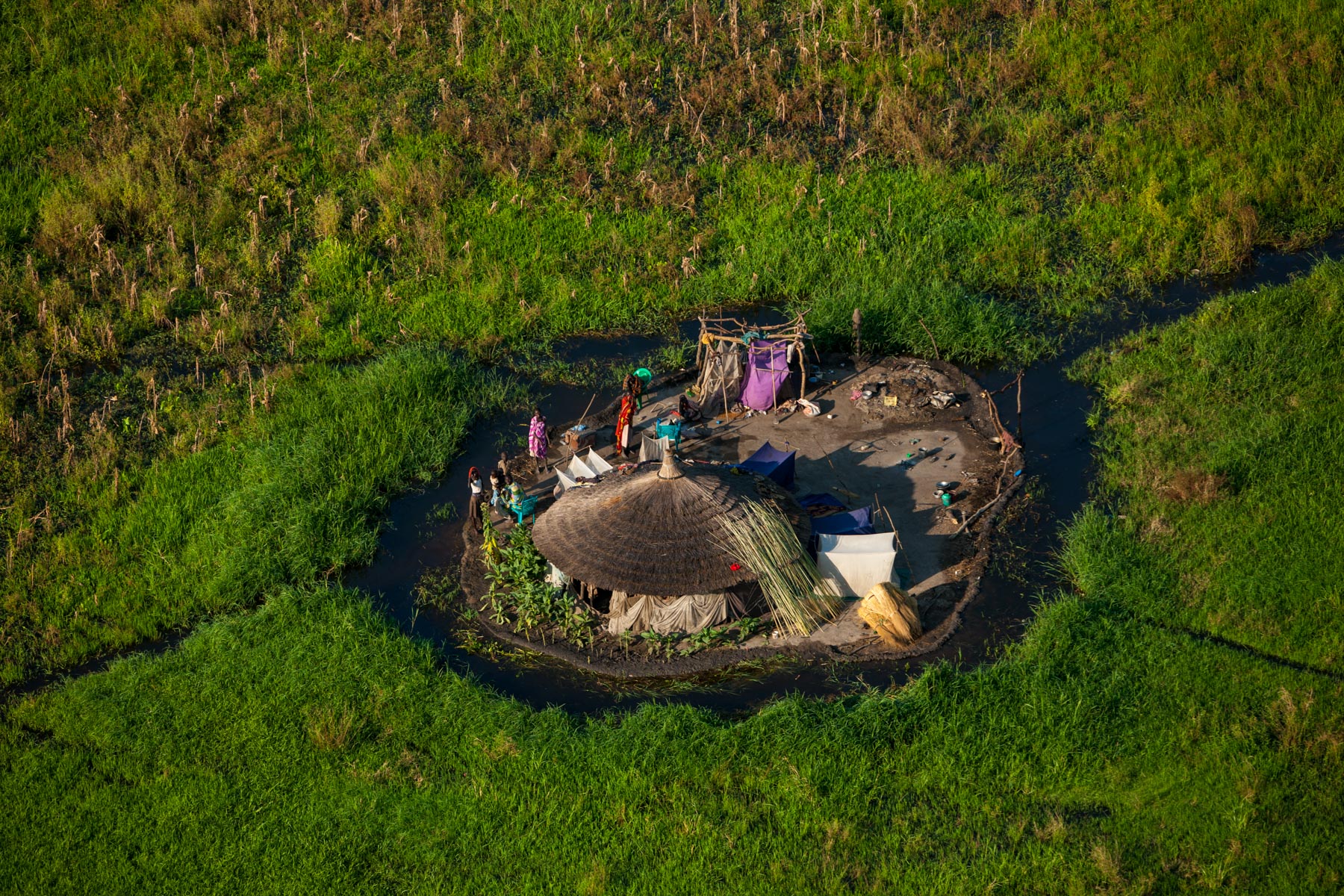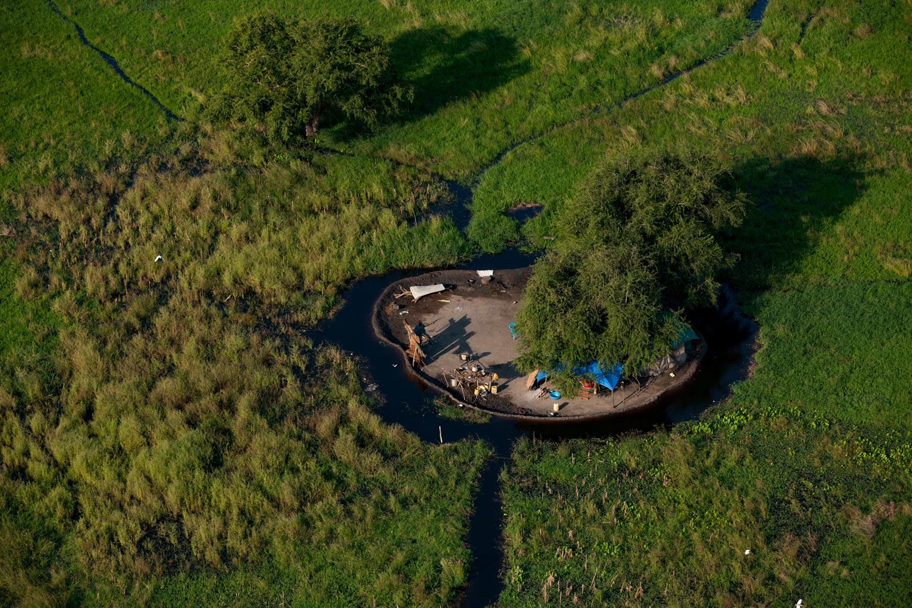 Village in the White Nile swamps near Bor, Jonglei, South Sudan (6°22’ N – 31°32’ E).